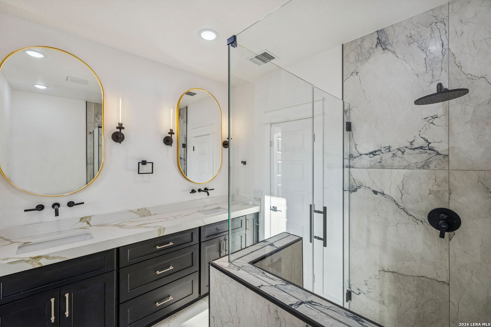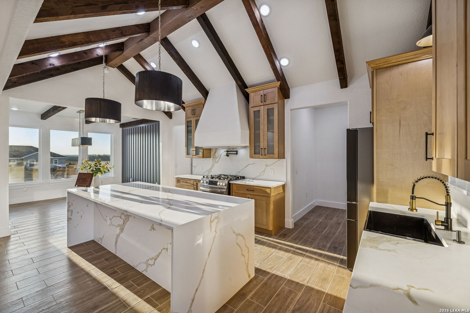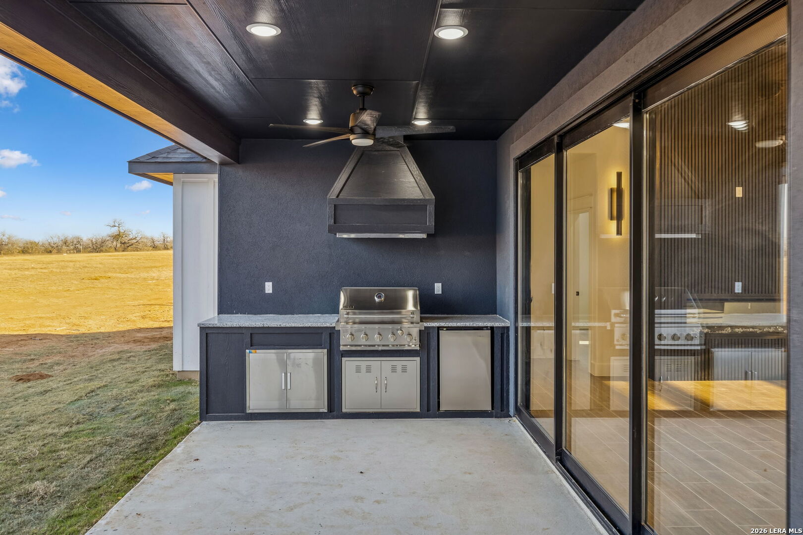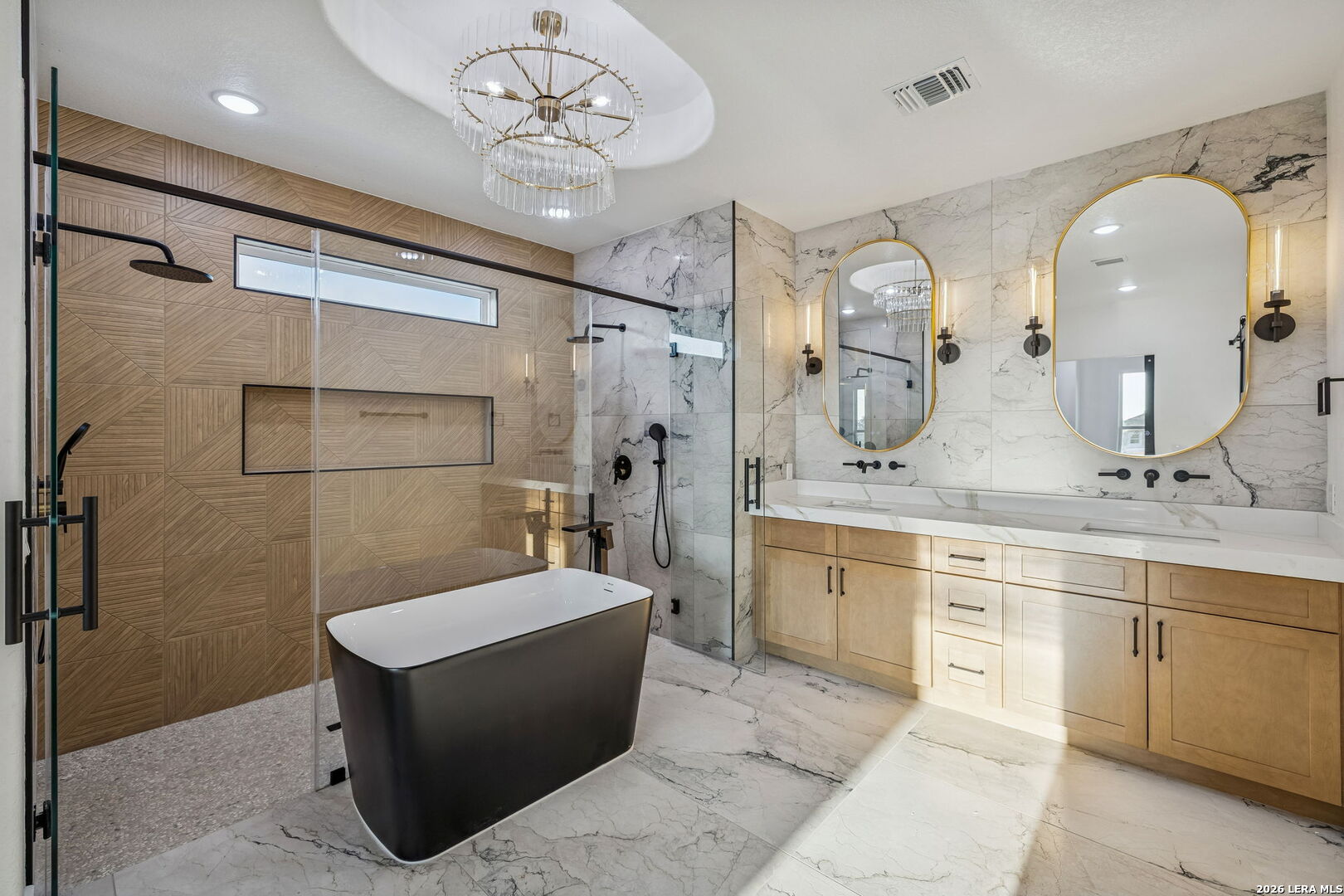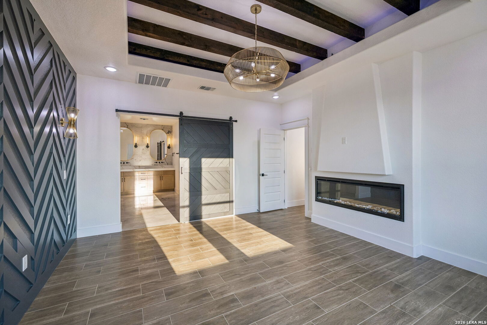 **OPEN HOUSE - SATURDAY, Feb. 7th 11:00 AM - 1:00PM** SELLER IS OFFERING UP TO $15K IN CONCESSIONS!!! THIS IS THE ONE. SHOWPIECE. LUXURY. THOUGHTFUL. The living room is absolutely stunning, anchored by a dramatic 16foot threesided fireplace, soaring tray ceilings with warm wood accents, and expansive beams that flow effortlessly into the kitchen and master suite. Natural light pours through 12foot sliding glass doors that open on both sides, creating seamless indooroutdoor living. The chef's kitchen showcases custom white oak cabinetry, sleek quartz countertops, gold hardware, and premium appliances-including a refrigerator, gas range and stove, microwave, and dishwasher-paired with an inviting dining area and a dedicated office featuring bold black builtins. Every bedroom is equipped with generous walkin closets, complemented by spainspired bathrooms featuring floortoceiling tile, garden tubs, luxury lighting, and multiple makeup vanities. The master bathroom stands out as a true retreat, centered around a sleek black garden tub that brings sculptural elegance to the space. Refined, modern fixtures elevate the room even further, creating a serene, highend atmosphere designed for relaxation. Outside, the entertainer's dream continues with a private covered patio and full outdoor kitchen complete with a plumbed propane grill, refrigerator, and guest half bath, along with a water softener and a full sprinkler system for effortless lawn maintenance.