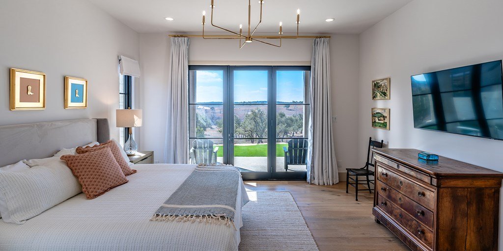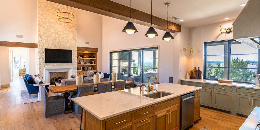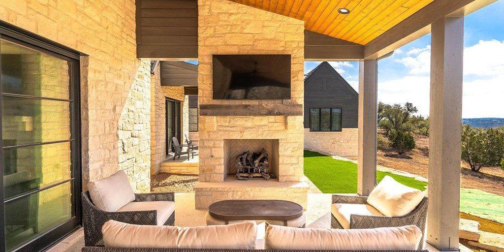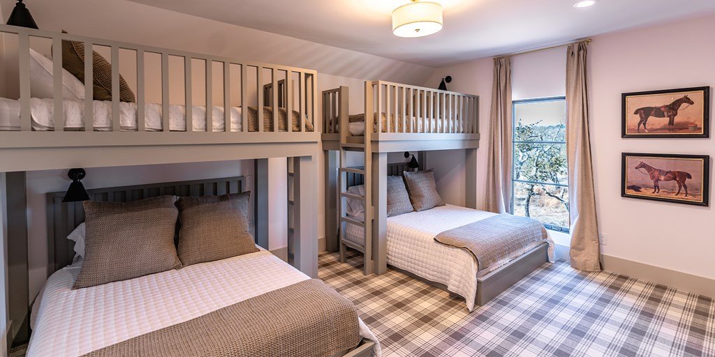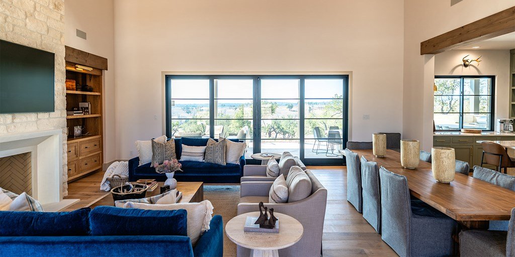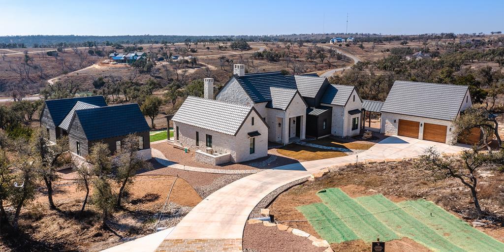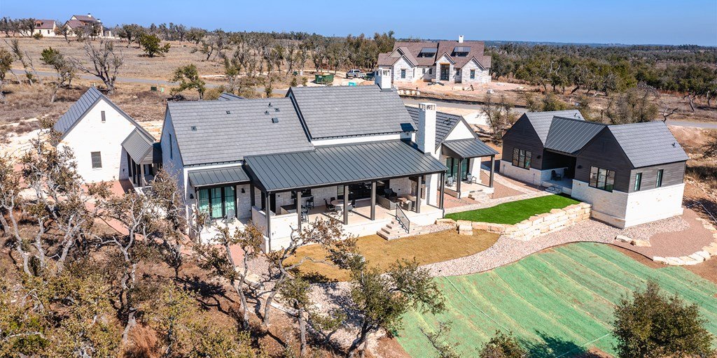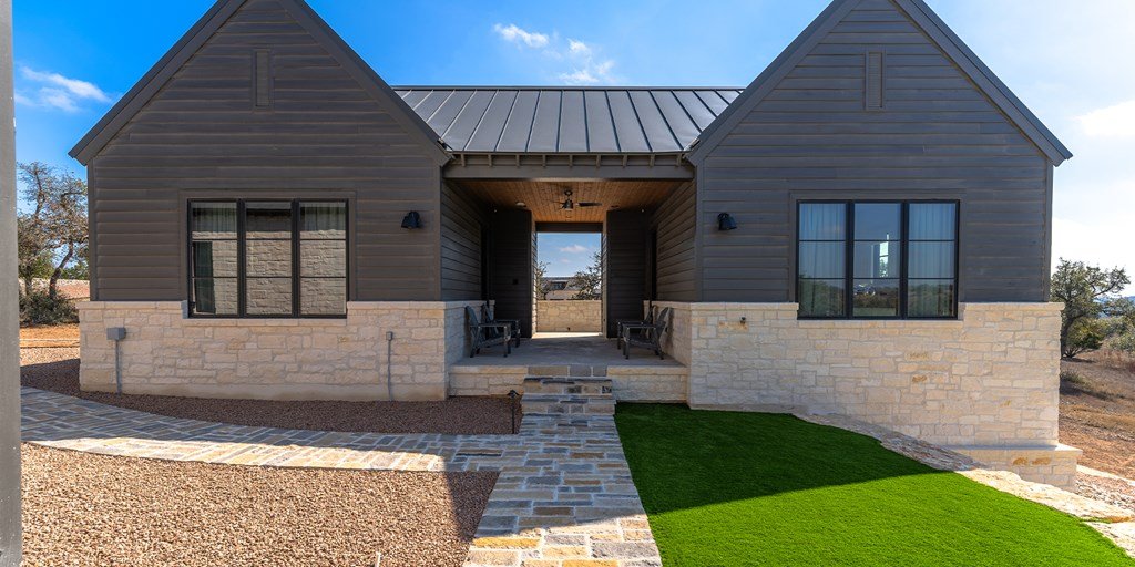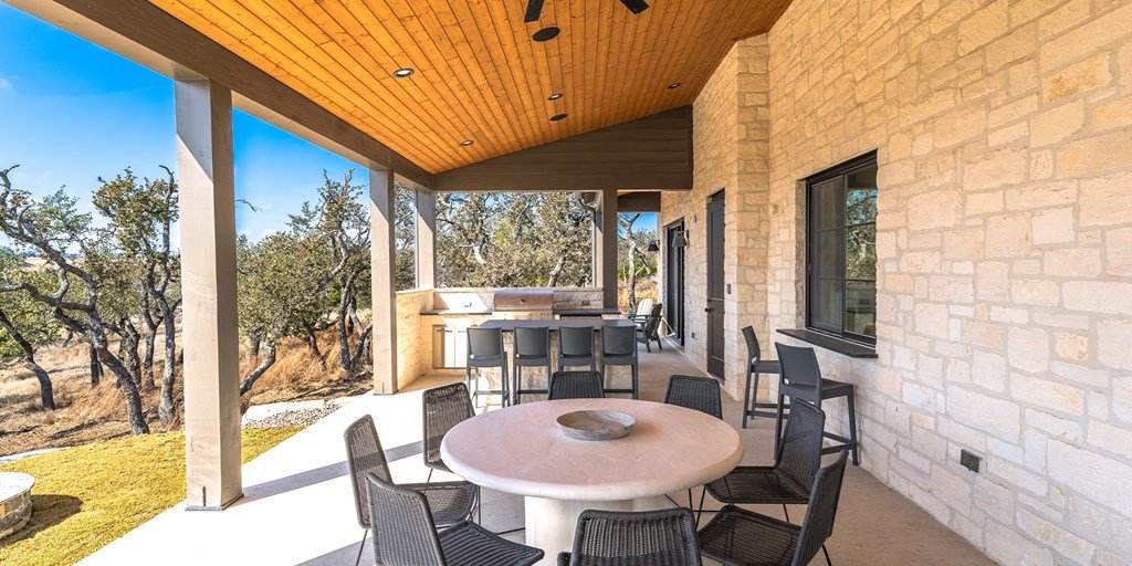 IDesigned to be a gathering place for extended family and friends, this home offers exceptional outdoor living, a large upstairs bunk room, and back porch views to the southeast. Exterior materials include white limestone, steel and glass entry doors, black-clad windows, concrete wood-shake style roof, standing-seam metal porch roofs, and scored concrete flooring on patios and porches. The gently sloping homesite high on scenic LaGrange Drive provides long-range views toward the Lakeside Village and captures the year-round southerly breezes in the outdoor living areas. Inside, the two-story great room takes full advantage of the view with full-wall sliding French doors that lead to a 14'x40 covered terrace with an open patio, fireplace, and outdoor kitchen. The great room has a gas fireplace, large dining area, and breakfast bar on one side of the 12-foot kitchen island. High-end features are found throughout the home, along with exquisite fixed-finish selections that create a warm and elegant environment. Don't miss your opportunity to become part of Boot Ranch, the finest private club community in Texas.
