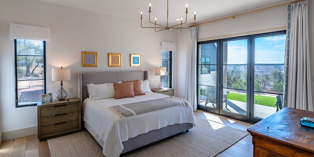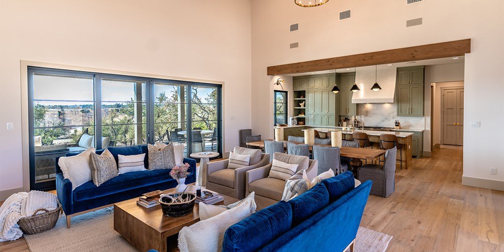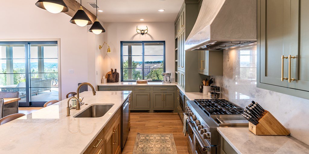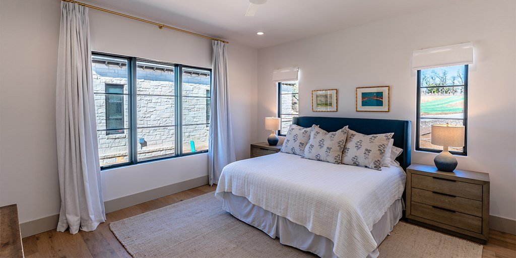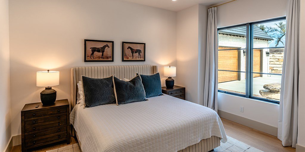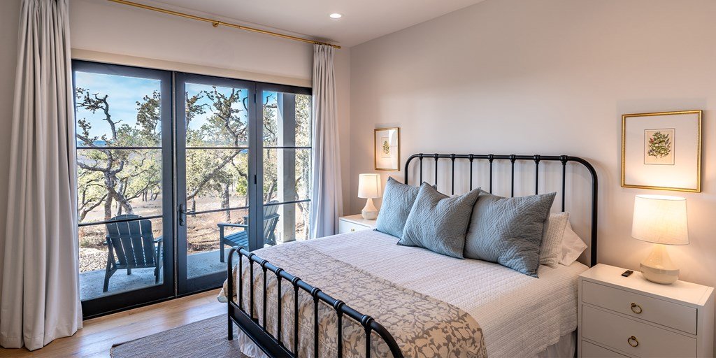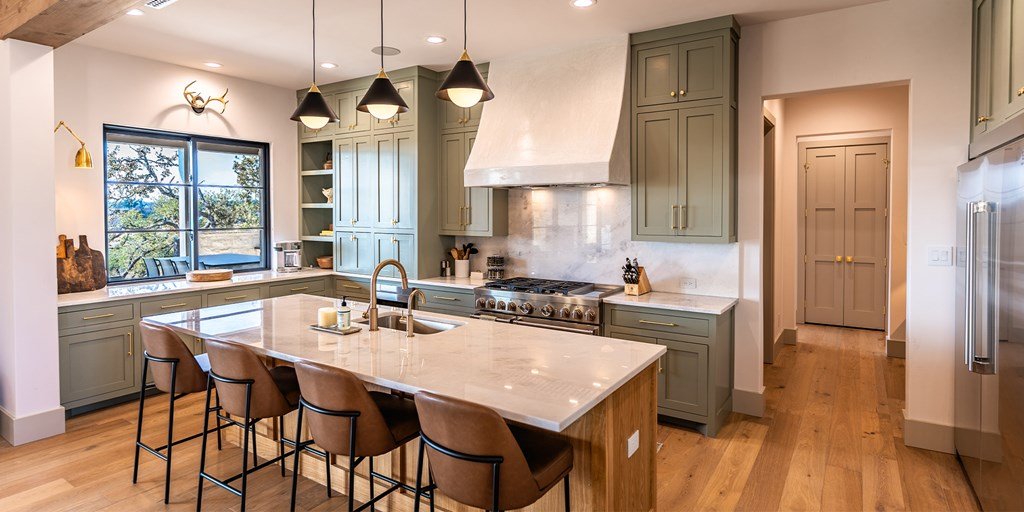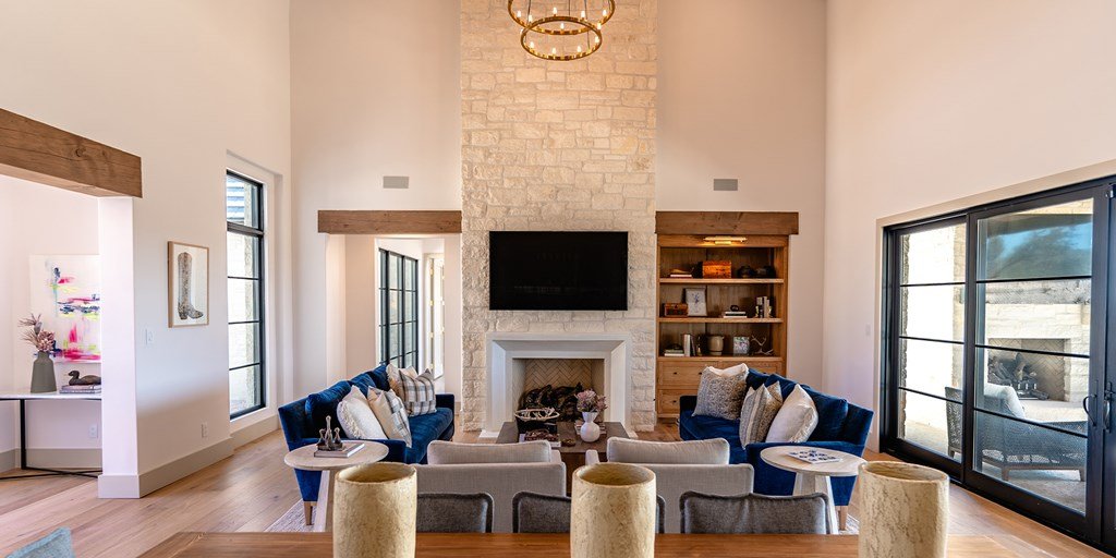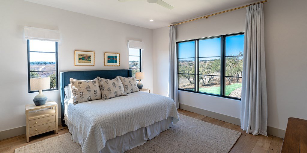 IDesigned to be a gathering place for extended family and friends, this home offers exceptional outdoor living, a large upstairs bunk room, and back porch views to the southeast. Exterior materials include white limestone, steel and glass entry doors, black-clad windows, concrete wood-shake style roof, standing-seam metal porch roofs, and scored concrete flooring on patios and porches. The gently sloping homesite high on scenic LaGrange Drive provides long-range views toward the Lakeside Village and captures the year-round southerly breezes in the outdoor living areas. Inside, the two-story great room takes full advantage of the view with full-wall sliding French doors that lead to a 14'x40 covered terrace with an open patio, fireplace, and outdoor kitchen. The great room has a gas fireplace, large dining area, and breakfast bar on one side of the 12-foot kitchen island. High-end features are found throughout the home, along with exquisite fixed-finish selections that create a warm and elegant environment. Don't miss your opportunity to become part of Boot Ranch, the finest private club community in Texas.