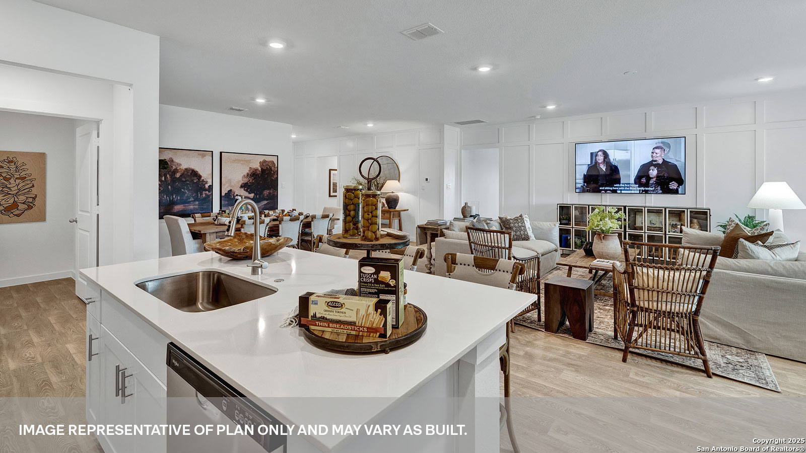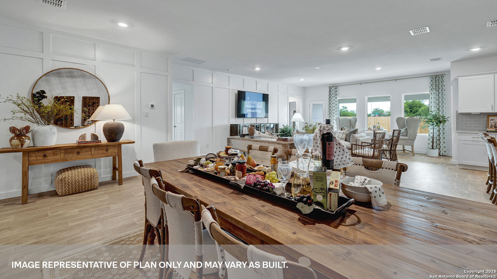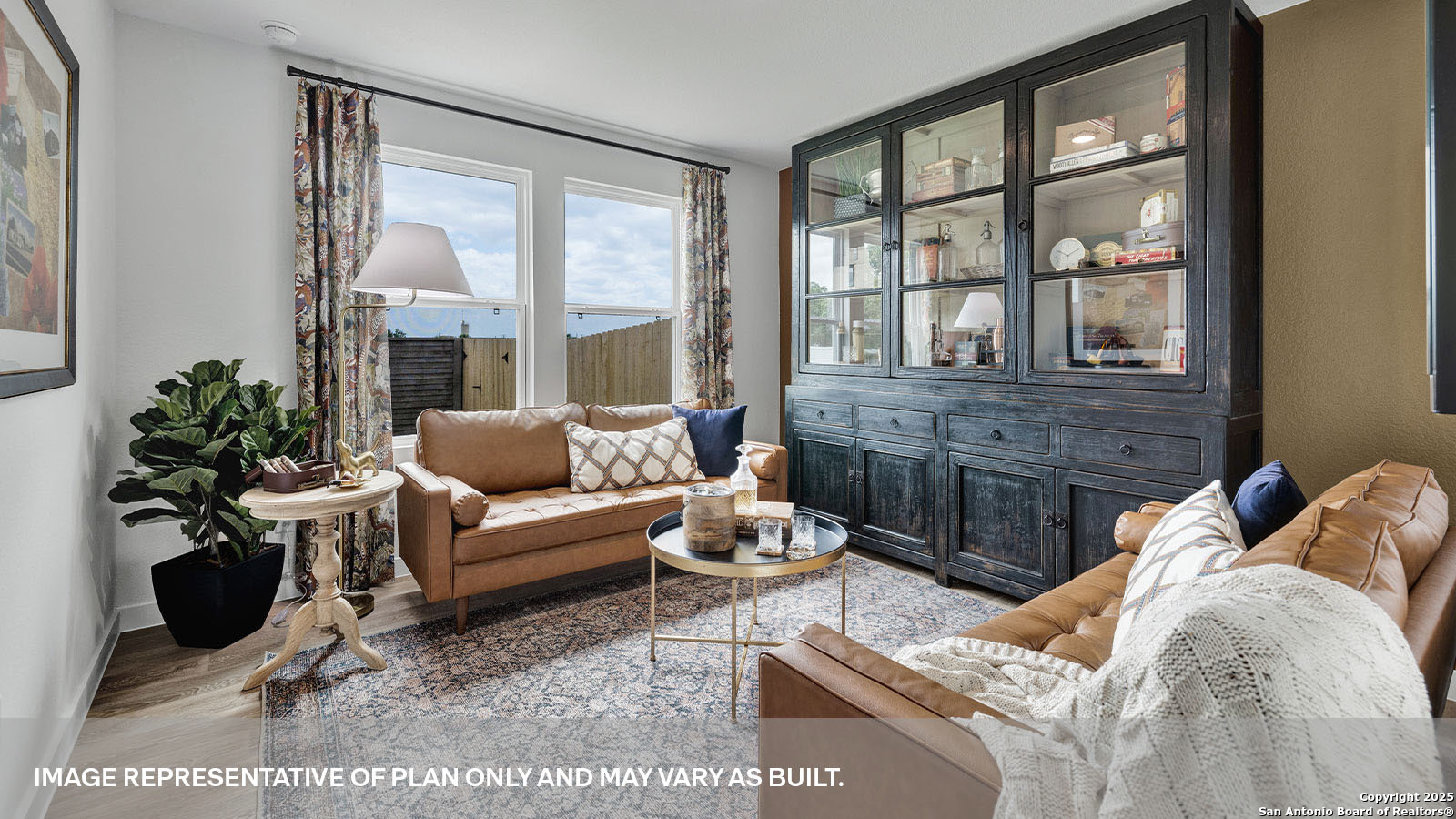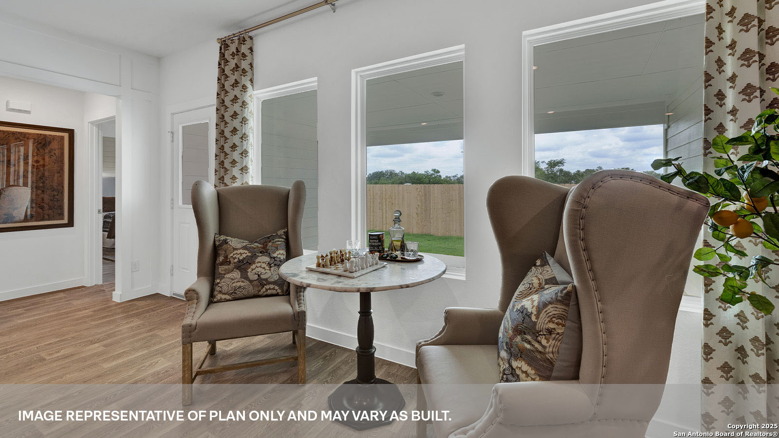 OCTOBER ESTIMATED COMPLETION DATE. The Irving is one of our most popular floorplans and is available at Sonoma Oaks in Fredericksburg, Texas. This one-story home includes 5 bedrooms, 3 bathrooms, and a study within 2,594 square feet of living space and 3 car garage. As you enter the home from the covered front porch, you'll cross the foyer to the dining room, family room and kitchen. This large open concept space is perfect for entertaining and everyday living. The kitchen includes an island with undermount sink, quartz countertops, decorative tile backsplash, a corner pantry closet, stainless-steel appliances and 36'' upper cabinets. The utility room with an extra closet is located just off the kitchen. Check out the primary bedroom, located at the back of the home. This oversized bedroom will become your oasis at the end of the day. Enjoy the 5' walk in shower, quartz countertop vanity with double sinks and toilet area with a separate door. A walk-in closet with generous shelving is connected to the bathroom. In the opposite rear corner of the home, you'll find Bedroom 2 and Bath 2. This private space could be perfect for your guests or any family member that needs their own space. At the front of the home, you'll find the additional 3 bedrooms and Bath 3. Each secondary bedroom includes a closet with shelving, and the secondary bathrooms include a shower/tub combination and shelving for extra storage or decor. The study is off the family room and has a built-in closet. With all the space the Irving offers, your family is sure to love this plan. The Irving includes vinyl flooring throughout the common areas of the home and the primary bedroom, and carpet in the secondary bedrooms. All our new homes in Sonoma Oaks feature a covered back patio, full sod, an irrigation system in the front and back yard. This home includes our America's Smart Home base package, which includes a Video Doorbell, Front Door Deadbolt Lock, Home Hub, Thermostat, and Deako Smart Switches.
