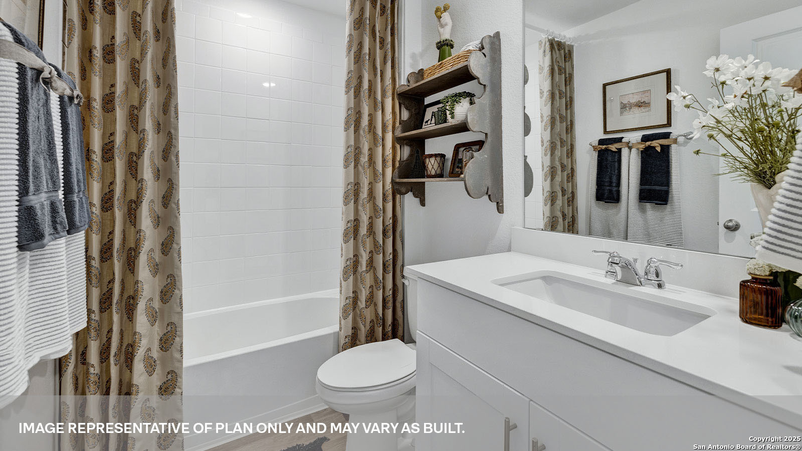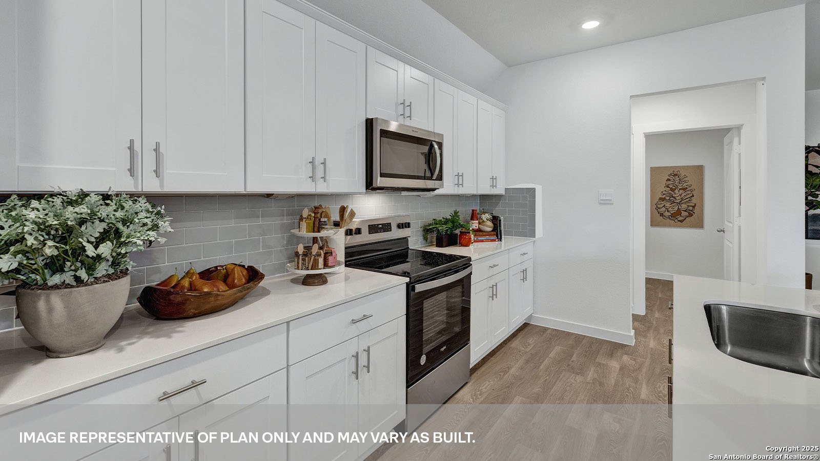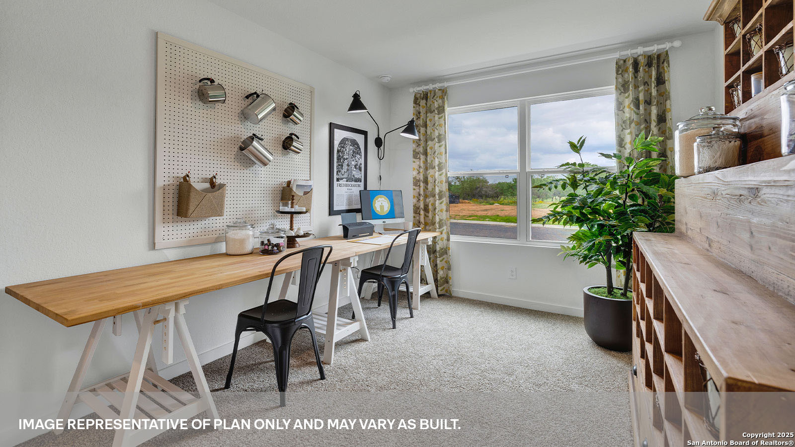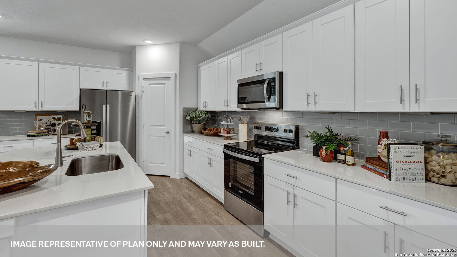 OCTOBER ESTIMATED COMPLETION DATE. The Irving is one of our most popular floorplans and is available at Sonoma Oaks in Fredericksburg, Texas. This one-story home includes 5 bedrooms, 3 bathrooms, and a study within 2,594 square feet of living space and 3 car garage. As you enter the home from the covered front porch, you'll cross the foyer to the dining room, family room and kitchen. This large open concept space is perfect for entertaining and everyday living. The kitchen includes an island with undermount sink, quartz countertops, decorative tile backsplash, a corner pantry closet, stainless-steel appliances and 36'' upper cabinets. The utility room with an extra closet is located just off the kitchen. Check out the primary bedroom, located at the back of the home. This oversized bedroom will become your oasis at the end of the day. Enjoy the 5' walk in shower, quartz countertop vanity with double sinks and toilet area with a separate door. A walk-in closet with generous shelving is connected to the bathroom. In the opposite rear corner of the home, you'll find Bedroom 2 and Bath 2. This private space could be perfect for your guests or any family member that needs their own space. At the front of the home, you'll find the additional 3 bedrooms and Bath 3. Each secondary bedroom includes a closet with shelving, and the secondary bathrooms include a shower/tub combination and shelving for extra storage or decor. The study is off the family room and has a built-in closet. With all the space the Irving offers, your family is sure to love this plan. The Irving includes vinyl flooring throughout the common areas of the home and the primary bedroom, and carpet in the secondary bedrooms. All our new homes in Sonoma Oaks feature a covered back patio, full sod, an irrigation system in the front and back yard. This home includes our America's Smart Home base package, which includes a Video Doorbell, Front Door Deadbolt Lock, Home Hub, Thermostat, and Deako Smart Switches.