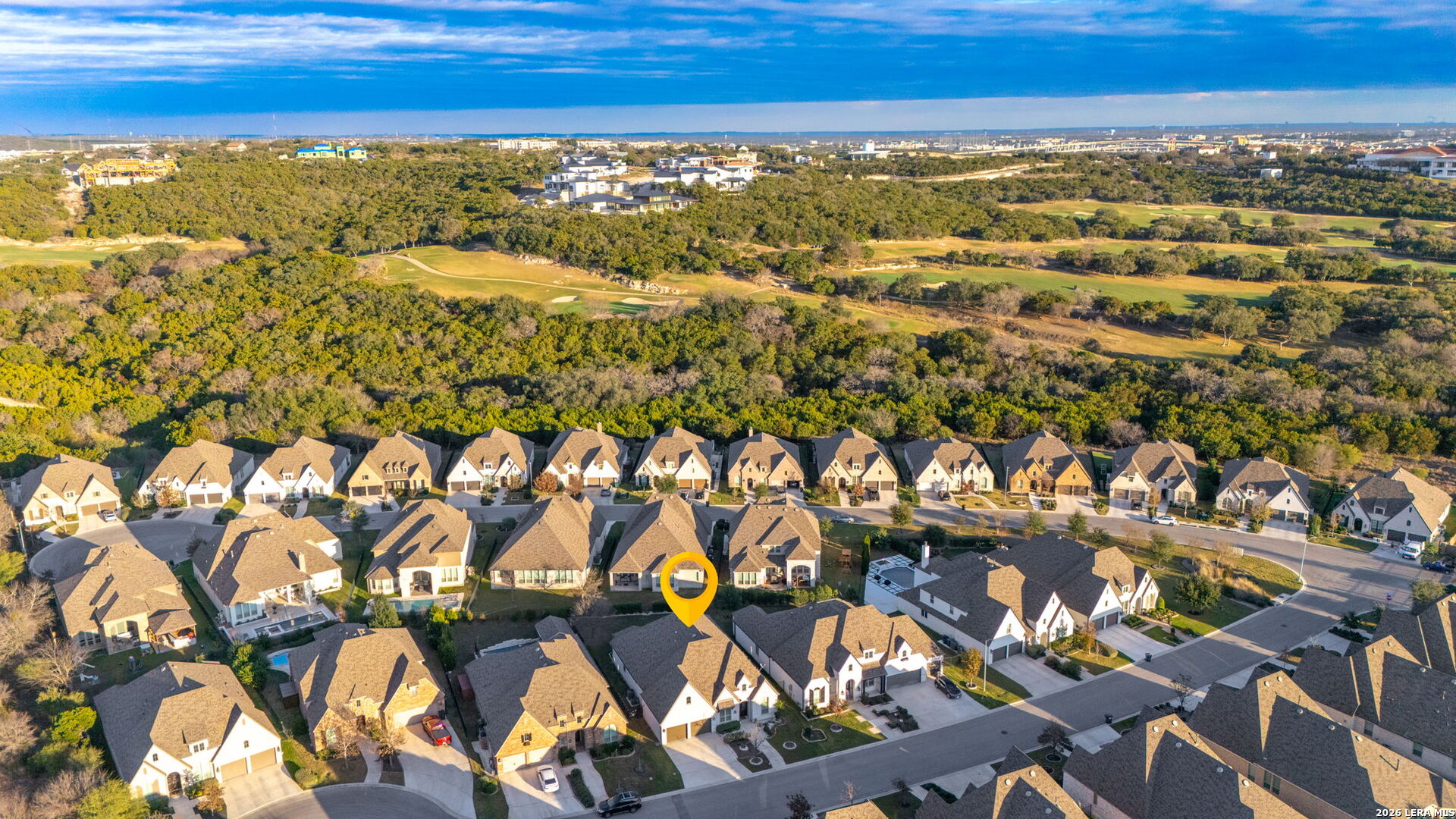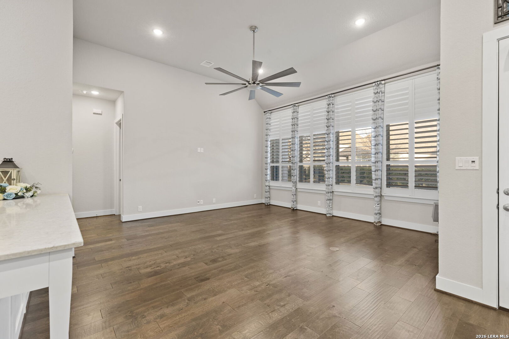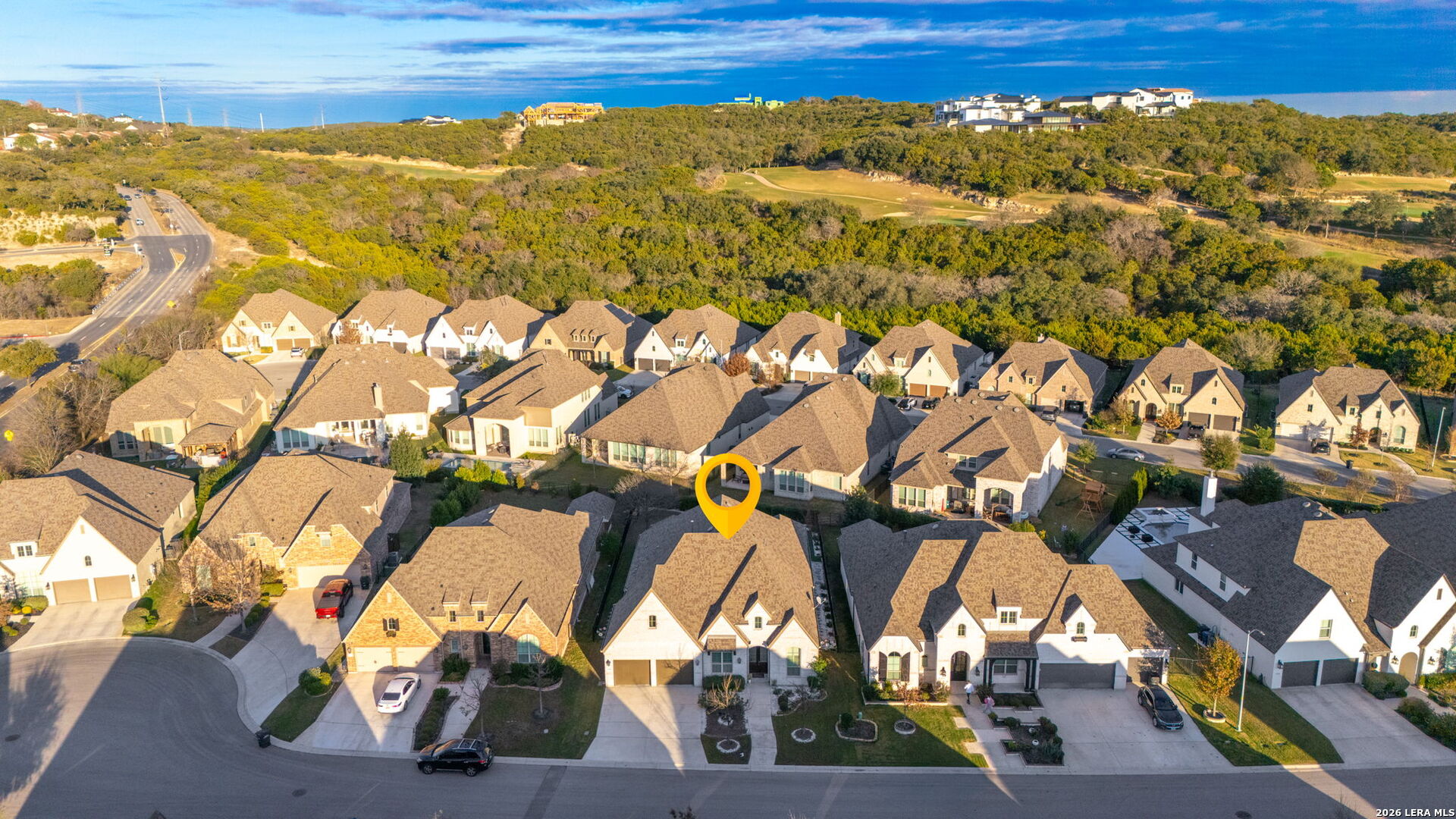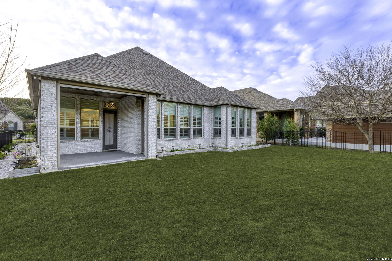There is a certain peace that comes with living at the edge of the Texas Hill Country. At 17918 Cantera Court, that peace is paired with an uncompromising level of luxury. Nestled in an exclusive, controlled-access community just minutes from the high-end energy of La Cantera and The Rim, this 2019 Highland-built home is a rare single-story find that blends grand-scale entertaining with intimate, everyday comfort. As you step inside, the soaring ceilings and beautiful wood-like tile floors create an immediate sense of scale and airy sophistication. The heart of this nearly 2,900-square-foot sanctuary is a culinary dream, featuring a massive central island and a secondary peninsula that provide an incredible amount of workspace and seating for guests. This chef's kitchen flows effortlessly into the living room, where a sleek fireplace with a bold dark mantle serves as a warm, sophisticated anchor for the open-concept space. The home is designed with specialized retreats for every lifestyle, including a dedicated media room for immersive movie nights and a private executive study finished with custom-built cabinetry and incorporated bookshelves. The primary suite offers a true spa experience, highlighted by a master bath that has been fully upgraded with a sleek stand-alone tub and designer tile work in the shower. Throughout the home, meticulous attention to detail is evident in the plantation shutters on every window, decorative curtains, and custom-built mudroom storage. Practical luxury is incorporated at every turn, from the full-house water softener and filtered refrigerator line to the added attic flooring for organized storage. Outside, the transition is seamless to a patio equipped with custom privacy shades, overlooking a professionally landscaped yard with flower beds and a clean rock walkway. From the full-house gutters to the stunning views of the surrounding hills, every element of 17918 Cantera Court has been perfectly curated for a life of ease and elegance. About the Neighborhood: The Best of San Antonio at Your Doorstep Living at 17918 Cantera Court means you are perfectly positioned at the intersection of rugged Hill Country beauty and urban sophistication. Situated in an exclusive, controlled-access community, you enjoy the quiet security of a private enclave while remaining just minutes away from the city's premier destinations. The Rim and La Cantera are the crown jewels of this area, offering a world-class blend of high-end shopping, chef-driven dining, and premier entertainment. Whether you are spending an afternoon browsing the boutiques at the open-air Shops at La Cantera, catching a film at the luxury cinemas at The Rim, or enjoying a round of golf at the nearby championship courses, the best of San Antonio is effectively your backyard. With quick access to major thoroughfares, you have the ultimate convenience of being "close to it all" while having a peaceful, gated retreat to return to at the end of the day.