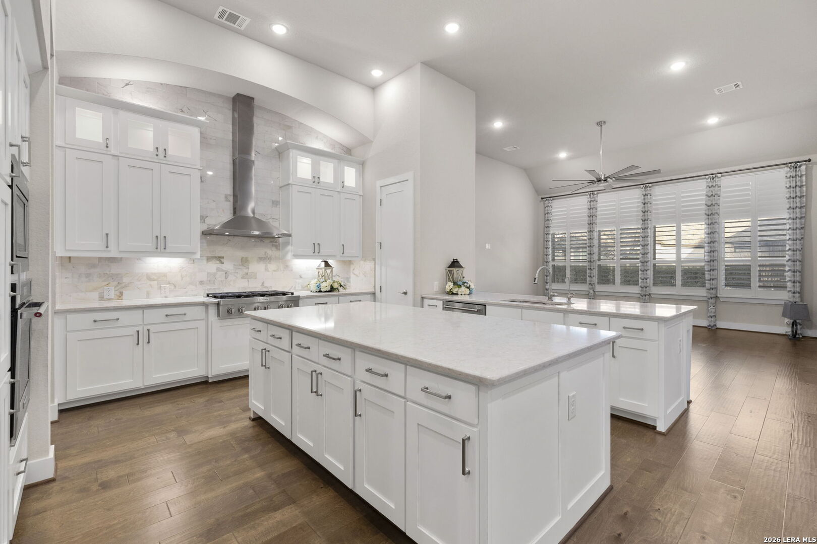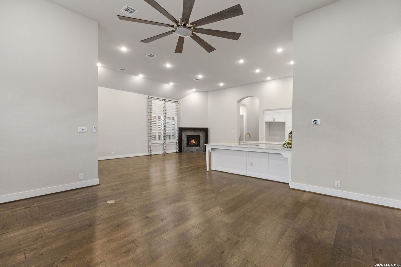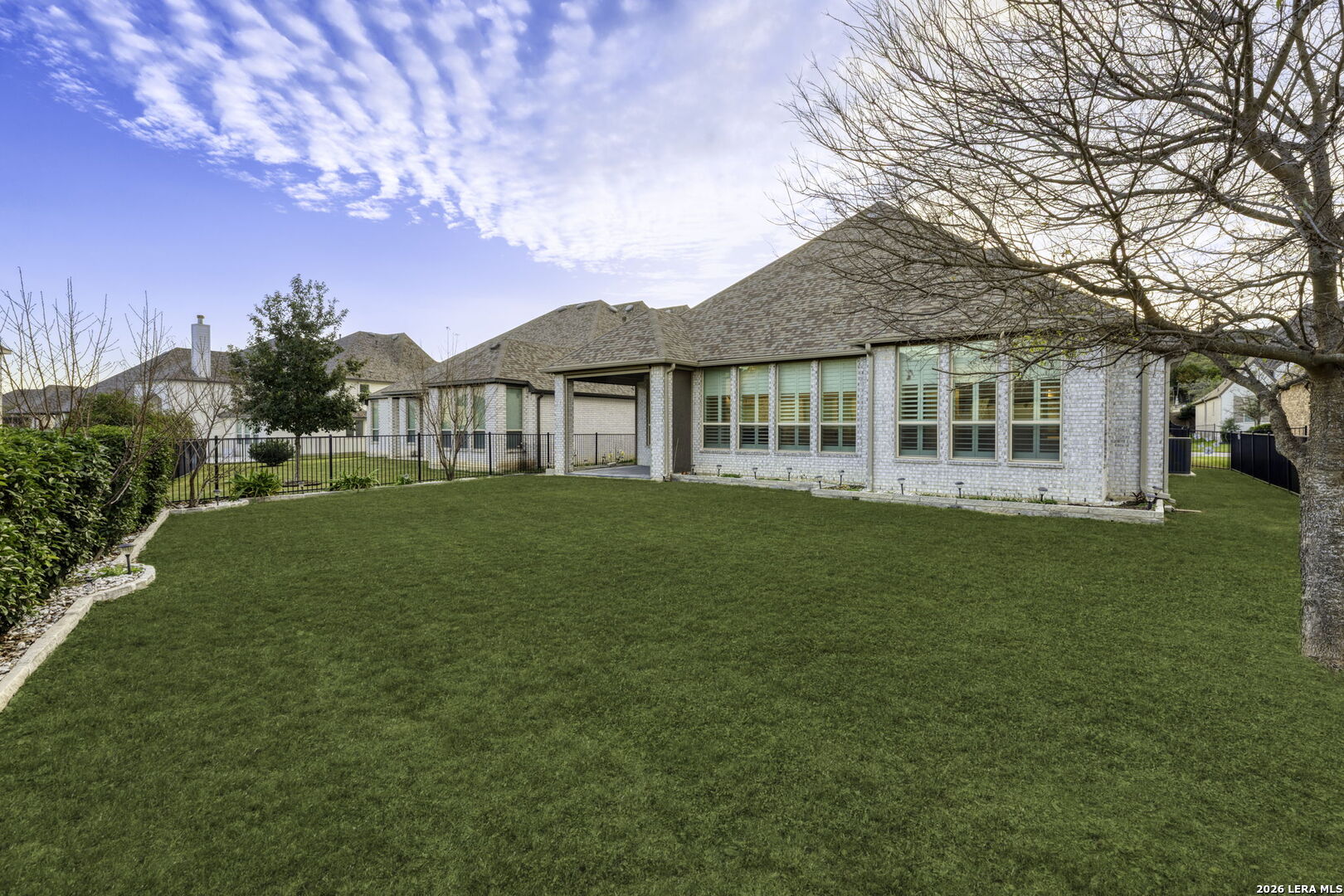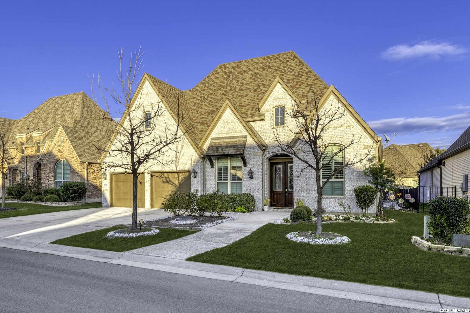 There is a certain peace that comes with living at the edge of the Texas Hill Country. At 17918 Cantera Court, that peace is paired with an uncompromising level of luxury. Nestled in an exclusive, controlled-access community just minutes from the high-end energy of La Cantera and The Rim, this 2019 Highland-built home is a rare single-story find that blends grand-scale entertaining with intimate, everyday comfort. As you step inside, the soaring ceilings and beautiful wood-like tile floors create an immediate sense of scale and airy sophistication. The heart of this nearly 2,900-square-foot sanctuary is a culinary dream, featuring a massive central island and a secondary peninsula that provide an incredible amount of workspace and seating for guests. This chef's kitchen flows effortlessly into the living room, where a sleek fireplace with a bold dark mantle serves as a warm, sophisticated anchor for the open-concept space. The home is designed with specialized retreats for every lifestyle, including a dedicated media room for immersive movie nights and a private executive study finished with custom-built cabinetry and incorporated bookshelves. The primary suite offers a true spa experience, highlighted by a master bath that has been fully upgraded with a sleek stand-alone tub and designer tile work in the shower. Throughout the home, meticulous attention to detail is evident in the plantation shutters on every window, decorative curtains, and custom-built mudroom storage. Practical luxury is incorporated at every turn, from the full-house water softener and filtered refrigerator line to the added attic flooring for organized storage. Outside, the transition is seamless to a patio equipped with custom privacy shades, overlooking a professionally landscaped yard with flower beds and a clean rock walkway. From the full-house gutters to the stunning views of the surrounding hills, every element of 17918 Cantera Court has been perfectly curated for a life of ease and elegance. About the Neighborhood: The Best of San Antonio at Your Doorstep Living at 17918 Cantera Court means you are perfectly positioned at the intersection of rugged Hill Country beauty and urban sophistication. Situated in an exclusive, controlled-access community, you enjoy the quiet security of a private enclave while remaining just minutes away from the city's premier destinations. The Rim and La Cantera are the crown jewels of this area, offering a world-class blend of high-end shopping, chef-driven dining, and premier entertainment. Whether you are spending an afternoon browsing the boutiques at the open-air Shops at La Cantera, catching a film at the luxury cinemas at The Rim, or enjoying a round of golf at the nearby championship courses, the best of San Antonio is effectively your backyard. With quick access to major thoroughfares, you have the ultimate convenience of being "close to it all" while having a peaceful, gated retreat to return to at the end of the day.