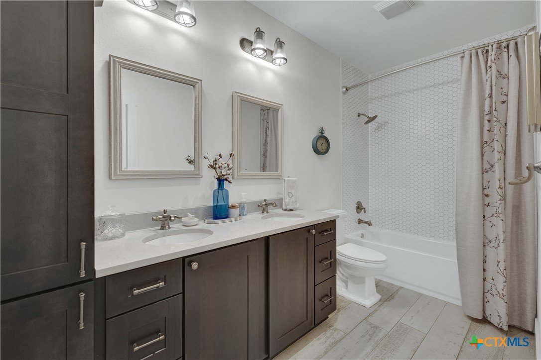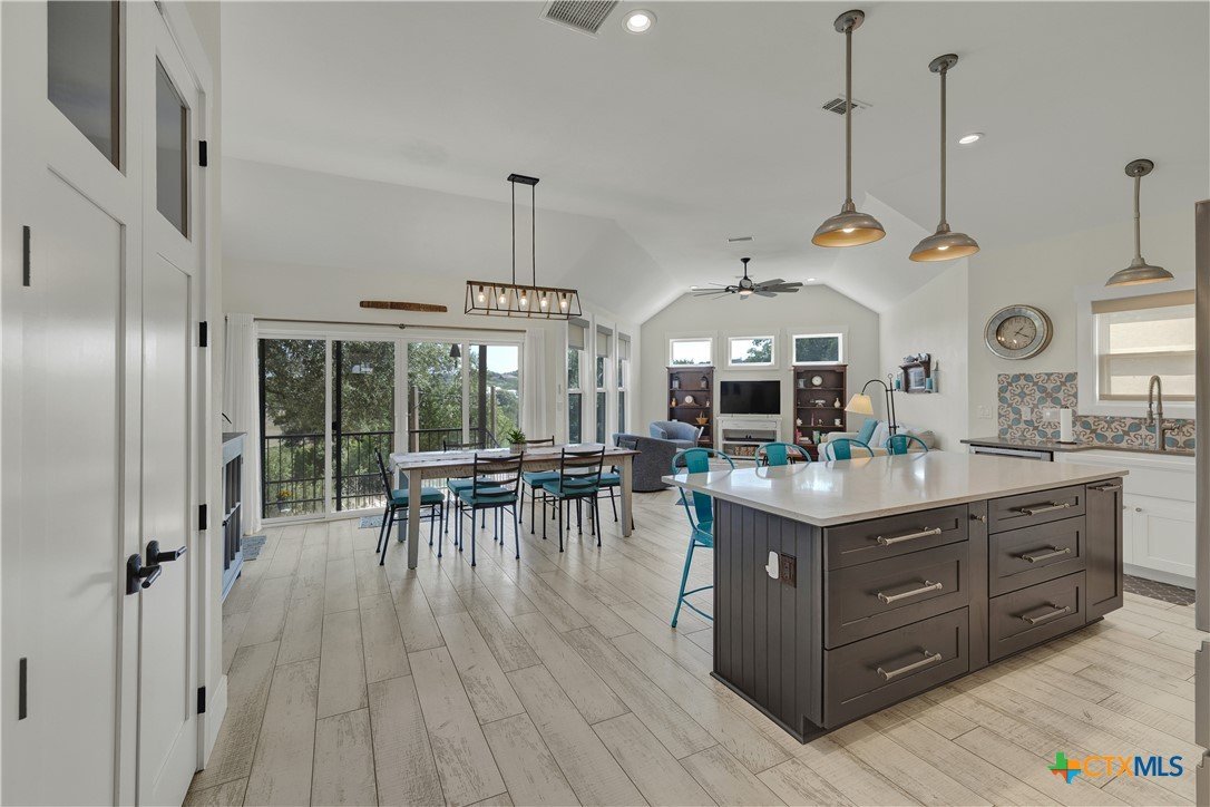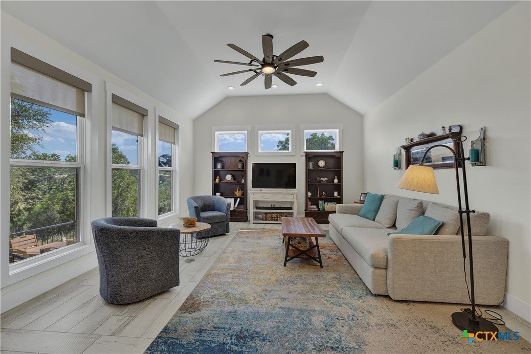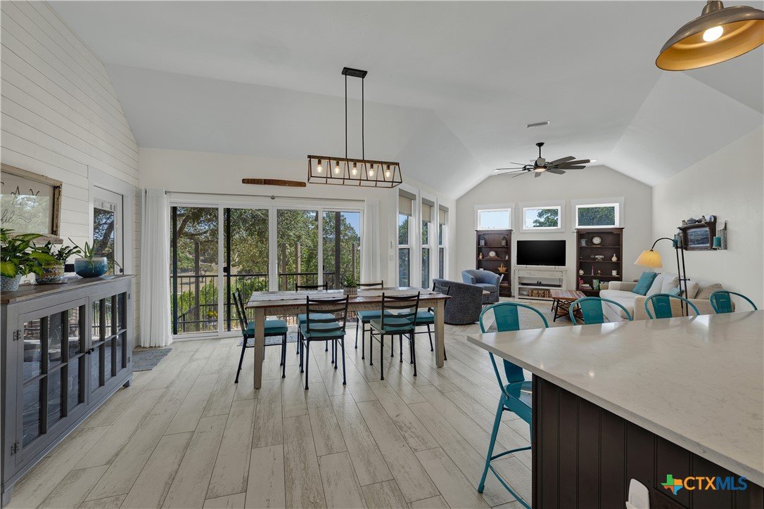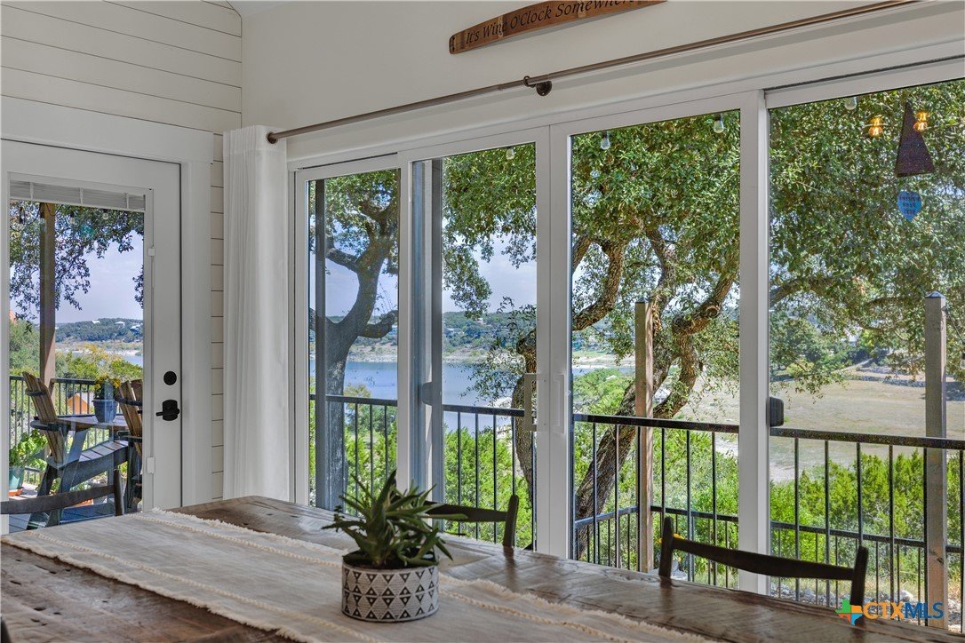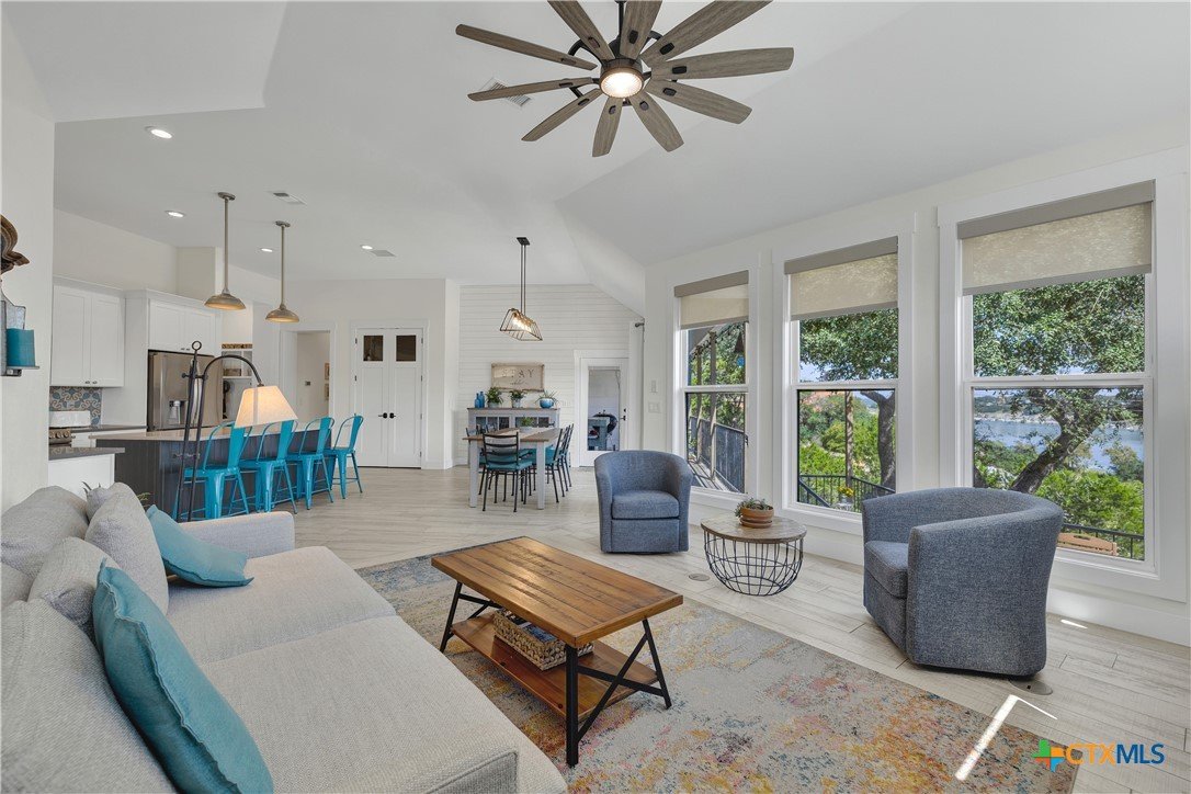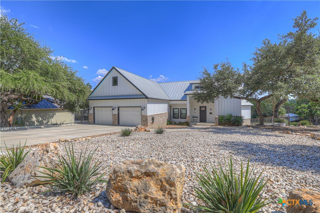 Waterfront Custom-Built Hill Country Home with Panoramic Canyon Lake Views & Built-In Equity. This stunning 2019 waterfront home offers over $118K in built-in equity from day one, a rare opportunity in today’s market. Perfectly positioned in the highly desirable Canyon Springs Resort, this property is just 300' from Boat Ramp 8 and boasts direct waterfront access with breathtaking panoramic views from the back deck, living room, kitchen, and primary bedroom. Imagine sipping wine by the water, feeding deer in your yard, or stargazing under the Hill Country sky—this home delivers the perfect blend of lake lifestyle, modern comfort, and investment potential. Interior Highlights: Open-Concept Layout with the signature “Crooked Room” designed to perfectly frame the lake, Wood-Look Tile Floors & Vaulted Ceilings for timeless elegance, Wrap-Around Pantry, spacious laundry room, Smart Home Features: thermostat, lighting, water heater, & electric porch sunshade, Garage & Flex Spaces, Oversized Garage fits a full-size truck and small boat, Two Upstairs Flex Areas: Finished extra Room with mini-split A/C—ideal for media room, office, guest suite, or gym, Unfinished Space for storage or future expansion. Exterior & Lot: Nearly 0.8 acres of waterfront property, expansive deck with outdoor dining overlooking Canyon Lake. Modern Farmhouse Design with low-maintenance, drought-tolerant landscaping. Short-Term Rental Potential for excellent income generation. Community & Location. Minutes to top attractions: Camp Fimfo (Texas alpine-style roller coaster), Wineries: La Cruz de Comal, Dry Comal Creek, The Grapevine, Whitewater Amphitheater & Guadalupe River tubing. Fun Fact: Canyon Lake’s famously blue water comes from its natural limestone bottom, making it one of the clearest lakes in Texas. This home is more than a house—it’s a waterfront lifestyle. Whether as a full-time residence, weekend getaway, or STR investment, this one checks every box. Schedule a showing today.
