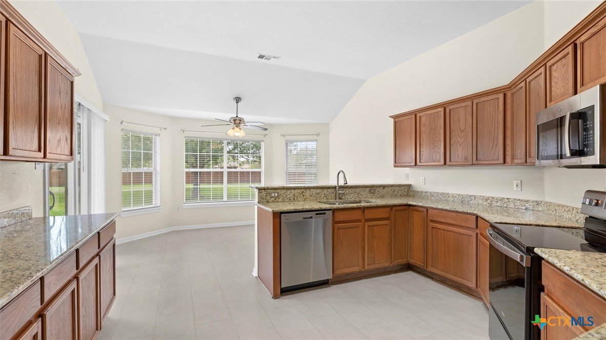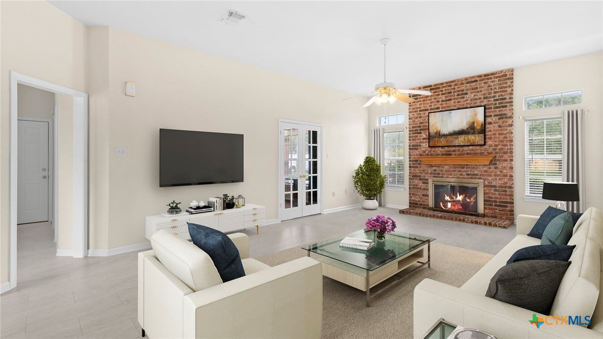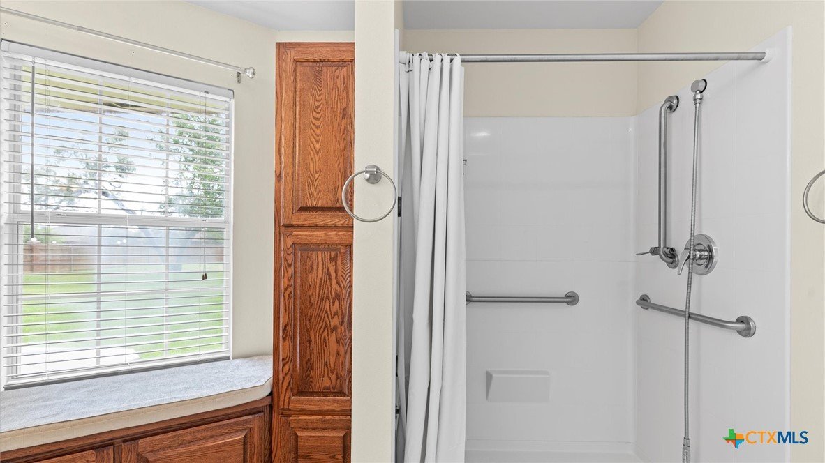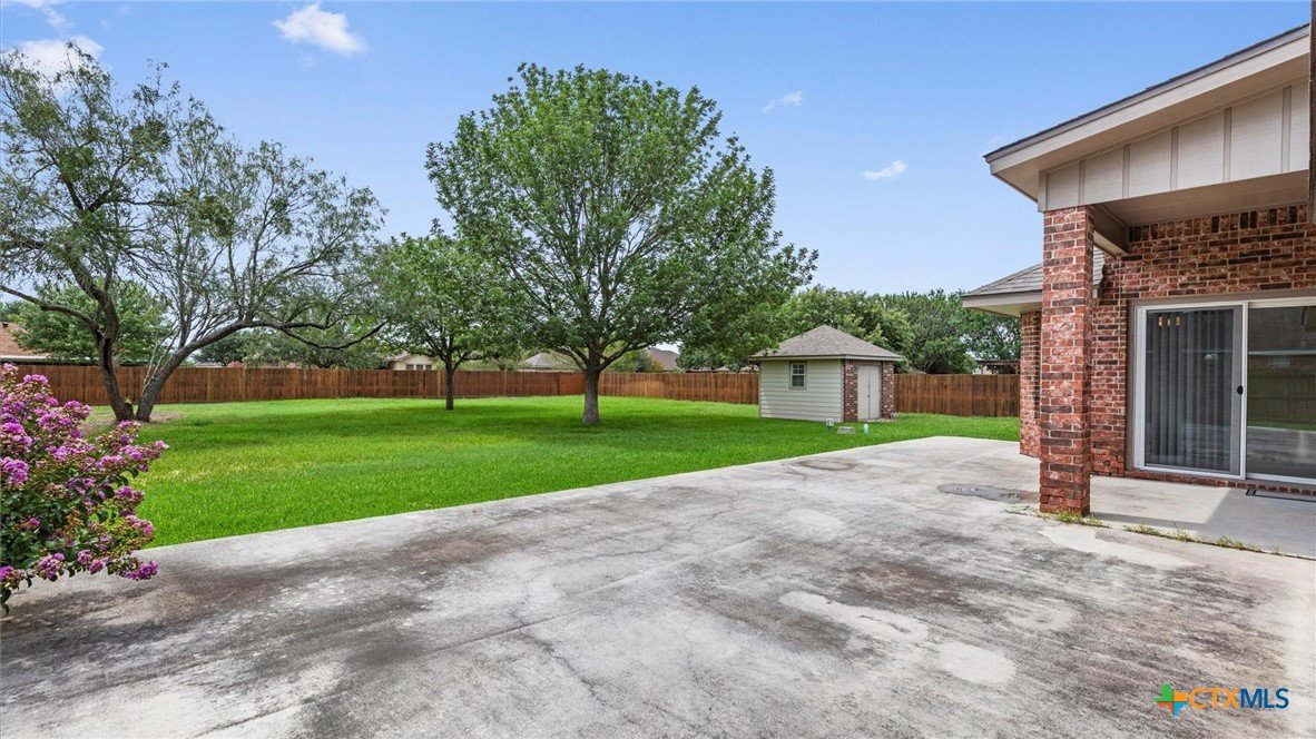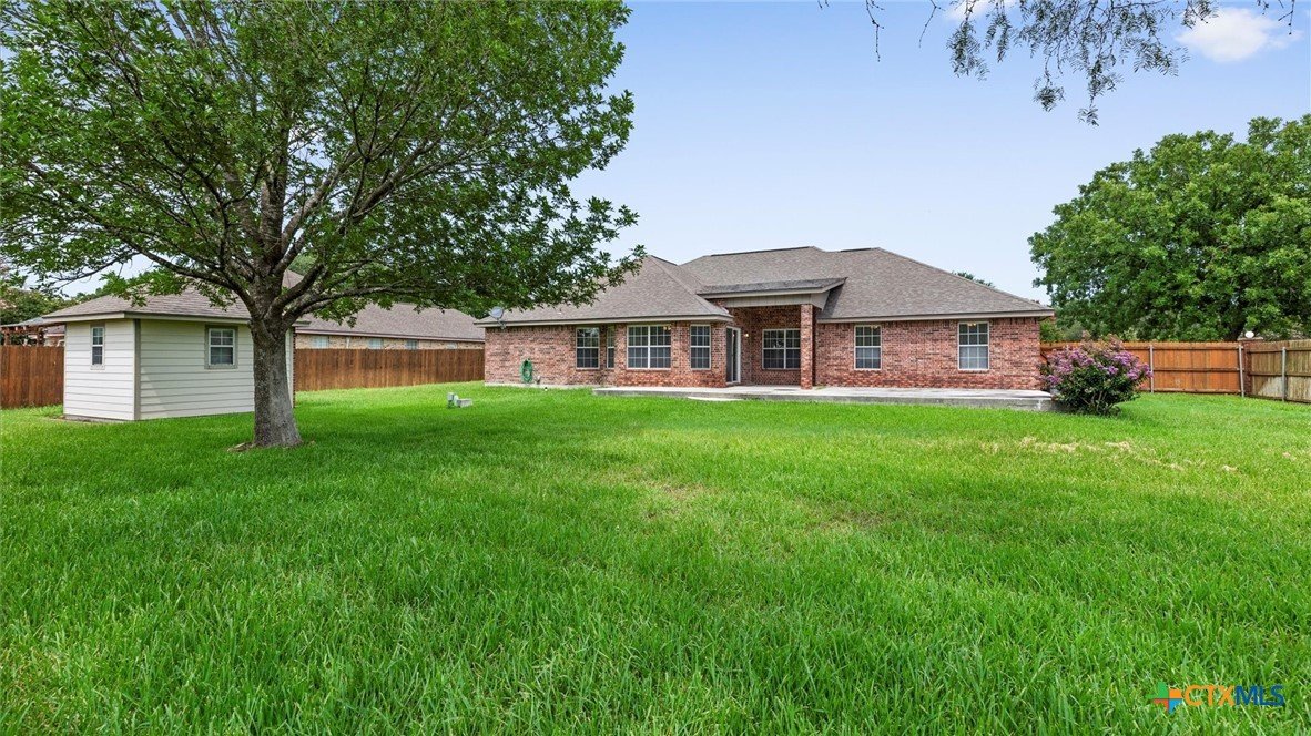 Welcome to country living with quick access to city life because who wants to pick when you can have the best of both worlds, this home is situated in a quiet and established neighborhood. This spacious single-story home offers 4 bedrooms, 2 bathrooms, and an additional converted half bath now serving as a walk-in pantry-perfect for added storage and convenience with the flexibility to be reconverted to a half bath. Step into find a warm and inviting living room with a wood burning fireplace that flows into a dedicated library or office space-ideal for work-from-home days. The layout is thoughtfully designed for accessibility, featuring a wheelchair ramp and handrail in the primary bathroom for added safety and comfort. Perfectly situated on a half-acre lot, the property boasts mature trees providing shade and serenity, an oversized extended patio for outdoor entertaining, plus a backyard shed provides additional storage space for tools, hobbies or extra storage. Enjoy the peace of suburban living while being just minutes from HEB, restaurants, shopping, and more. Don't miss a chance to own a versatile home in a great location! Seller is offering $5,000 seller concessions to for buyer to apply towards closing costs or rate buy-down.
