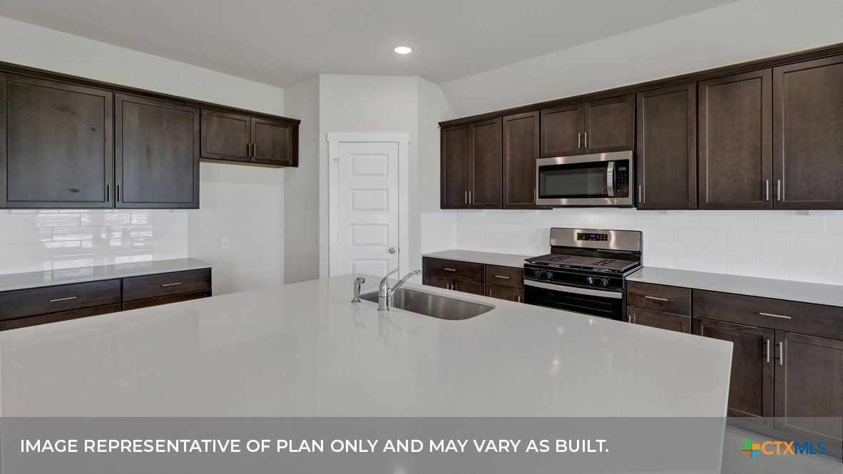 MOVE IN READY! Find all the space you need in our Frisco floorplan at Hartland Ranch in Lockhart, Texas. This spacious one-story home includes 3 bedrooms, 2 bathrooms and a study within 2,087 square feet and a 3 car garage. Step through the covered entryway into the foyer. You’ll find the study off to one side and two secondary bedrooms and a full bathroom off to the other side. The secondary bathroom features the toilet and shower/tub combination behind a separate door, allowing mornings to run efficiently for multiple family members. Past the foyer and study, you’ll enter the dining room, family room, kitchen, and nook. The open living space is perfect for entertaining and you’re sure to make many memories in this beautiful space. The kitchen features an oversized island with undermount sink, quartz countertops, decorative tile backsplash, a corner pantry closet, stainless-steel appliances and 36’’ upper cabinets. Let the natural light shine through the five rear windows, brightening up the living space. The primary bedroom is off the family room and includes its own attached bathroom, making the start of your day a seamless step from sleep to your morning routine. Enjoy the 5’ walk in shower, raised cultured marble vanity with double sinks, and separate door entrance to the toilet for privacy. A walk-in closet with shelving is connected to the bathroom. The utility room is located near the primary bedroom and connects to the garage, perfect for a mud room. The Frisco includes vinyl flooring throughout the common areas of the home and the primary bedroom, and carpet in the secondary bedrooms. All our new homes feature a covered back patio, full sod, an irrigation system in the front and back yard, and full gutters. This home includes our America’s Smart Home base package, which includes the Amazon Echo Pop, Front Doorbell, Front Door Deadbolt Lock, Home Hub, Thermostat, and Deako® Smart Switches.