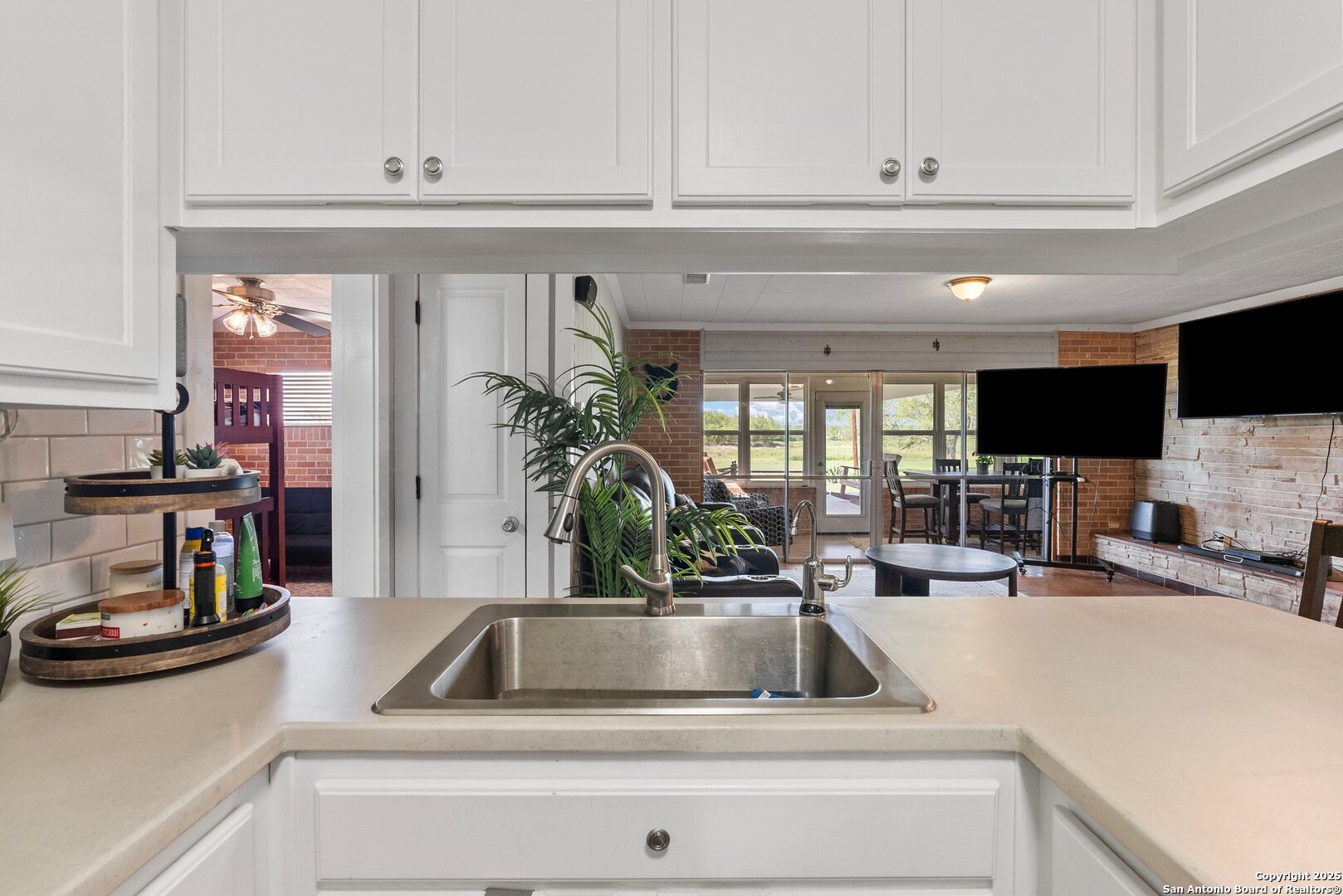 Nestled in a quiet bend off Lake Corpus Christi, this well-maintained home sits on two lots totaling 1.38 acres. Mature oaks draped in moss create a peaceful setting unique to this area of South Texas. Enjoy unobstructed sunrise views from the east-facing covered porch or the enclosed sunroom overlooking the property. Recent updates include a garage conversion adding a large primary suite with full bath, workout room, laundry area, and storage, while still allowing space for two vehicles. The open-concept layout features a refreshed kitchen with clean white subway tile backsplash, stainless steel appliances, and a brick accent wall that adds warmth and character. The home offers large secondary bedrooms, an updated hall bath, Saltillo-style tile flooring, light neutral interior paint, and a cozy wood-burning fireplace. Furnishings may be included for an additional fee. The voluntary HOA provides access to community water, a pool, and boat ramps. ________________________________________ Property Details *3 Bedrooms / 2 Baths / 2-Car Garage *Approx. 1,825 Sq Ft *Open-Concept Floor Plan *Updated Kitchen with Subway Tile Backsplash *Stainless Steel Appliances (Included) *Brick Accent Walls in Living Area & Bedrooms *Enclosed Sunroom with Unobstructed Views *Saltillo-Style Tile Flooring *Light, Neutral Interior Paint *Wood-Burning Fireplace *Converted Garage Creating a Large Primary Suite *Utility / Workout Room ________________________________________ Exterior Features *1.38 Acres (Two Lots) *Covered Back Patio & Side Patio *Gazebo *RV Parking *City Water *Private Well & On-Site Septic *Wood Pier *Detached Storage Building *Optional HOA, $190 Quarterly