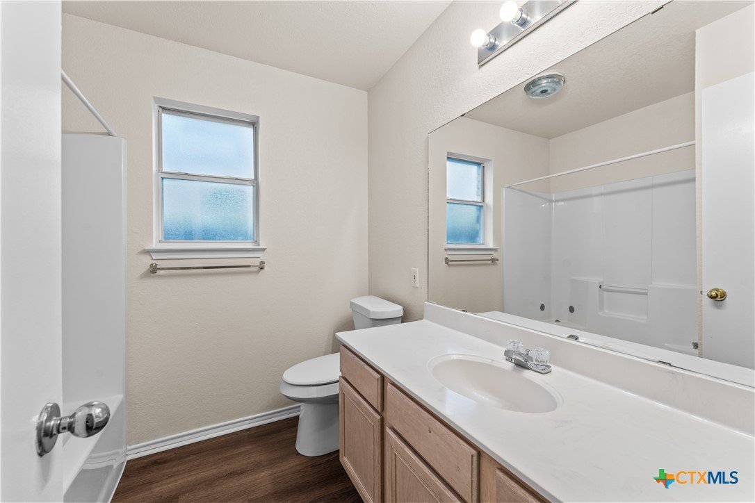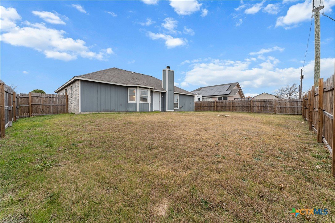 Welcome to this well-maintained 3-bedroom, 2-bath home located in an established neighborhood in Killeen. Offering 1,581 square feet of comfortable living space, this home blends functionality and charm—ideal for first-time buyers, growing households, or those seeking extra space. Recent updates include fresh interior paint and luxury vinyl plank flooring throughout. The open floor plan features a spacious living area with vaulted ceilings and a cozy fireplace, creating an inviting space for relaxing or entertaining. The kitchen offers ample cabinetry and flows seamlessly into a dedicated dining area, perfect for everyday meals or hosting guests. New Fridge, dish washer and matching appliances in kitchen. The primary suite provides a private retreat with an ensuite bath featuring double vanities, a soaking tub, and a walk-in closet. Two additional generously sized bedrooms share a full bathroom with plenty of storage. Enjoy outdoor gatherings in the fully fenced, level backyard with ample space for cookouts and family activities. A two-car garage adds convenience and additional storage. Ideally located just minutes from schools, shopping, Fort Hood, and major highways, this home offers both comfort and accessibility in a quiet neighborhood setting.