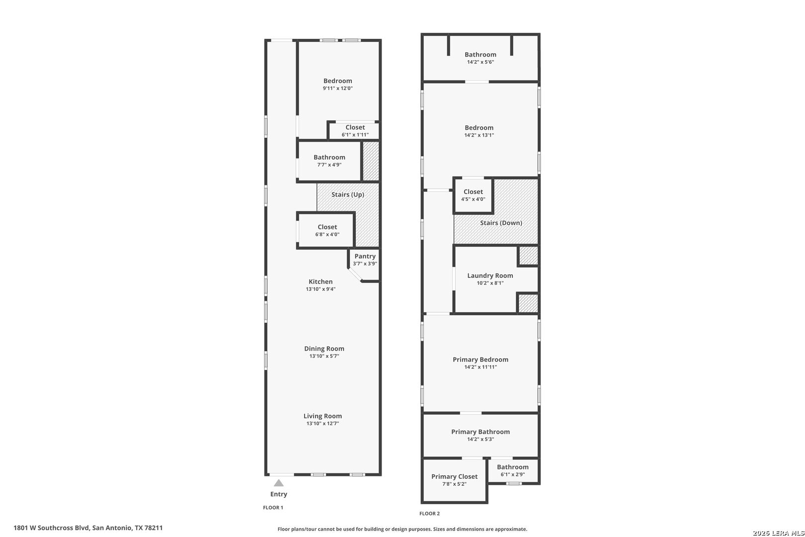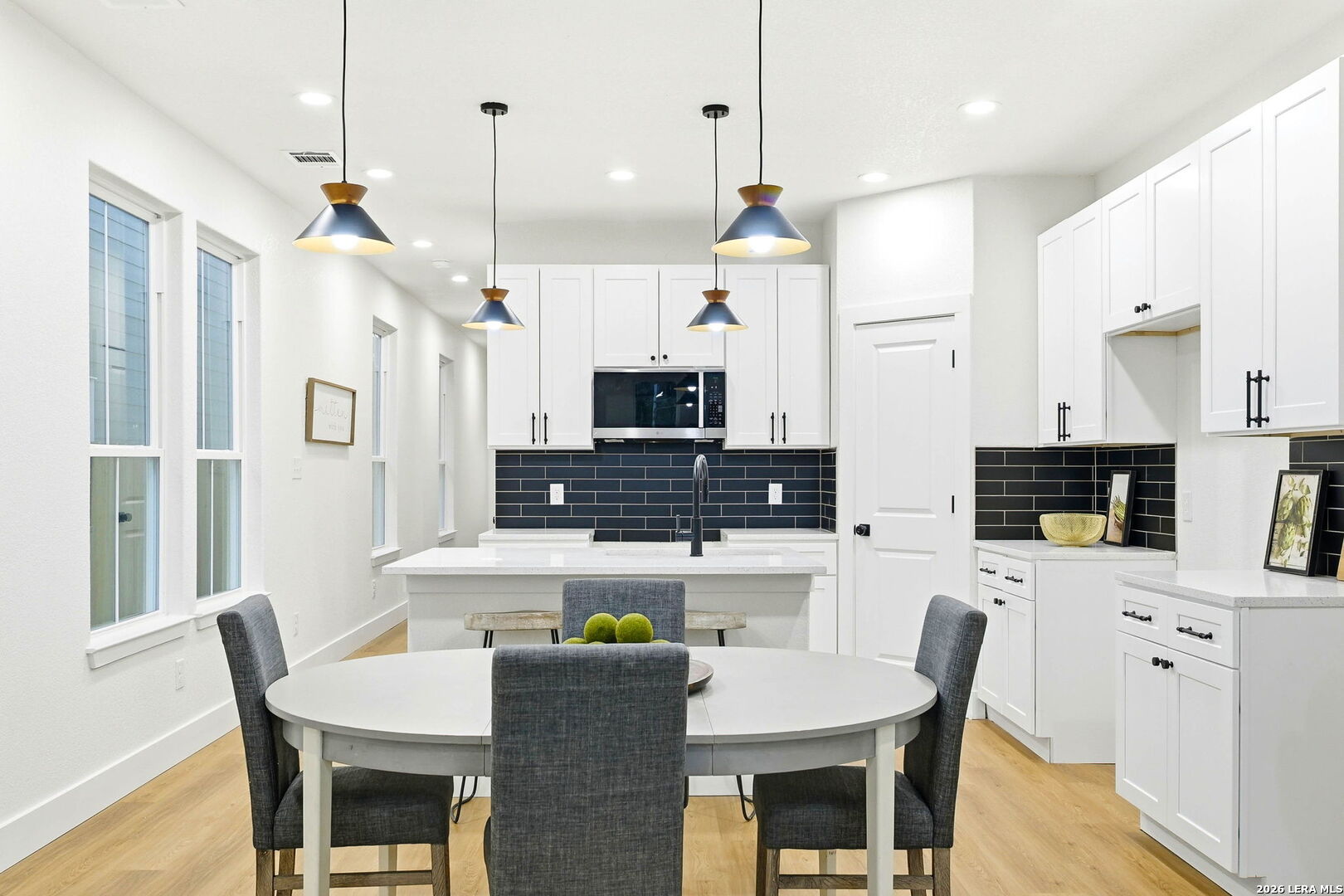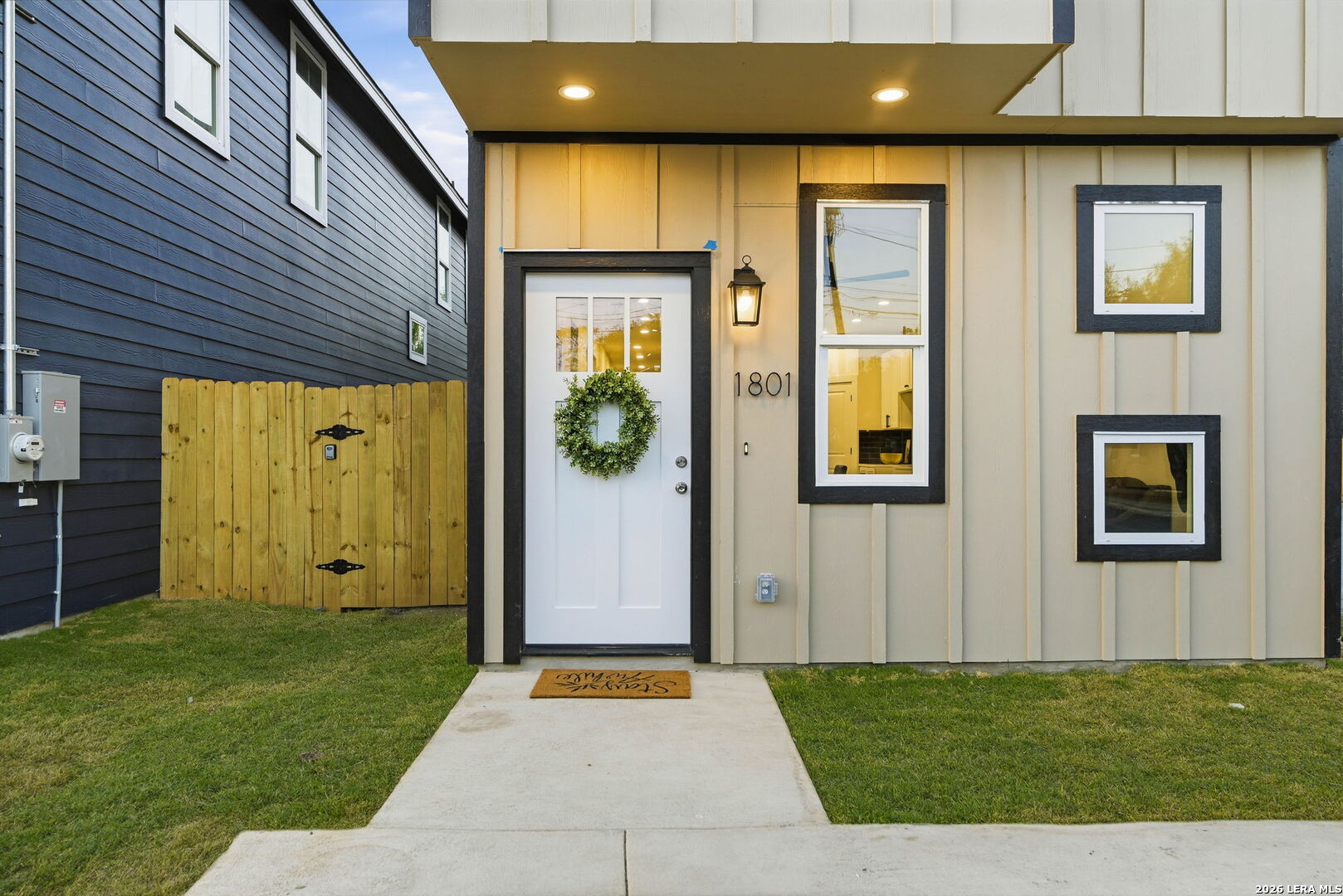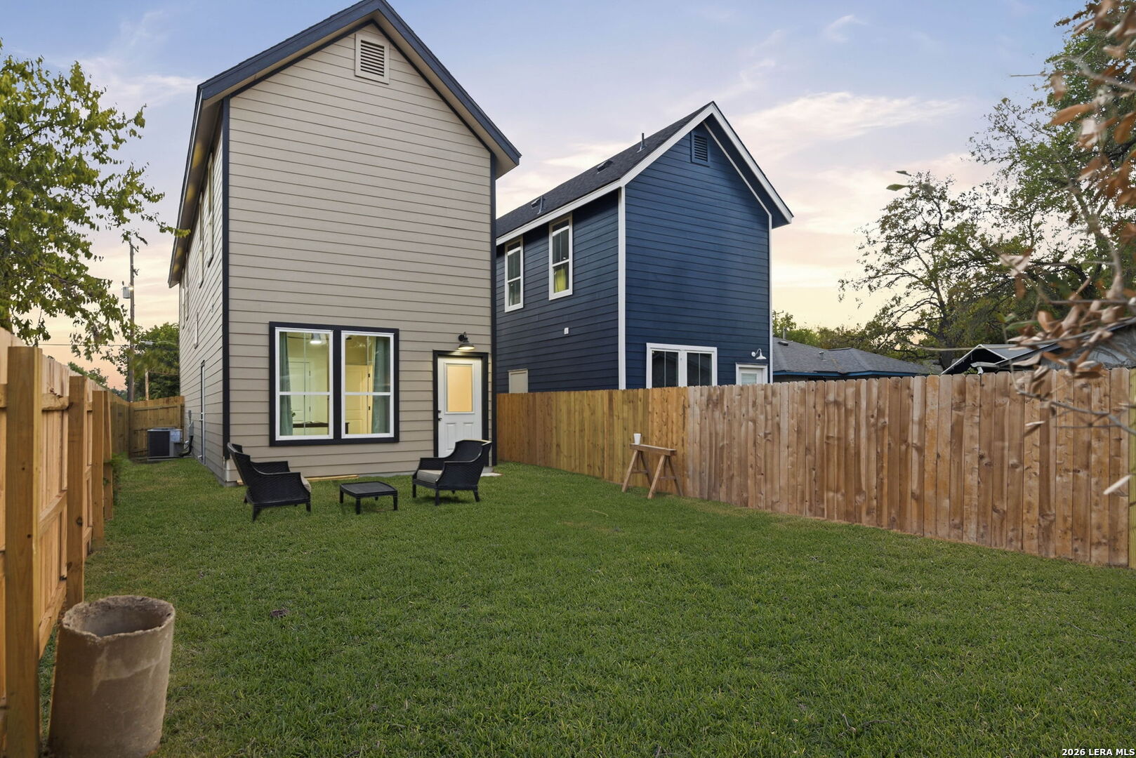 Beautiful newly built home located on a corner lot in the Harlandale neighborhood on the Southside, near downtown San Antonio! This modern residence features an open floor plan filled with natural light, perfect for comfortable living and entertaining. The kitchen boasts a large island, pantry, custom cabinets, elegant pendant lights, and recessed pin lighting. The third bedroom is conveniently located on the main floor, ideal for guests or a home office. Upstairs, the primary bedroom offers a ceiling fan, spacious walk-in closet, and a private en-suite bathroom with a shower and double vanity. Ceiling fans are installed in every room for year-round comfort. Enjoy outdoor gatherings in the fenced backyard that provides added privacy. Conveniently located near I-35, South Park Mall, H-E-B, Home Depot, and plenty of retail, dining, and entertainment options.