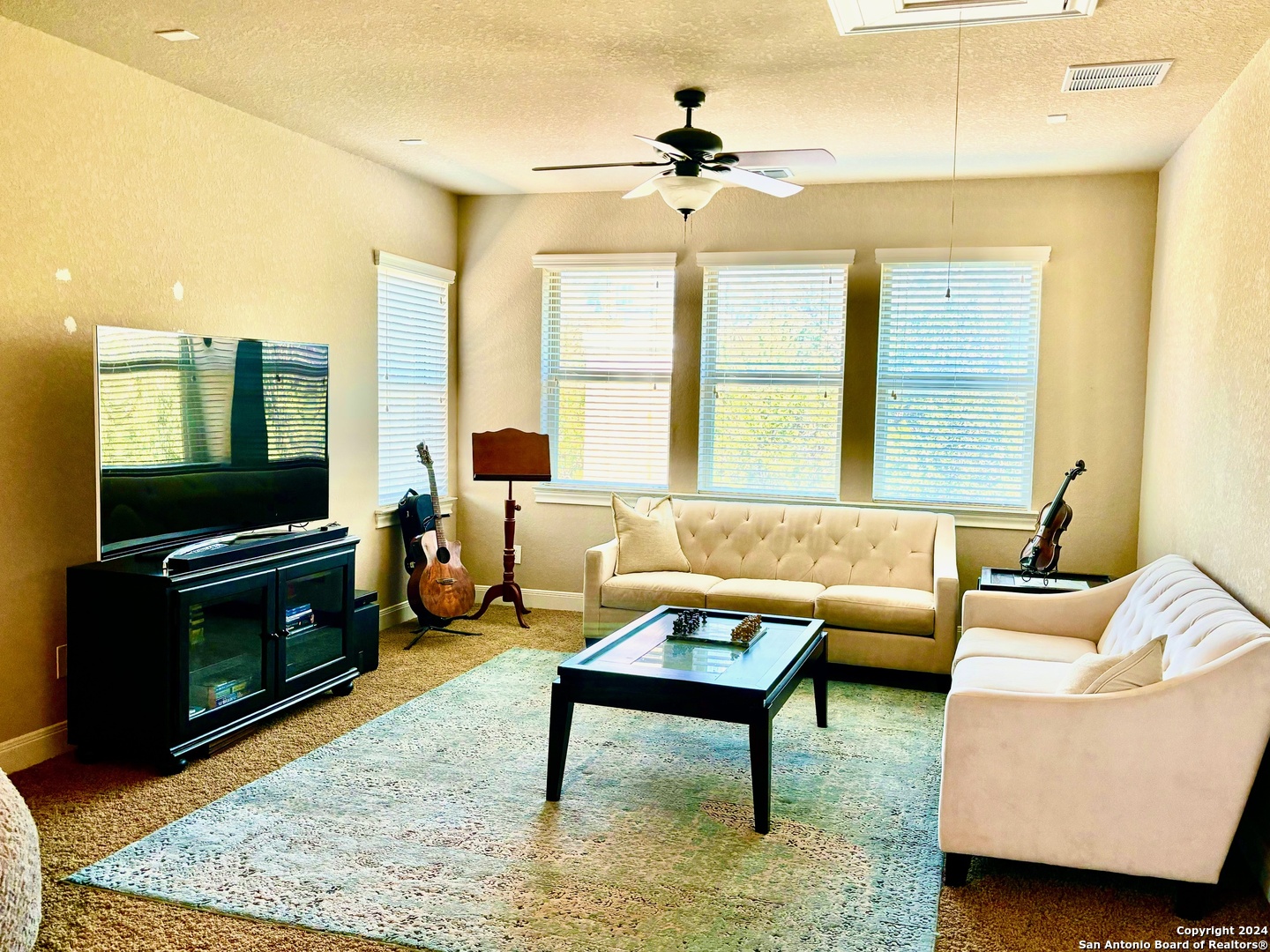 Nestled on a quiet hill in a gated community, this home features a 3-car garage and is in the sought-after NISD area. The chef's kitchen boasts a gas stove, double ovens, and ample cabinets. Enjoy entertainment with a sound system on the first floor, master bedroom, and patio. It includes a dedicated office, a private backyard with a fireplace, and an extended deck. The laundry room has organizers and a mudroom. Upstairs are 2 spacious bedrooms and a large game/TV room. Rent includes some furniture, HOA amenities like a gym, pool, clubhouse and tennis courts. Just 5 minutes from La Cantera and the Rim. Available partially or fully furnished.