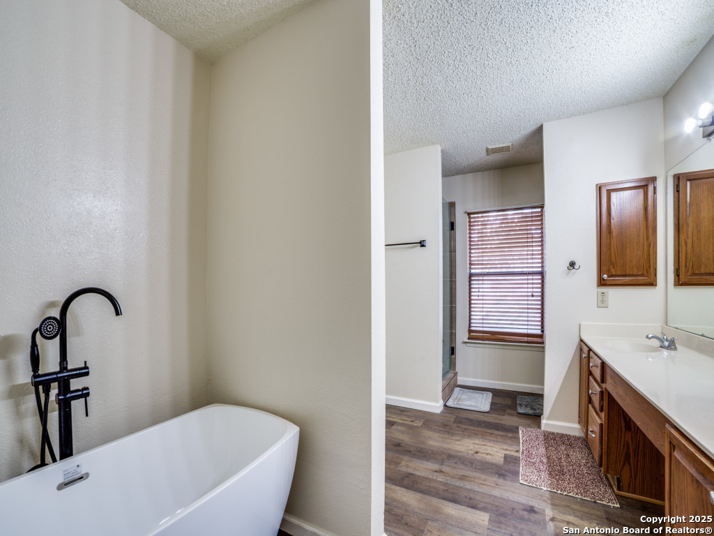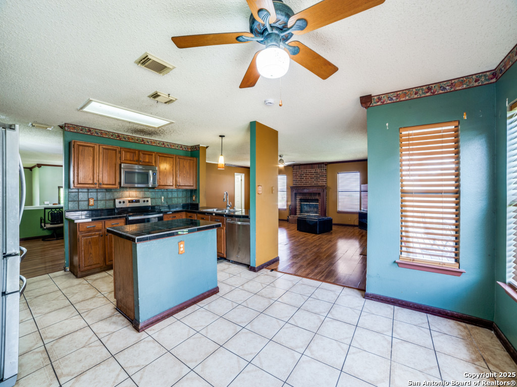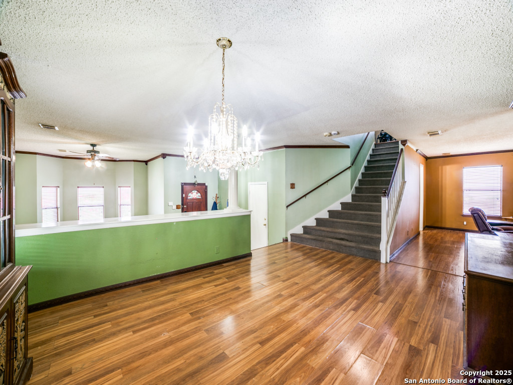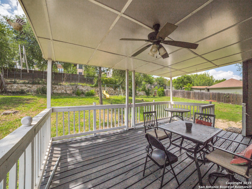 Situated just inside Loop 1604 and Hwy 151 in the sought-after Oak Creek subdivision, this beautifully updated 4-bedroom, 2.5-bathroom home is a rare find. Set on a generously sized lot of 0.378 acres, the home boasts a spacious open layout and a large backyard complete with a covered patio-perfect for entertaining or unwinding under the stars while enjoying views of SeaWorld's fireworks. All bedrooms are located upstairs, creating a peaceful retreat separate from the first floor's wide-open layout. Accented with crown molding throughout the main level, rich wood flooring, updated kitchen tilework, a stylish island, and an upgraded primary bathroom that adds a touch of luxury, this home is designed with style and functionality in mind. Enjoy unmatched convenience with quick access to Hwy 151, Loop 1604, and Loop 410, just minutes from SeaWorld of Texas, H-E-B, the new Costco, Walmart, Lackland AFB, and a variety of local dining options.