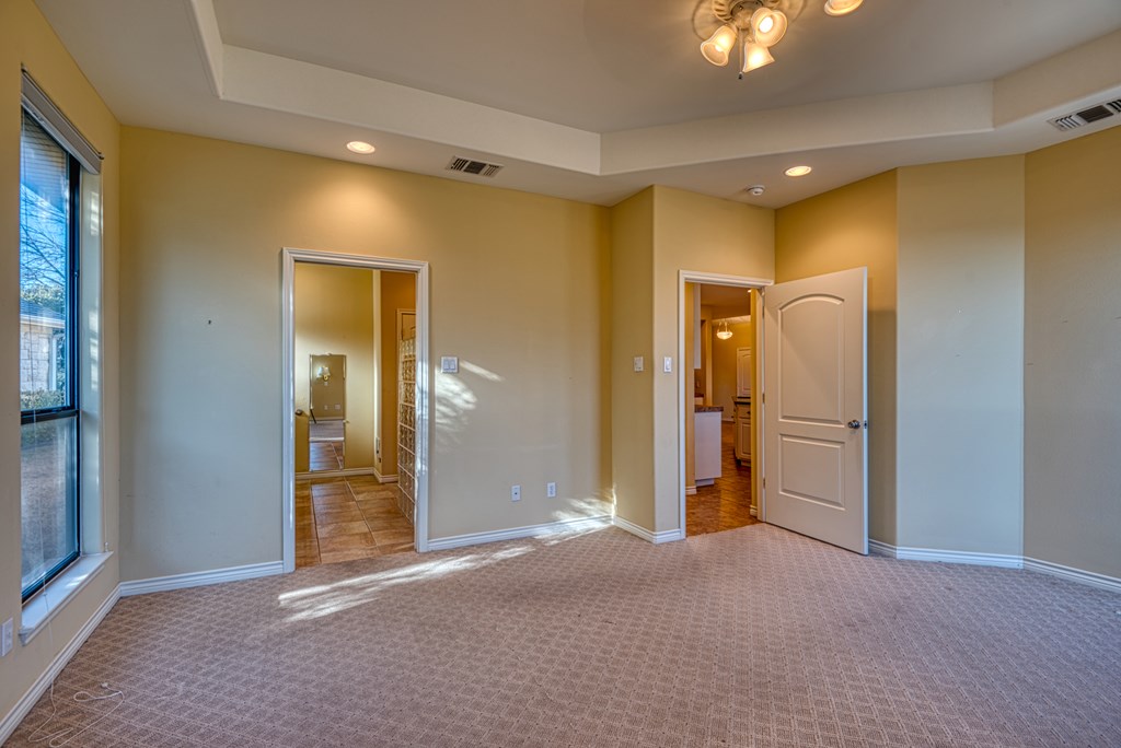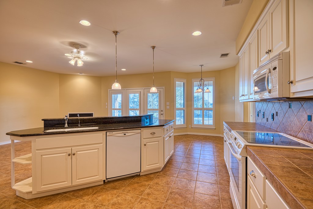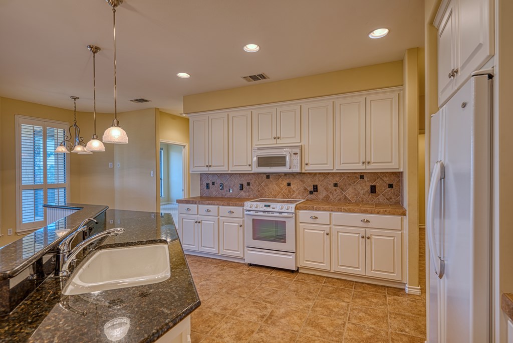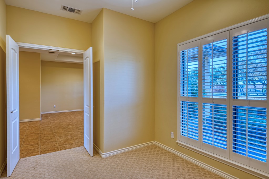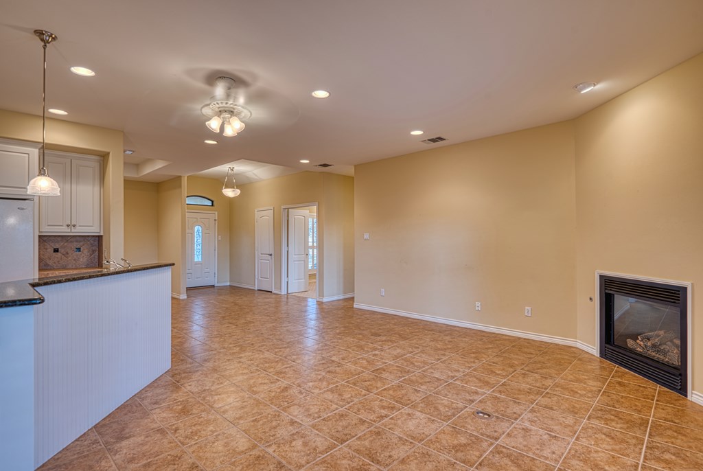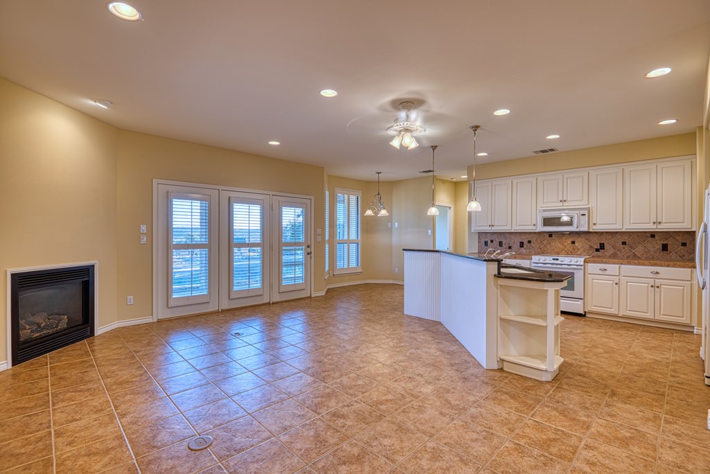 Nestled in The Meridian, a gated 55+ community is this charming 2 bedroom, 2 bath home plus an office. The front door opens to a large great room with gas fireplace and formal dining area with tray ceiling. There are lots of windows throughout that illuminate the home with natural light. Throughout the home you will find recessed lighting and tile flooring everywhere but the bedrooms & office. The kitchen has lots of cabinet space, an island with granite countertop, sink and dishwasher. Off the kitchen there is a great breakfast area with bay windows that look out over the backyard and spacious covered back patio. The master bedroom features a tray ceiling and master bath with walk-in closet. The HOA fees include the mowing of the front yard and access to the community club house.
