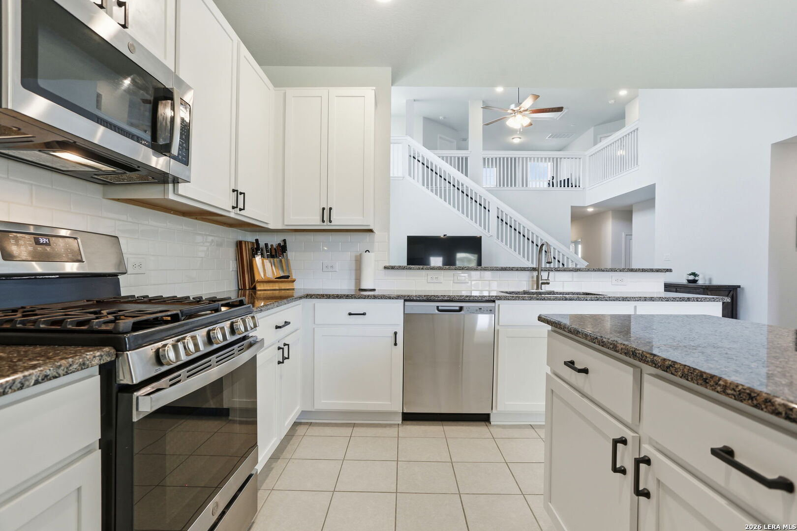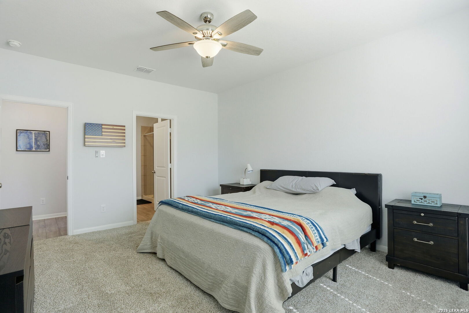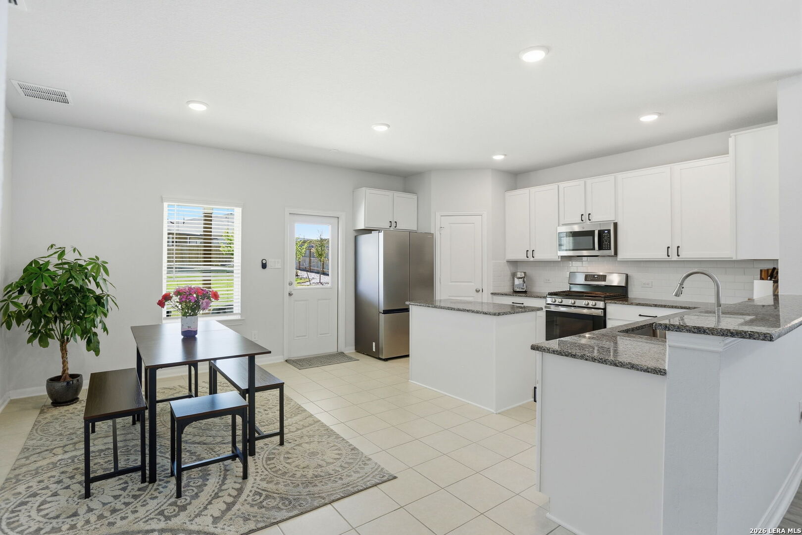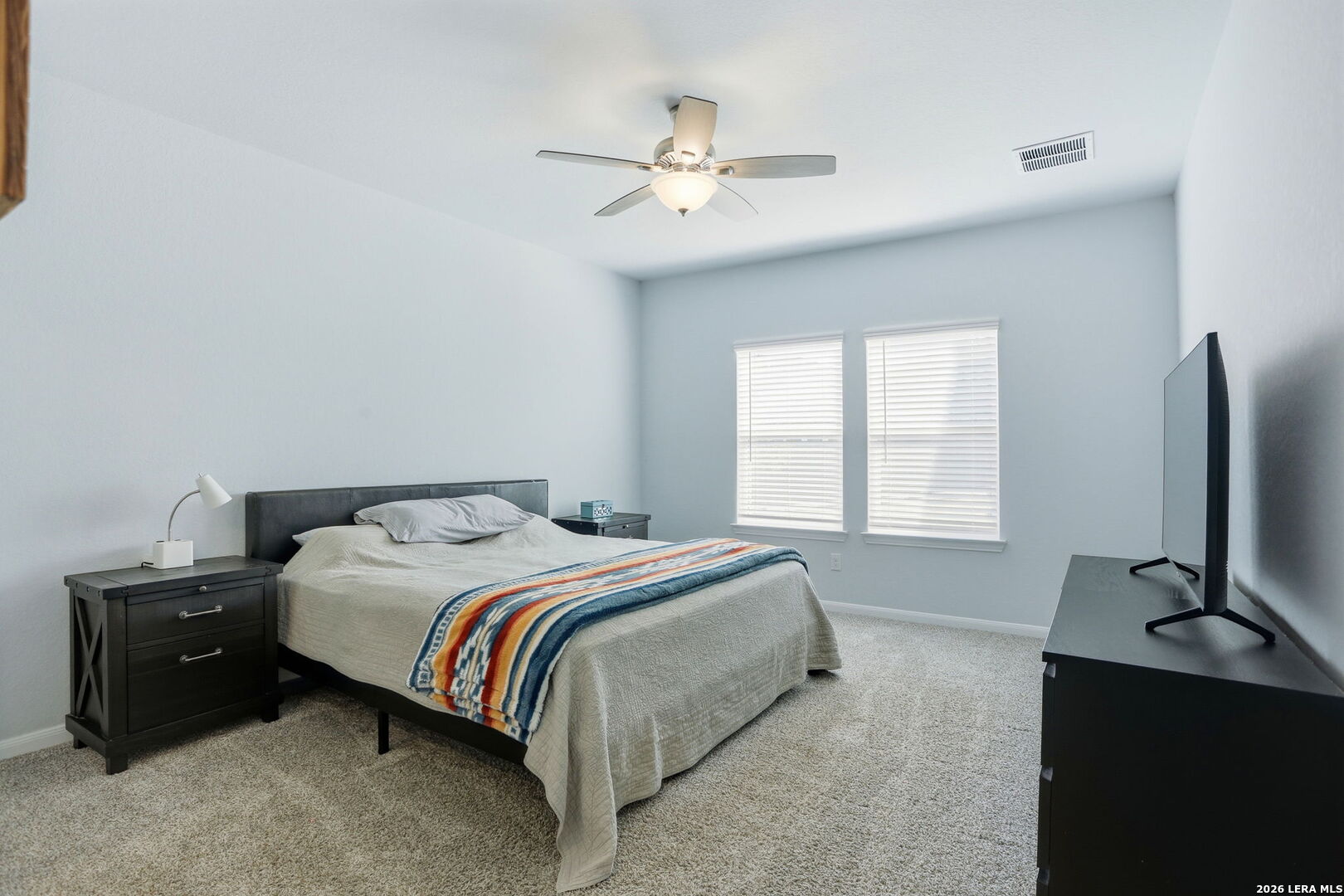Featuring a bright and open floorplan, 181 Josh Lane offers thoughtfully designed living spaces filled with natural light from stunning high-set windows that maintain privacy while illuminating the home. Eco-friendly tinted windows help reduce heat during the Texas summers, while an auxiliary air ventilation system cycles fresh air without running the full AC, improving overall air quality and efficiency. Upgraded wood-look tile flooring throughout the main level keeps the interior cool and stylish, and glass French doors add elegance to the dedicated office, creating a bright space ideal for working from home or a fitness area. The spacious primary suite and laundry room are conveniently located on the first floor, providing separation from the additional living spaces upstairs, while an upgraded banister enhances the open-concept design and allows light to flow between levels. Step outside to enjoy a spacious backyard designed with native, drought-resistant landscaping that is both beautiful and dog friendly. The oversized back patio includes a built-in west-facing sunshade, creating a comfortable space for outdoor relaxation or entertaining year-round. An oversized 21/2-car garage offers generous room for vehicles while still allowing additional storage or workspace. Located in a friendly and active community in San Antonio, the home is part of Medina Valley Independent School District, with a brand-new high school scheduled to open for the 2026-2027 school year along with a middle and elementary school within walking distance. Residents enjoy excellent neighborhood amenities including a dog park, basketball and pickleball courts, a playground, and a swimming pool. The location also provides convenient access to Joint Base San Antonio, Port San Antonio, and Chapman Annex, and is just minutes from H-E-B for everyday shopping.