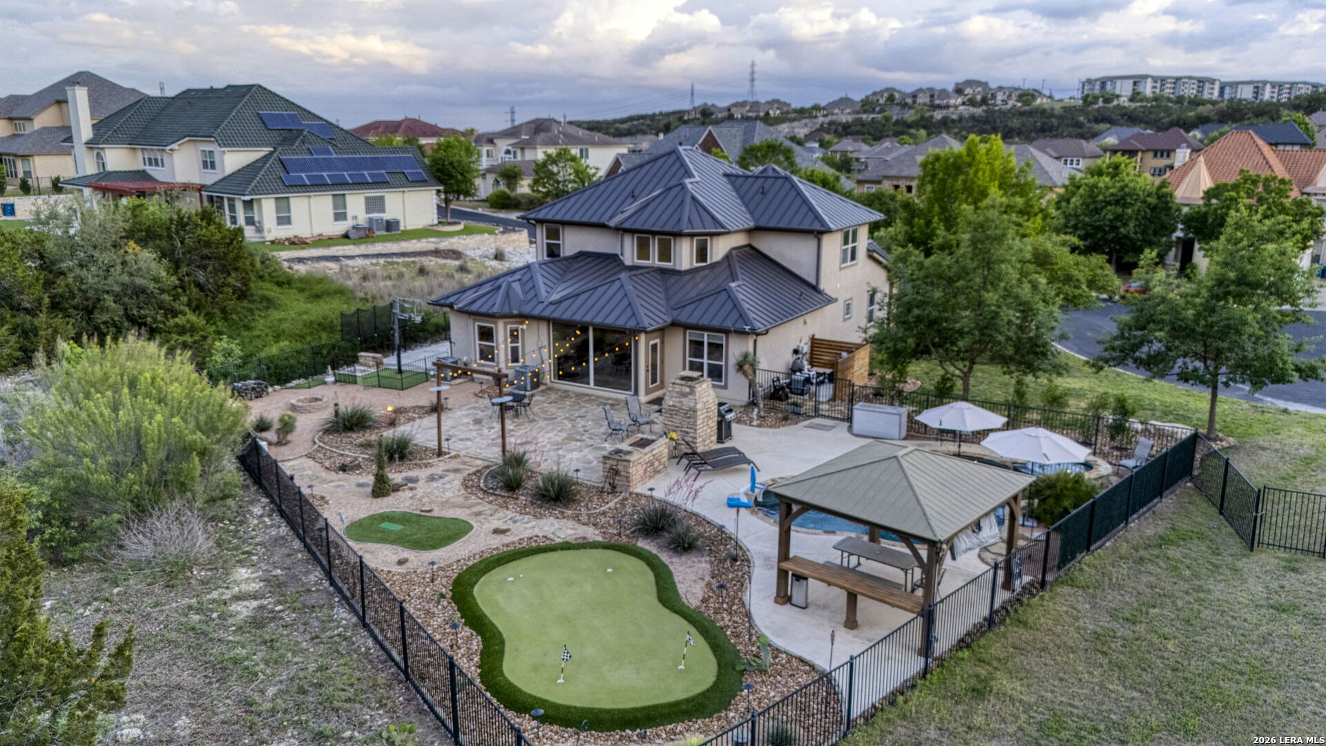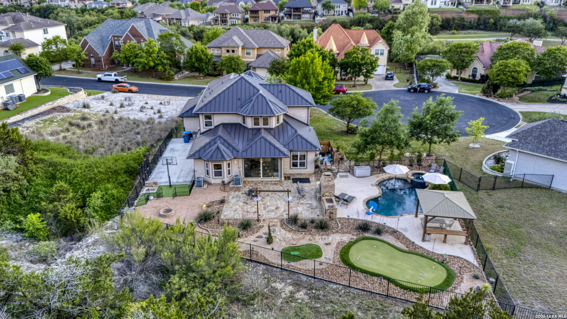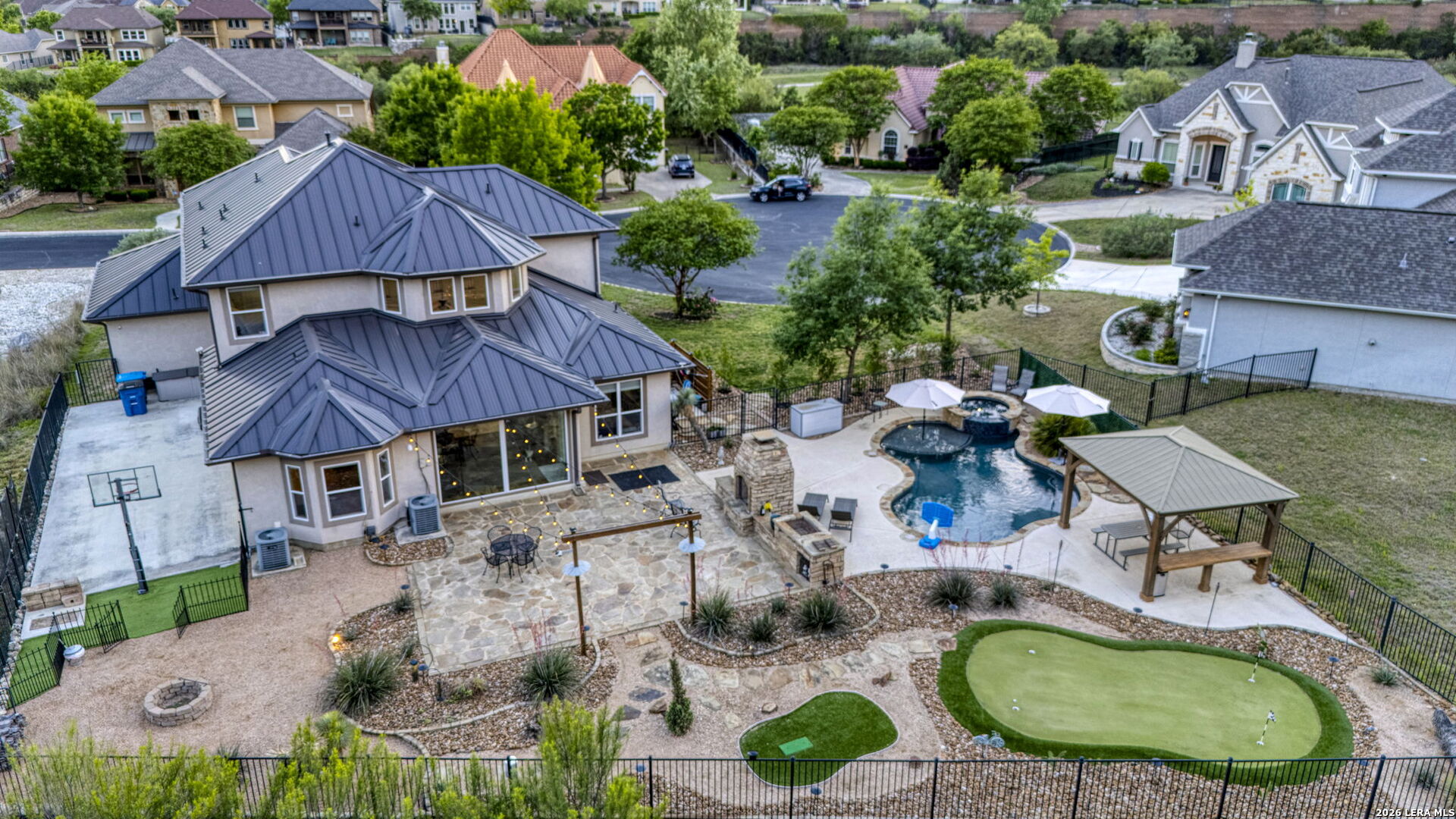 Gated Luxury Living with a Resort-style Backyard Unlike Any Other | Welcome to 18118 Resort View: it's as though they named the street with this home in mind. Tucked inside the prestigious, gated community of Sonoma Verde on a quiet cul-de-sac, this 4-bedroom, 3-bath masterpiece delivers over 3,000 square feet of refined living and a backyard experience that has to be seen to be believed. Step outside and you're instantly transported. More than 1,000 square feet of flagstone outdoor living surrounds a heated PebbleTec pool and spa, covered cabana with mounted TV & sound, brick fireplace, coal-fueled built-in grill, putting green, basketball court, and a private fire pit surrounded by a canopy of mature trees. Newly planted Cherry Laurel privacy hedges frame the pool with a xeriscaped rock garden and trellis, creating a lush, resort-level sanctuary with sweeping views and complete seclusion. The adjacent HOA-maintained xeriscaped lot adds an extra buffer of privacy and green space that simply can't be replicated. Inside, the open-concept design flows effortlessly from a chef's kitchen (featuring a gas cooktop, 42" cabinetry, stainless appliances, and a generous island) through the living and dining areas, and into a sun-drenched sunroom with tongue-and-groove wood ceiling and floor-to-ceiling windows. Hill country rock adorns all four exterior elevations, and the views of your private oasis greet you the moment you walk through the door. The main-level primary suite is a true retreat, offering spa-inspired privacy with a soaking tub and walk-in shower. A second main-level guest room also has access to a full bath, just perfect for guests. Upstairs a sprawling game room anchors two additional bedrooms and a full bath, ideal for multigenerational living or hosting. Recent upgrades elevate this home further: LifeProof carpet with premium 1/2" pad on the stairs and throughout the upper level, water softener replaced (2025), and an upgraded security system for added peace of mind in this exquisite oasis. The oversized 3-car garage (extra-wide, extra-deep, and exceeding 700 square feet) now features a fresh high-end epoxy floor, new overhead motion-sensing LED lighting, and 112 square feet of overhead storage. It's a car enthusiast's or hobbyist's dream. Schedule your showing today! 4 BR | 3 BA | 3,071 sq ft | 700+ sq ft Garage | Gated | Cul-de-Sac | Sonoma Verde Luxury. Privacy. Location. Schedule your private showing today.