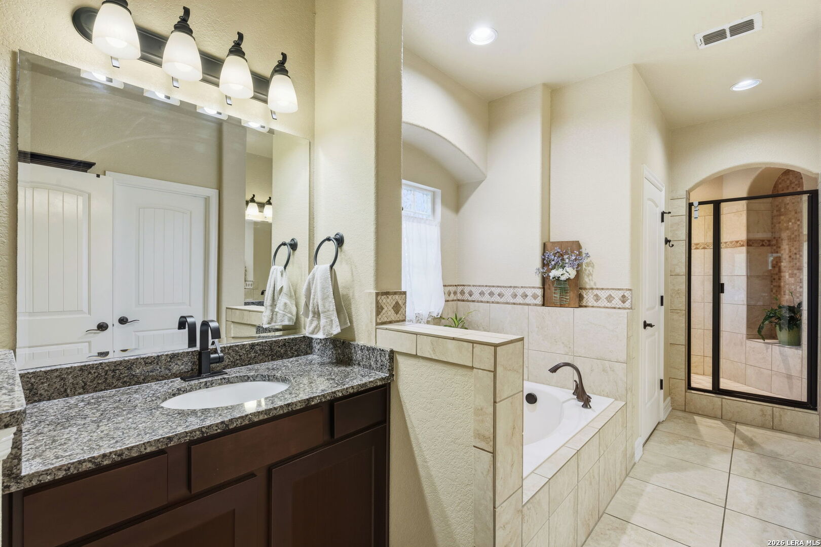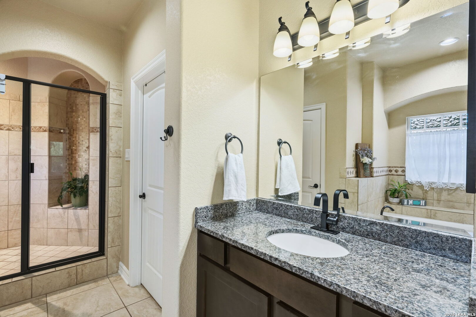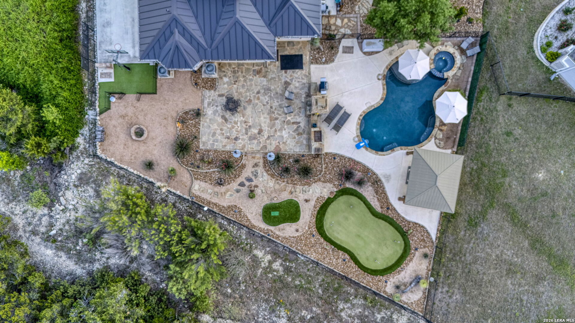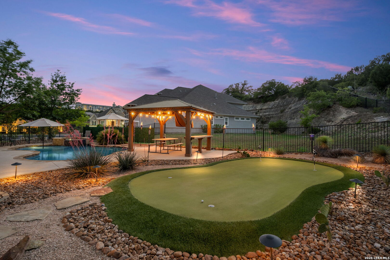 Gated Luxury Living with a Resort-style Backyard Unlike Any Other | Welcome to 18118 Resort View: it's as though they named the street with this home in mind. Tucked inside the prestigious, gated community of Sonoma Verde on a quiet cul-de-sac, this 4-bedroom, 3-bath masterpiece delivers over 3,000 square feet of refined living and a backyard experience that has to be seen to be believed. Step outside and you're instantly transported. More than 1,000 square feet of flagstone outdoor living surrounds a heated PebbleTec pool and spa, covered cabana with mounted TV & sound, brick fireplace, coal-fueled built-in grill, putting green, basketball court, and a private fire pit surrounded by a canopy of mature trees. Newly planted Cherry Laurel privacy hedges frame the pool with a xeriscaped rock garden and trellis, creating a lush, resort-level sanctuary with sweeping views and complete seclusion. The adjacent HOA-maintained xeriscaped lot adds an extra buffer of privacy and green space that simply can't be replicated. Inside, the open-concept design flows effortlessly from a chef's kitchen (featuring a gas cooktop, 42" cabinetry, stainless appliances, and a generous island) through the living and dining areas, and into a sun-drenched sunroom with tongue-and-groove wood ceiling and floor-to-ceiling windows. Hill country rock adorns all four exterior elevations, and the views of your private oasis greet you the moment you walk through the door. The main-level primary suite is a true retreat, offering spa-inspired privacy with a soaking tub and walk-in shower. A second main-level guest room also has access to a full bath, just perfect for guests. Upstairs a sprawling game room anchors two additional bedrooms and a full bath, ideal for multigenerational living or hosting. Recent upgrades elevate this home further: LifeProof carpet with premium 1/2" pad on the stairs and throughout the upper level, water softener replaced (2025), and an upgraded security system for added peace of mind in this exquisite oasis. The oversized 3-car garage (extra-wide, extra-deep, and exceeding 700 square feet) now features a fresh high-end epoxy floor, new overhead motion-sensing LED lighting, and 112 square feet of overhead storage. It's a car enthusiast's or hobbyist's dream. Schedule your showing today! 4 BR | 3 BA | 3,071 sq ft | 700+ sq ft Garage | Gated | Cul-de-Sac | Sonoma Verde Luxury. Privacy. Location. Schedule your private showing today.