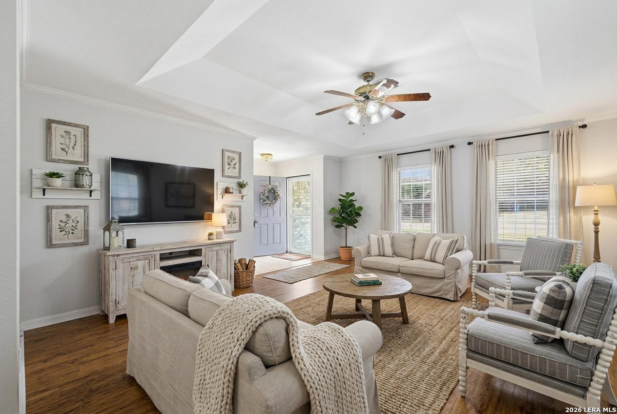 **Virtually Staged** Voluntary HOA, RV parking!This well-maintained single-story home is ideally situated on a corner lot in the heart of an established neighborhood known for its mature shade trees and spacious homesites. Set on an expansive 0.36-acre lot, the property offers both privacy and room to enjoy. Upon entry, you are welcomed into a generous living area that flows seamlessly into the dining space-ideal for everyday living and entertaining. The expansive kitchen opens to a dedicated breakfast area, providing ample space for gatherings. A split-bedroom floor plan ensures added privacy for the primary suite. Additional highlights include a three-car garage, a secondary driveway with RV parking, and a screened-in back porch-perfect for relaxing in a quiet, shaded setting. The oversized backyard offers abundant space for outdoor entertaining and includes a storage shed for added convenience. The location provides easy access to shopping, dining, schools, and parks. Fischer Park is approximately 0.8 miles away, and Hoffmann Park-which connects to a walking trail-is just 0.3 miles away. Move-in ready and ideally located, this home offers space, functionality, and convenience in one exceptional package.