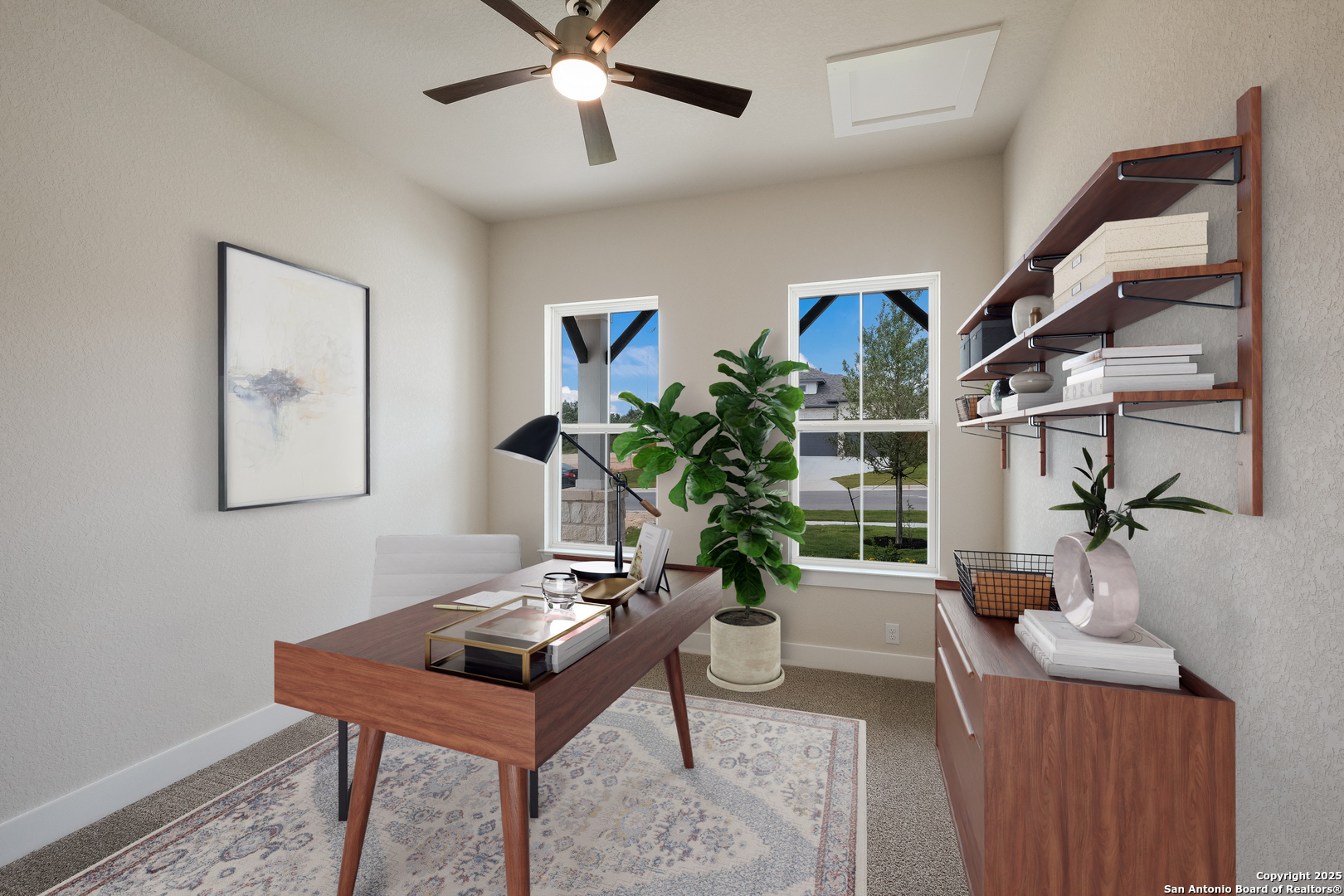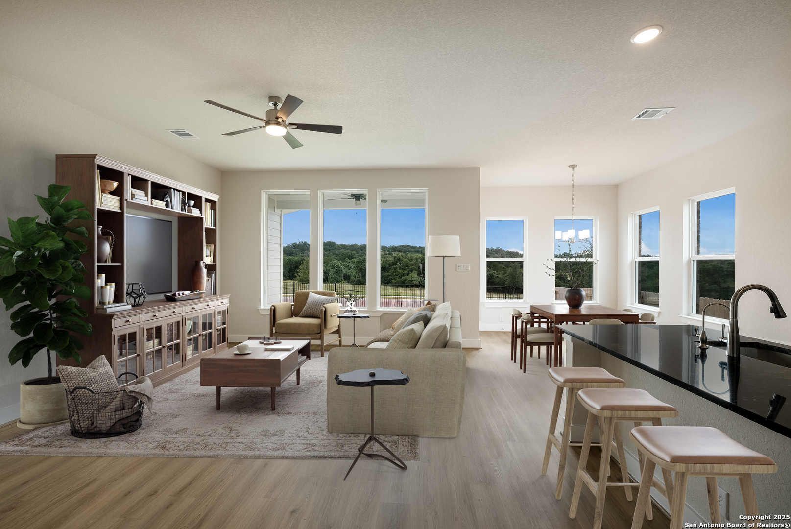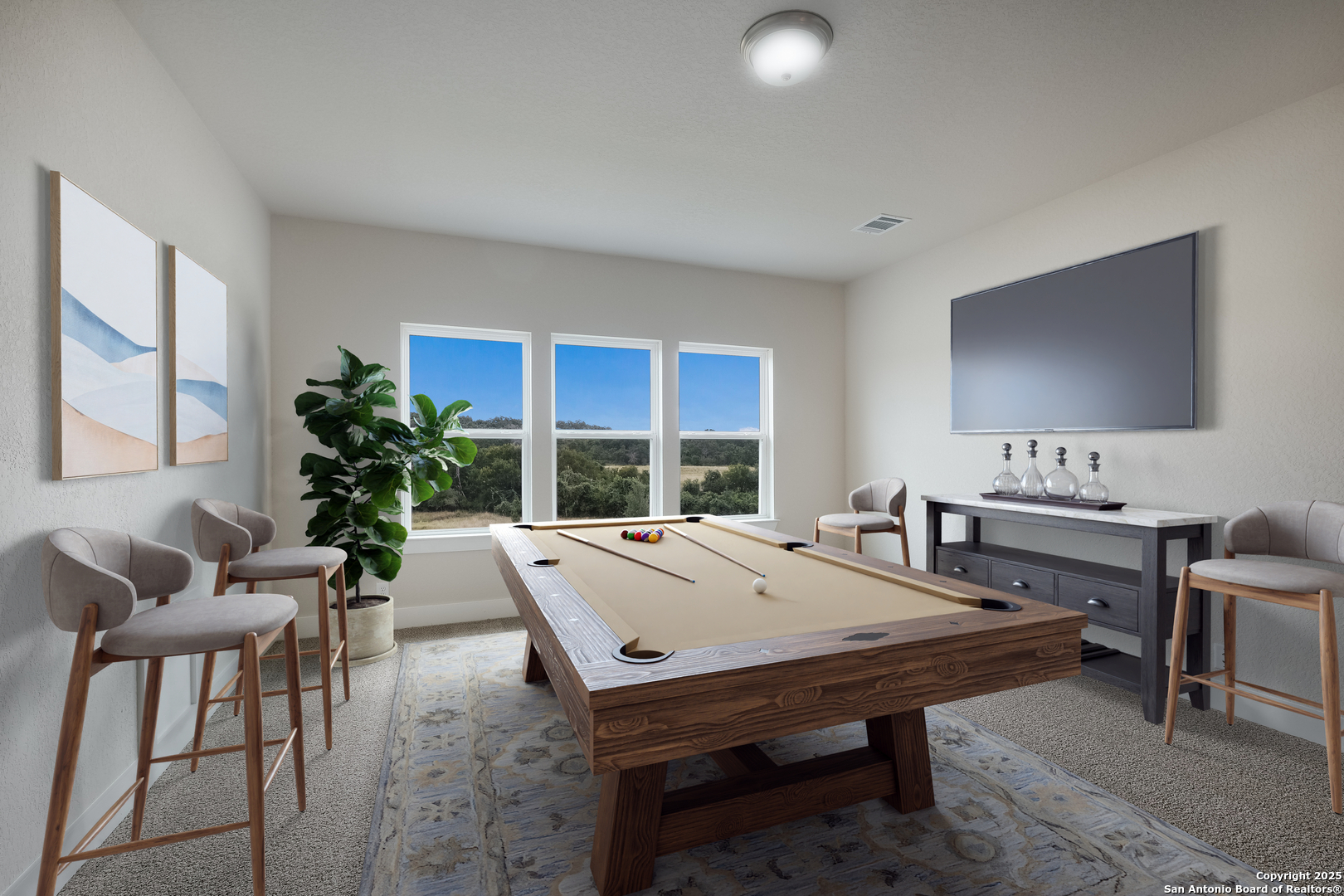 ** MOVE-IN READY! ** LOW RATE AVAILABLE ** Welcome to your stunning new home in the master planned community of Meyer Ranch in New Braunfels, Texas! This two-story home boasts a beautiful hill country exterior elevation with a charming front porch, creating a warm and inviting atmosphere. As you enter this spacious home, you'll find a primary bedroom on the main floor, complete with bay windows that fill the room with natural light. The primary bedroom also features a luxurious soaking bathtub, perfect for unwinding after a long day, and a convenient walk-in shower. Additionally, there is a guest bedroom on the main floor, providing a comfortable space for your visitors. Venturing upstairs, you'll discover three more bedrooms, ideal for family members or guests, as well as a game room that offers endless opportunities for entertainment and relaxation. The home boasts a total of five bedrooms, providing ample space for everyone in the family. The two and a half car garage provides plenty of space for your vehicles and extra storage. Whether you have a growing family or simply enjoy having space for hobbies and projects, this garage will accommodate your needs. Inside the home, the design selections showcase a stylish color palette of white, grey, and black, creating a modern and sophisticated ambiance. The gas cooking in the kitchen adds a touch of luxury and convenience for your culinary endeavors. Located in the esteemed Meyer Ranch community, you'll have access to a range of amenities, including parks, trails, and community events. With its ideal location in New Braunfels, you'll be able to enjoy the best of both worlds - a peaceful, suburban retreat and easy access to the vibrant city life. Your new home is the perfect blend of elegance, functionality, and comfort. It offers ample space for your family to grow and create lasting memories. Congratulations on finding your dream home in Meyer Ranch!