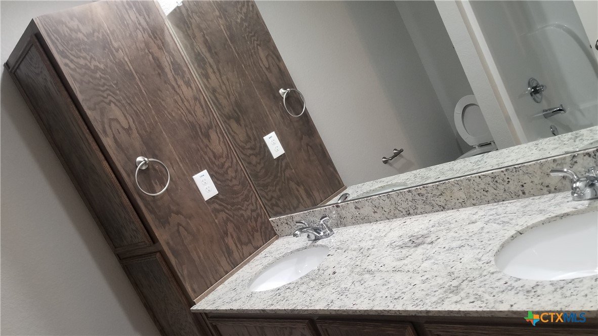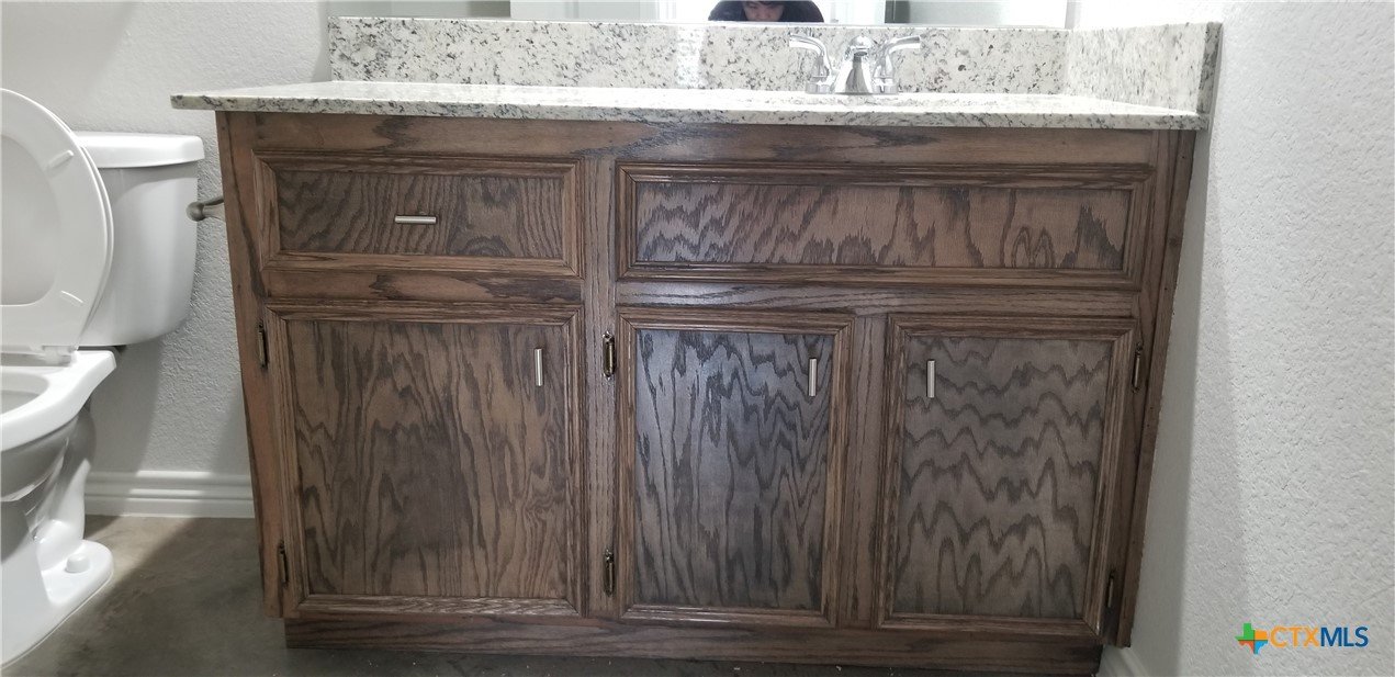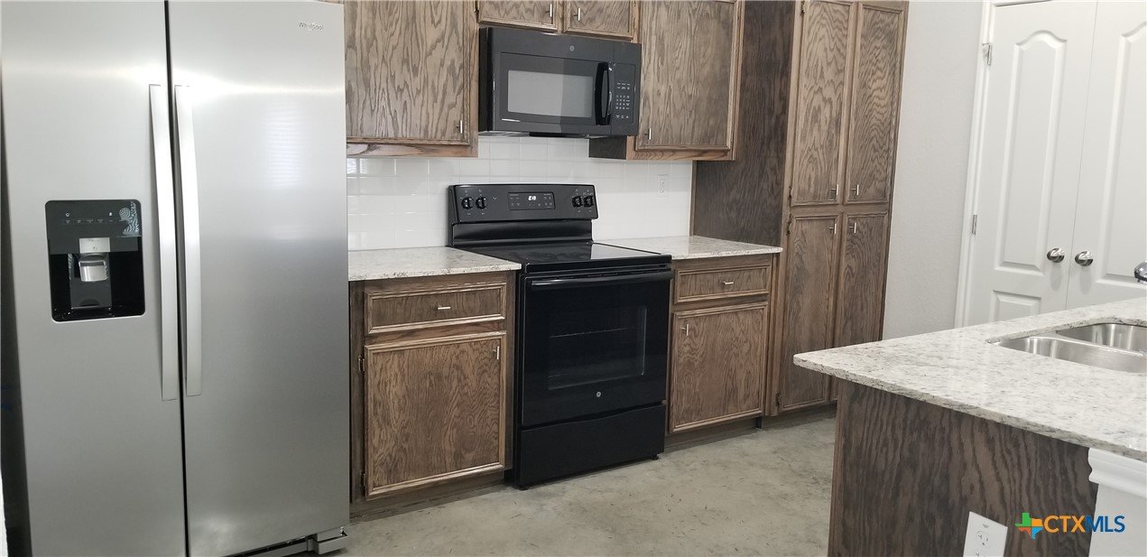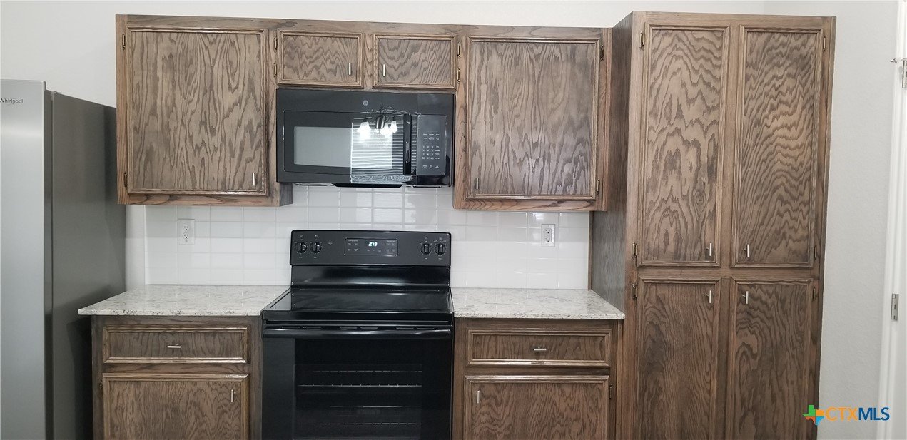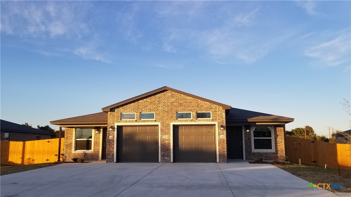 MODERN NICE DUPLEX is located newly developed quite and DESIRABLE area in Harker Heights. 3 bed 2 bath unit features polished concrete floors, beautiful glossy GRANITE countertops, open floor plan, and vaulted ceilings that work together to create a sophisticated and modern living space. The kitchen is fully equipped with stainless steel appliances from GE and a side by side fingerprint resistant stainless refrigerator from Whirlpool. The sleek black cooktop is surrounded by chic white subway tile backsplash. The large master suite has an enormous walk-in closet, granite double vanities. A private garage for one car with automatic openers. Privacy wood fenced, spacious side and back yard, flowerbed and a cedar oak tree, Sprinkler system throughout whole yard. AVAILABLE NOW!