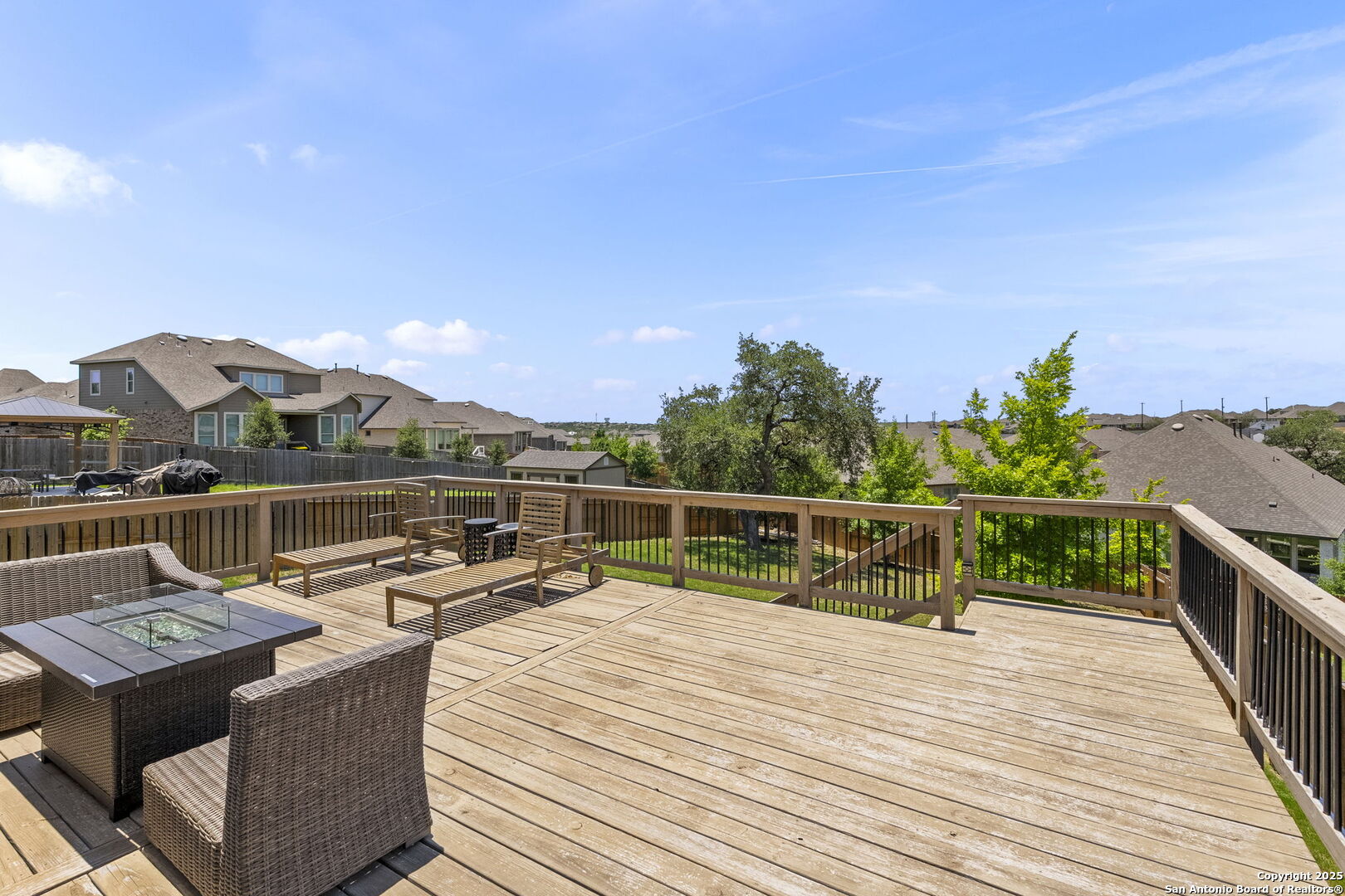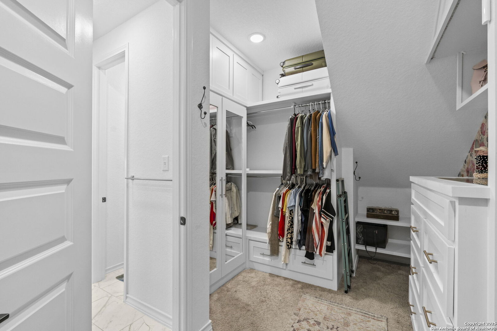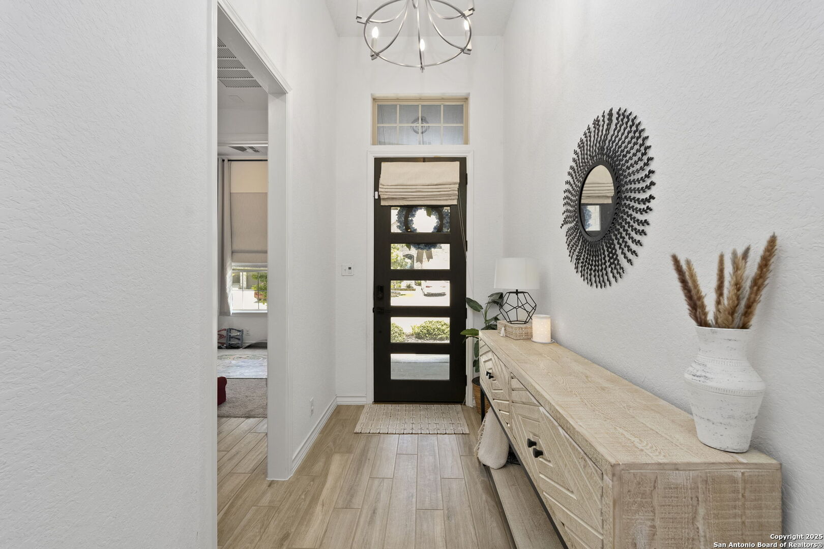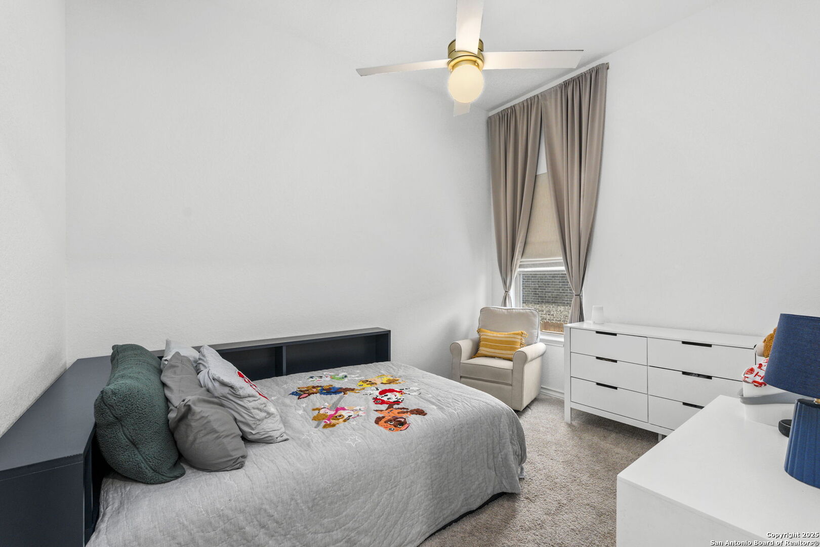 Luxury, comfort, and thoughtful design converge in this beautifully enhanced 1.5-story HIGHLAND home on one of the LARGEST lots in Fronterra at Westpointe. Featuring a 4-sided brick exterior, 3-car garage, and fully paid-off solar system, this home sits on a spacious 1/3-acre lot and offers incredible indoor-outdoor living. Step inside to soaring 12-foot ceilings, wood-look tile floors, and an inviting open layout anchored by a stunning fireplace. The dedicated office with French doors is perfect for remote work, while the chef's kitchen impresses with white upper cabinets, warm tan base cabinetry, quartz countertops, stainless steel appliances, a gas cooktop, and a massive island ideal for entertaining. The primary suite is a true retreat with tall windows, a spa-like bath featuring an oversized shower and soaking tub, and a custom walk-in closet. Downstairs includes 4 bedrooms and 3 full baths with an office! While upstairs features a private guest suite and game room accessed via a wrought-iron staircase-perfect for multigenerational living. Additional upgrades include a water softener, tankless water heater, built-in garage cabinetry, dual A/C units, and an automatic sprinkler system. Enjoy evenings on the large covered patio or take advantage of HOA amenities like a pool, playground, and clubhouse. Ideally located near Loop 1604, top-rated schools, and premier shopping and dining-this home blends elegance and convenience in one exceptional package. ASSUMABLE LOAN AT 2.87 INTEREST RATE!! You can contact the lender to see if you qualify!