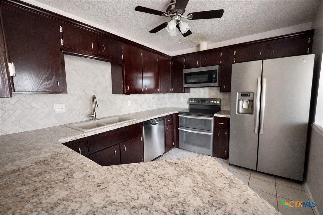 Welcome to Your Cozy Central Texas Retreat! Step into charm and comfort with this beautifully maintained 3 bedroom, 2 bath home that's move in ready and packed with updates! As you enter, you're greeted by a warm and inviting living space centered around a classic wood burning fireplace, perfect for cozy evenings or relaxed entertaining. The kitchen is a standout with herringbone tile backsplash, under cabinet lighting, stainless steel appliances including a double oven range, and a side by side refrigerator. Two arched pass throughs create an open feel and easy flow to the dining area, while abundant cabinetry and counter space make meal prep a breeze. Unwind in the spacious owner’s suite featuring French door entry and a walk in closet. Secondary bedrooms offer ceiling fans and generous closet space, ideal for guests, kids, or a home office. Calling all DIYers and hobbyists, the garage is equipped with cabinets and workbenches ready to support your next project. Outside, enjoy an oversized covered patio made for BBQs, morning coffee, or hosting under the Texas sky. Energy efficient windows add comfort and savings, making this home the perfect blend of style, practicality, and location.