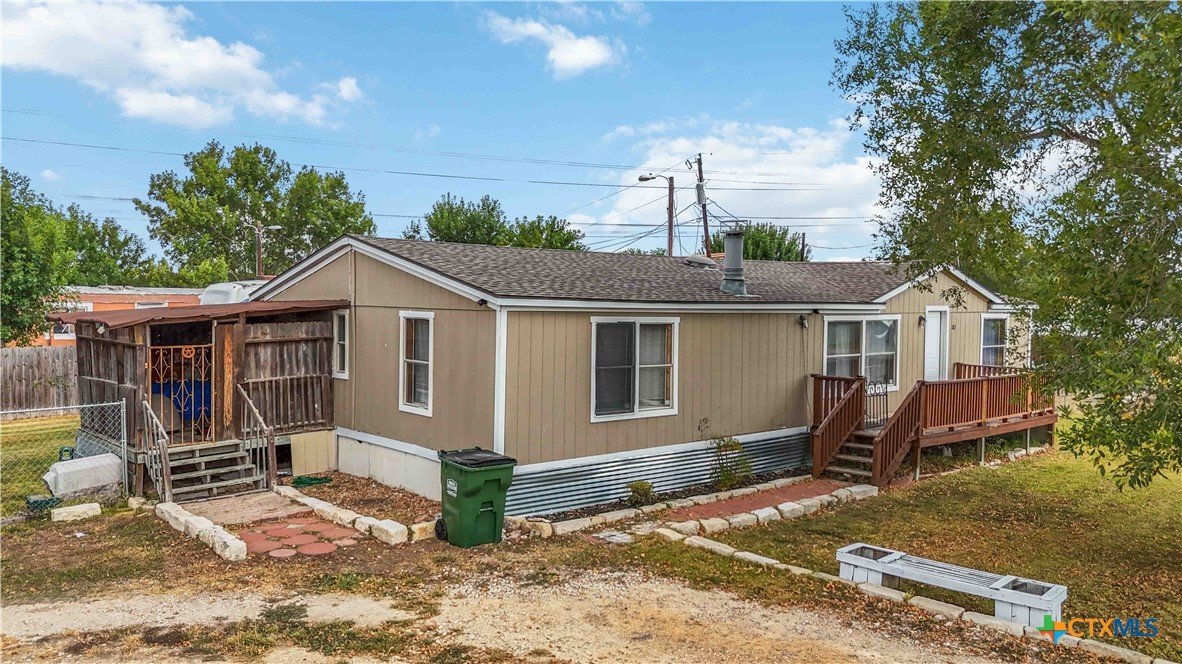 Seller is willing to help buyer with incentives!! No HOA! Corner Lot!! Perfect for Residential Living – Investor-Friendly! This spacious doublewide manufactured home offers flexibility for both savvy investors and those seeking peaceful country living just minutes from the city. Located just outside city limits with NO HOA, this property presents the ideal blend of privacy, convenience, and potential. Key Features: Situated on a sizable lot with mature trees providing natural shade and privacy, wood burning fireplace and half of the property is fenced, including a partially fenced backyard, perfect for pets or added security. Large shed offers ample storage. Relax outdoors on the front porch, or entertain guests in the backyard with a fire pit ready for cool evenings. Convenient location—just a short drive to the Outlet Malls, Target, dining, schools, entertainment, and Texas State University Whether you're looking for a primary home with space to grow or an income-producing rental property, this one checks all the boxes.