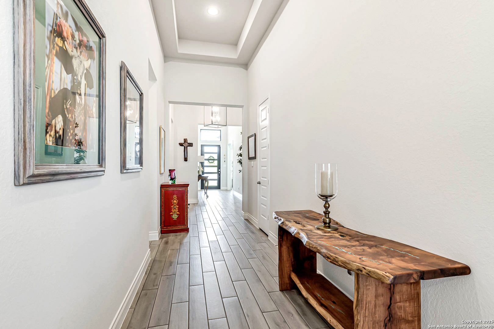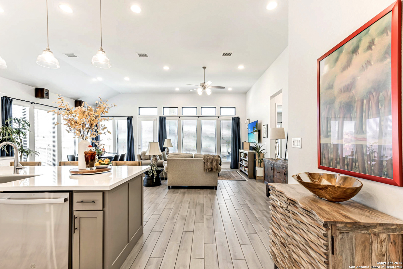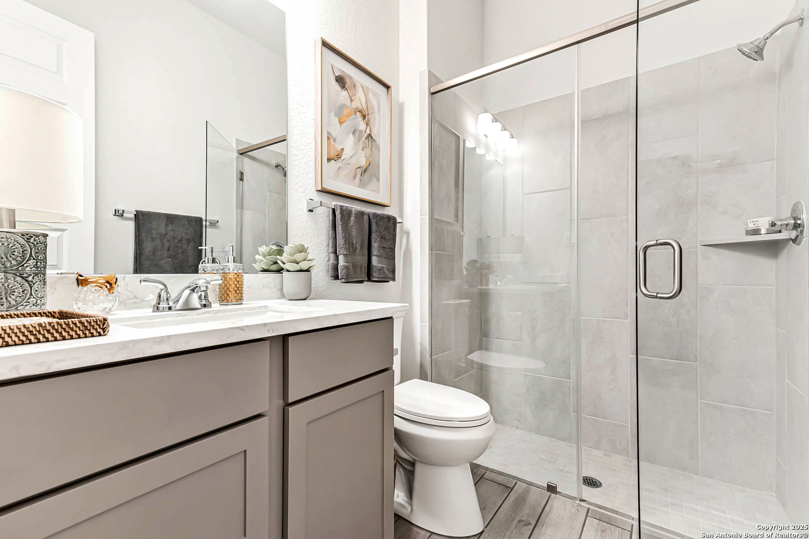 ***OPEN HOUSE SAT & SUN 11/22 & 11/23 11am-2pm*** Stunning 2024 Perry home in the Meadows at Ventana. Nestled in the serene hill country this home offers the perfect blend of modern luxury and peaceful living. This 2024-built, better-than-new home features 4 spacious bedrooms, 3 beautifully appointed bathrooms, and a 3-car garage - all situated on a desirable cul-de-sac lot with no neighbor to the west. Step inside to discover an open, airy floor plan with soaring high ceilings and abundant natural light streaming in from an array of windows. The expansive living spaces are perfect for both relaxing and entertaining. Whether you're hosting guests or enjoying family time, the flow from room to room is seamless, and every corner of this home feels bright and inviting. The kitchen is a true chef's delight, boasting top-of-the-line finishes and plenty of counter space for meal prep. Outside, the xeriscaped (20K invested in landscaping in rear and side yards) back and side yards offer easy maintenance and an eco-friendly design, complete with drip irrigation for low water usage. You'll love the tranquility of the outdoor space, ideal for relaxing or enjoying the beauty of the hill country. All of this plus the latest smart-home features, alarm system with sensors throughout, tank-less water heater, surround sound wiring and much more. Enjoy the peace of mind that comes with no city taxes while still being close to all the conveniences you need. With easy access to Highway 46 and 281, you're just minutes away from shopping, dining, and more, yet you'll feel miles away from the hustle and bustle.