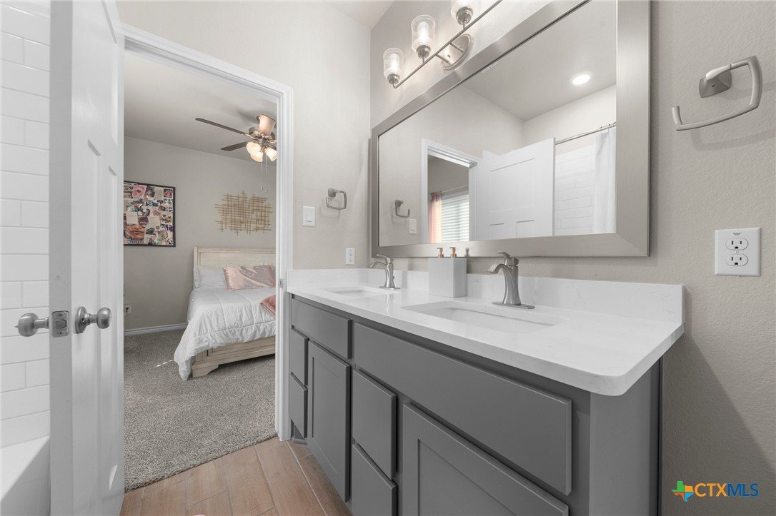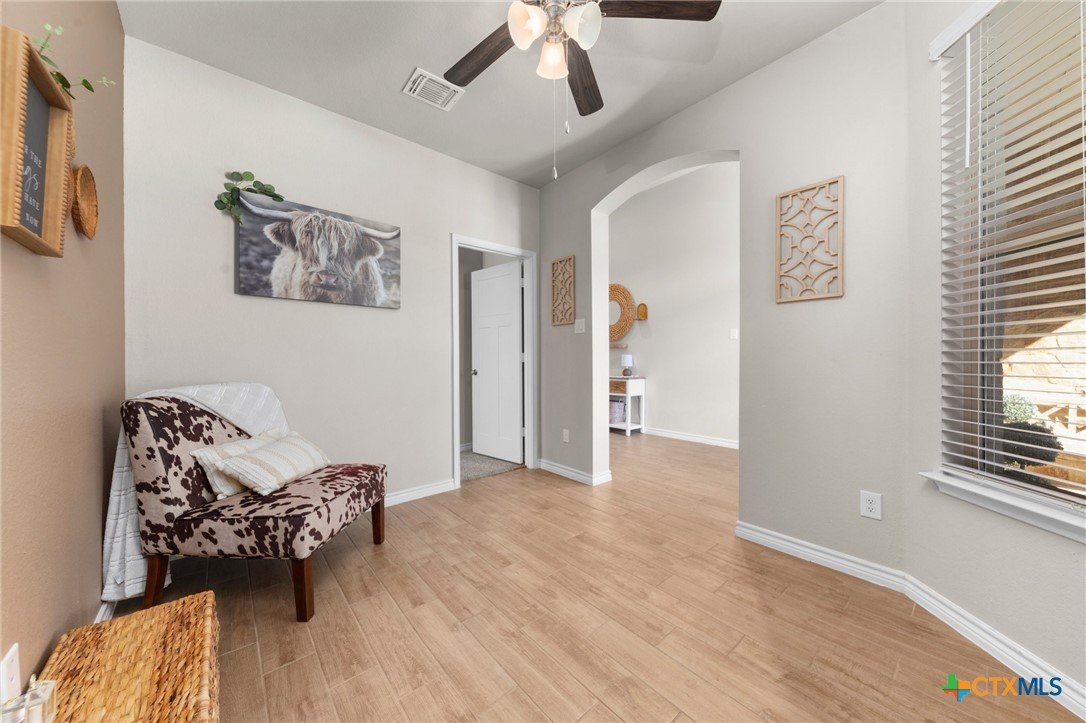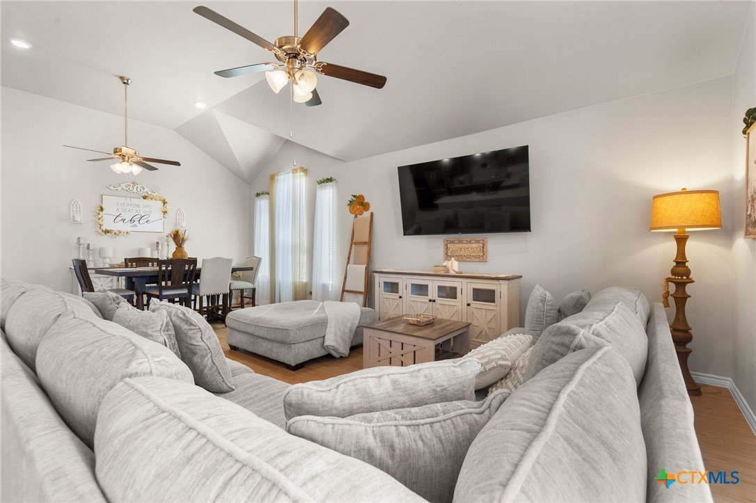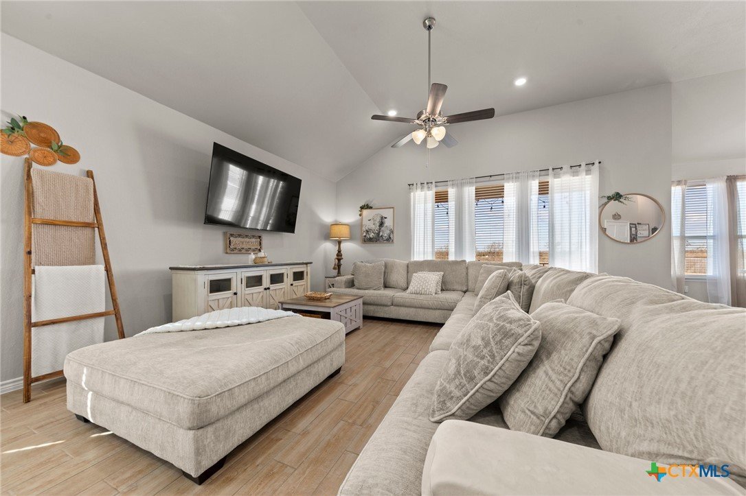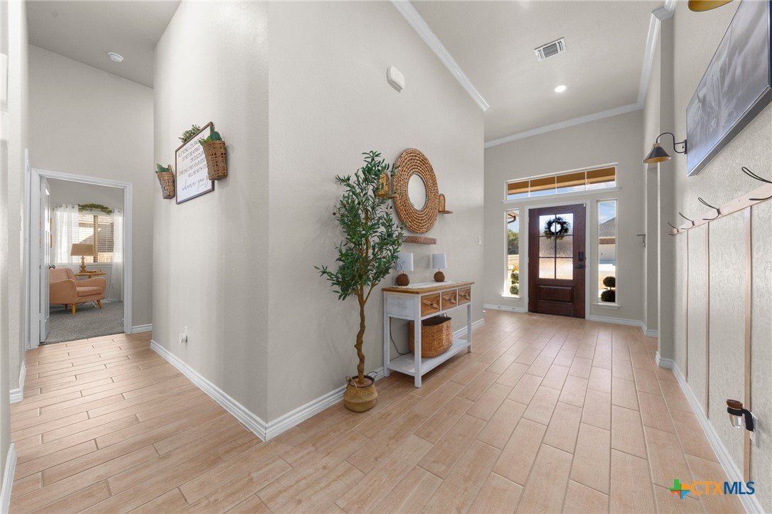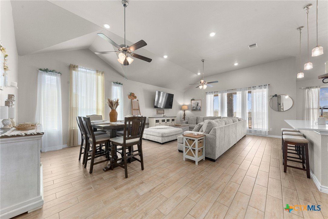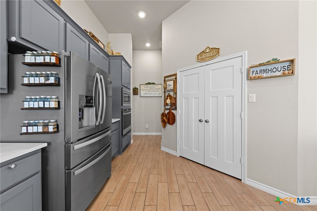 No direct backyard neighbors & recently replaced impact resistant roof and gutters ensure low maintenance for years to come. Golf-Cart friendly municipality & only minutes from the Course. As you enter this exceptional home, you're greeted by a stunning open-concept design, where the living, kitchen, and dining spaces seamlessly blend together for easy entertaining. The kitchen is a showstopper; featuring a built-in oven/microwave combination, glass cook top, modern cabinetry, quartz countertops, and a chic herringbone backsplash. The expansive island with a breakfast bar is perfect for hosting gatherings, while stainless steel appliances and ample storage provide both beauty and practicality. In the main living space, the extra high ceilings and large windows allow natural light to flood the area, highlighting the gorgeous wood-look tile floors that extend throughout the main living areas. The spacious kitchen-dining area sits under elegant lighting, with panoramic views of your peaceful backyard. Step into the hypoxy-coated 3-car garage, designed to keep your vehicles and belongings in a pristine environment. The spacious yard is fully enclosed with a high-end wrought iron fence, offering both security and style. With scenic views of serene fields and no rear neighbors, you'll have the tranquility and privacy you've always dreamed of. With all these features and upgrades, this home offers exceptional value and luxury. Schedule your private tour today and see what makes this property truly special!