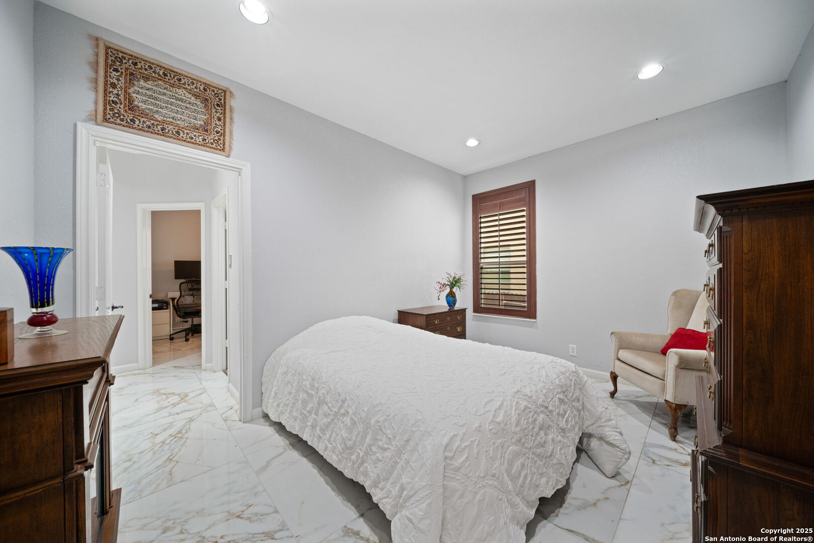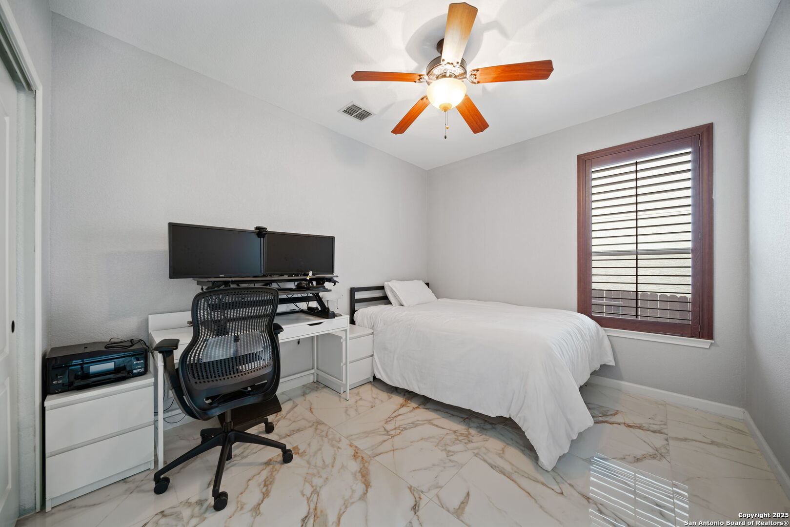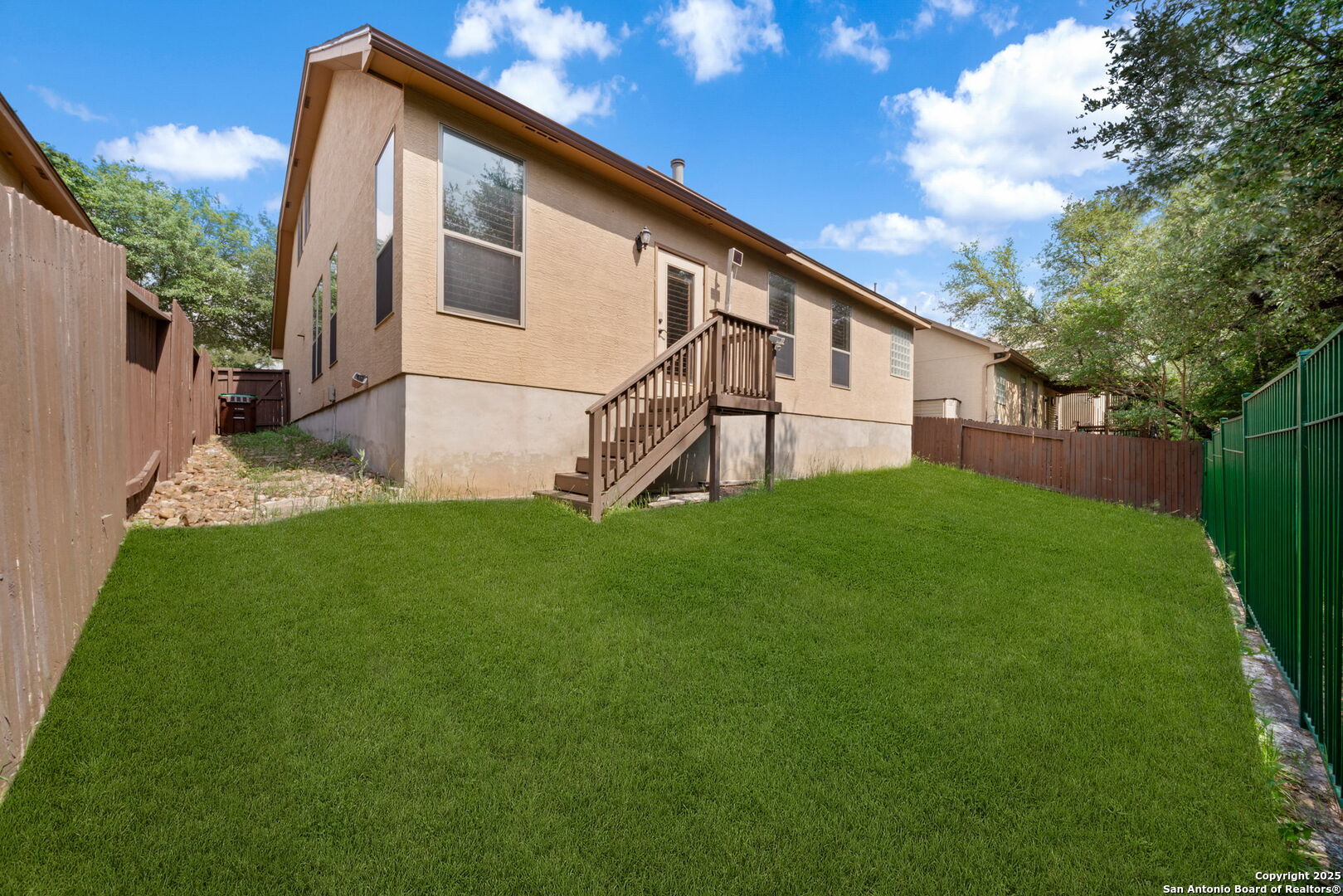 Welcome to your dream home! A true sanctuary in the heart of Bulverde Gardens, where modern living meets tranquil surroundings. This stunning 5-bedroom, 3-bath home offers a unique opportunity to own a property that backs up to a serene greenbelt, providing the ultimate in privacy and peace. Homes like this are a rare find in this highly sought-after neighborhood, making this one an opportunity you won't want to miss. As you step inside, you're greeted by an open and inviting floor plan that seamlessly connects the kitchen, dining, and living areas. The kitchen is a chef's dream, featuring granite countertops and an abundance of space for cooking and entertaining with a walk in pantry. High ceilings and a tray ceiling in the living area create a sense of grandeur and elegance, perfectly accentuated by the marble flooring and modern paint palette. The thoughtfully designed layout includes the primary suite and two additional bedrooms on the main level, ensuring convenience and privacy for the homeowner. Upstairs, you'll find two generously sized bedrooms, one of which can easily serve as a game room, media room, play area, or loft, offering incredible flexibility for your lifestyle. Storage, Storage, Storage! With ample closet space throughout, this home is as practical as it is beautiful. Recent upgrades make this property even more desirable, including a brand-new roof ($32,000) installed in September 2024 and freshly laid sod for a vibrant and welcoming outdoor space. All appliances in kitchen are less than 3 years old! Ceiling fans less than 2 years old! Imagine stepping into your backyard to feed the deer that frequently visit the lush greenbelt-an experience that truly sets this home apart. Located just minutes from Loop 1604, this home offers a quick and easy commute to US Highway 281 and IH-35, making it convenient for work, shopping, and leisure activities. Nearby, you'll find a variety of local eateries, HEB, and other amenities, all while enjoying the peace of mind that comes with secured access to this exclusive community. Bulverde Gardens is renowned for its serene atmosphere, and this home is no exception. Whether you're relaxing in your tranquil backyard oasis or enjoying the natural beauty of the surrounding area, this property is designed for comfort and peace of mind. Schedule your tour today and discover how 18211 Dogwood Path offers the perfect balance of privacy, convenience, and elegance. This home is a rare find that delivers not just a place to live, but a lifestyle to cherish.