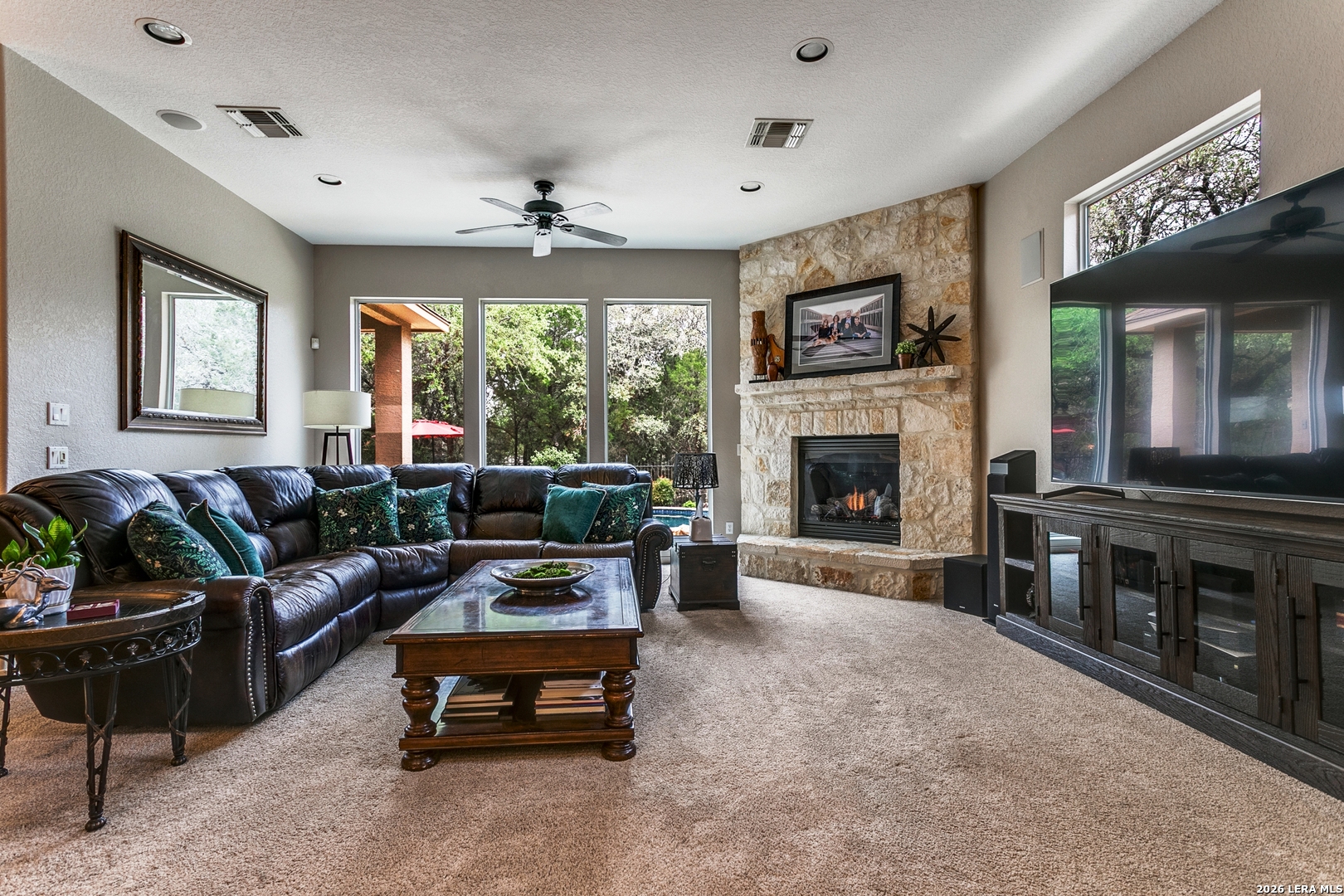 Welcome to this exceptional main-level living home, perfectly situated on a generous 0.35-acre greenbelt cul-de-sac lot within a sought-after gated community. Offering 3,917 square feet of thoughtfully designed space, this residence features 4 bedrooms, 4.5 bathrooms, a private office, and an oversized 2-car garage with ample room for storage. Designed for both comfort and entertaining, the open-concept floor plan showcases expansive living areas filled with natural light. The primary suite and all main living spaces are conveniently located on the first floor, providing ease and functionality for everyday living, while a dedicated office creates the perfect work-from-home environment. Upstairs, a spacious bonus room offers incredible flexibility-ideal for a media room, game room, or guest retreat. Step outside to your own private backyard oasis, complete with a sparkling pool and plenty of space to relax or entertain. Located Just outside Loop 1604 it is 2 minutes to HEB and the Bulverde Place shopping center. Residents of Emerald Oaks enjoy an array of amenities, including scenic walking trails, tennis and pickleball courts, a basketball court, and a neighborhood pool-perfect for an active lifestyle. Located within highly desirable NEISD schools, this home combines luxury, convenience, and top-tier education. A rare opportunity to own a beautifully appointed home in a premier location