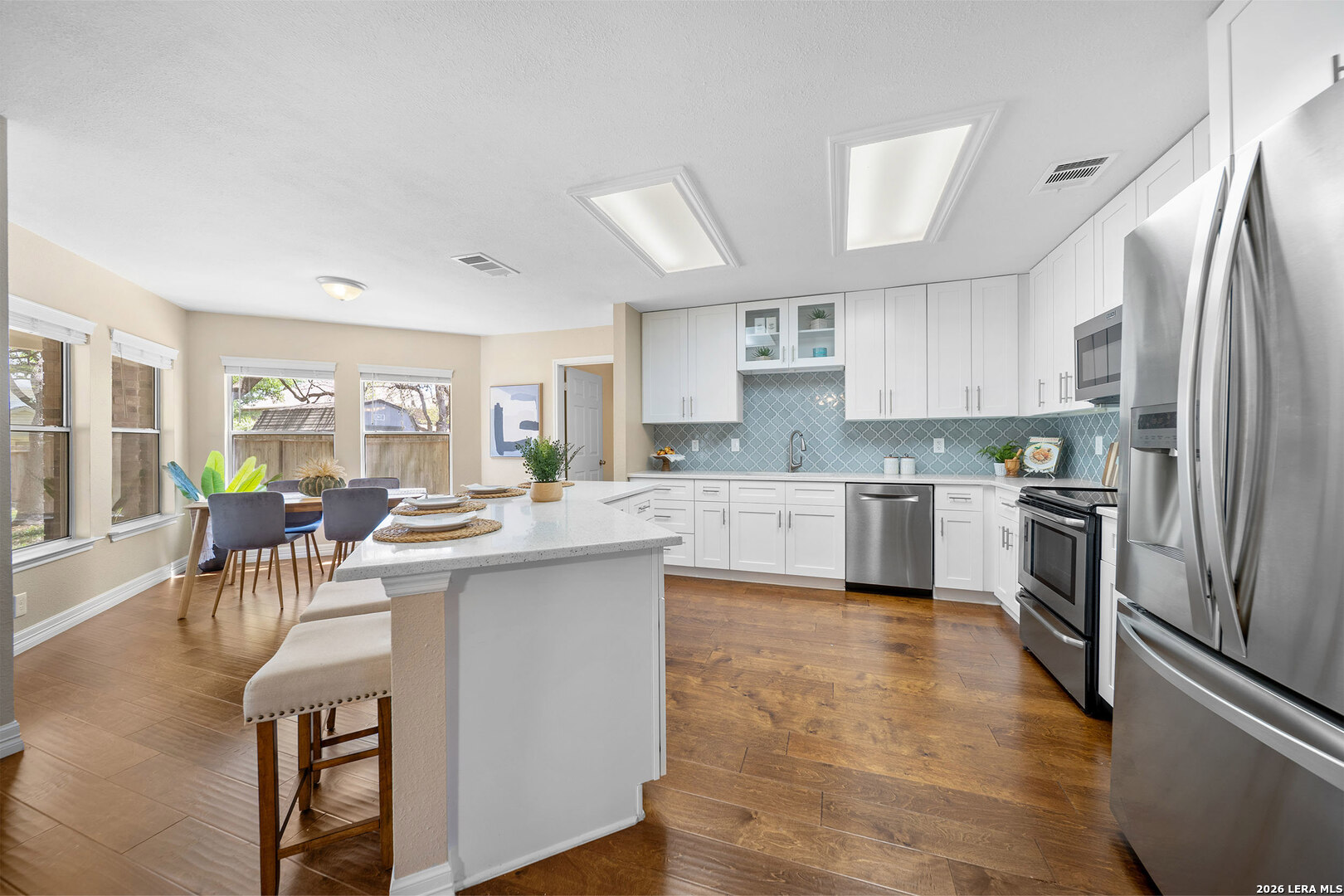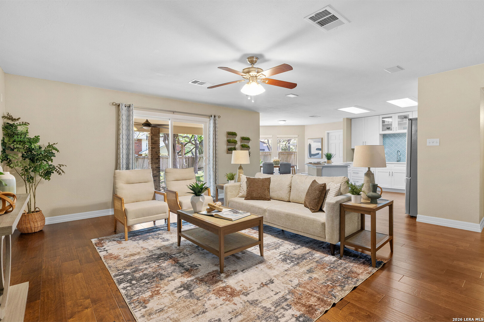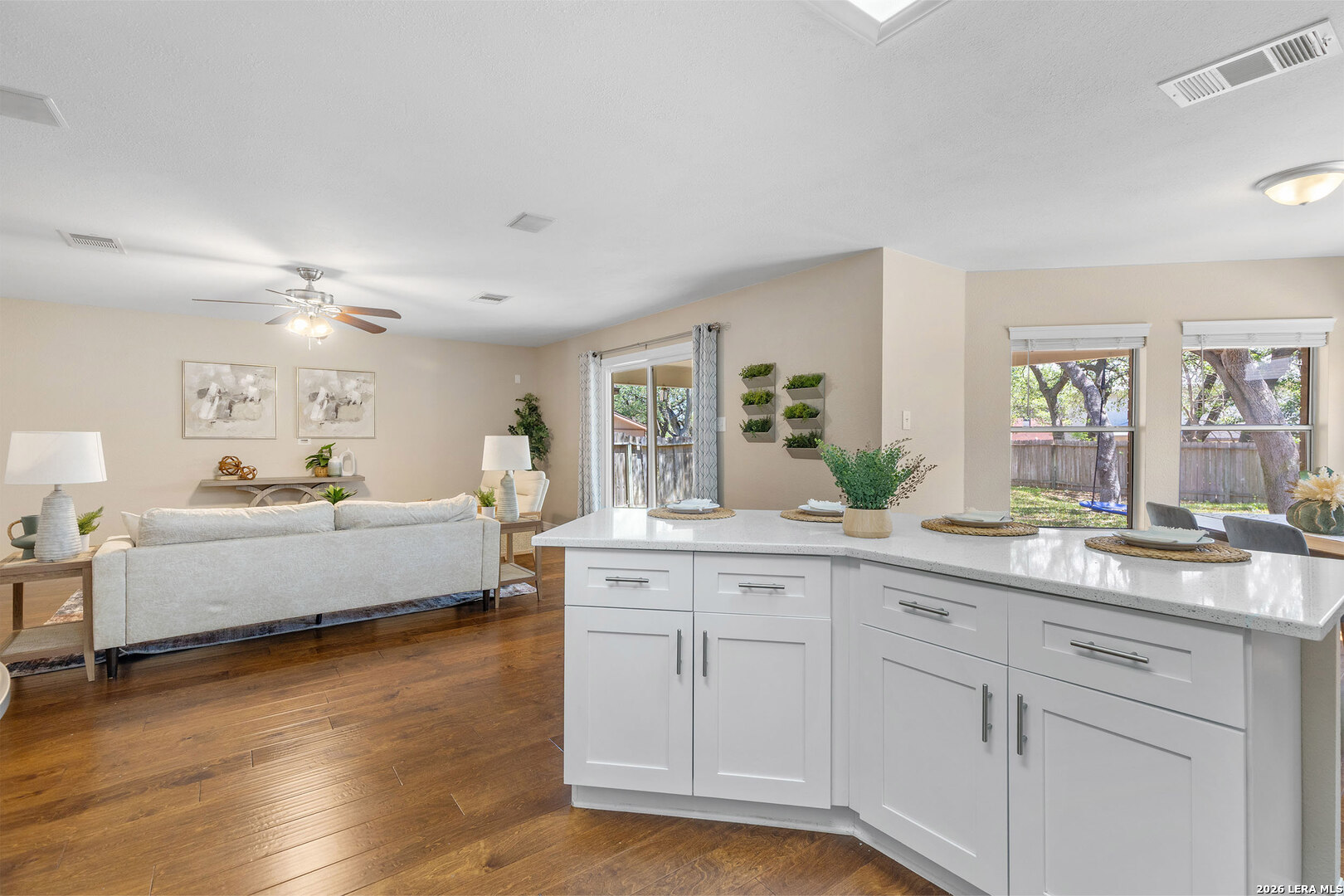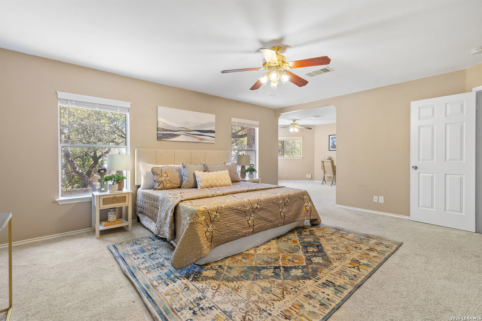 Location, lifestyle, and convenience all come together at 18214 Redriver Sky. Situated in the highly desirable **Redland Woods** neighborhood, this home offers a rare combination of privacy and accessibility, just **1 minute from the intersection of 1604 & Redland Rd**, making commuting, shopping, and dining incredibly convenient. You're also within walking distance to Gold Canyon Park and nearby walking trails, perfect for getting outdoors. Inside, the home has been beautifully updated with a remodeled kitchen and bathrooms featuring quartz countertops and modern finishes throughout. The bathrooms are elevated even further with heated mirrors, adding a subtle but impressive touch of luxury. The primary suite is a standout, offering not only a private office space but also an additional sitting area ideal for a quiet retreat, reading nook, or secondary workspace. An oversized gameroom/media room provides flexibility for entertaining, movie nights, or creating the ultimate hangout space. Out back, you'll find a covered patio surrounded by mature trees, giving you shade, privacy, and a great setting for relaxing or hosting. Additional features include a whole-home water softener and a functional layout designed for everyday living. If you've been looking for an updated home in Redland Woods with quick access to 1604, this one checks all the boxes.