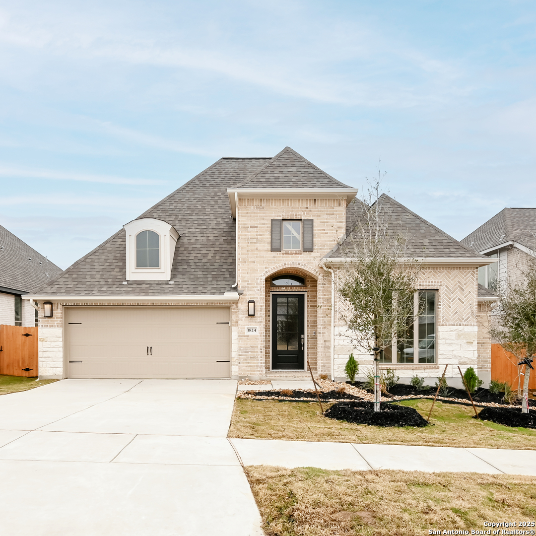 MOVE IN READY! Home office with French doors set at entry with 12-foot ceiling. Game room with French doors off extended entry. Family room with wall of windows opens to kitchen and dining area. Kitchen features walk-in pantry, 5-burner gas cooktop and generous island with built-in seating space. Primary suite includes bedroom with wall of windows. Double doors lead to primary bath with dual vanities, garden tub, separate glass-enclosed shower and oversized walk-in closet. A guest suite with private bath adds to this four-bedroom home. Extended covered backyard patio. Two-car garage.