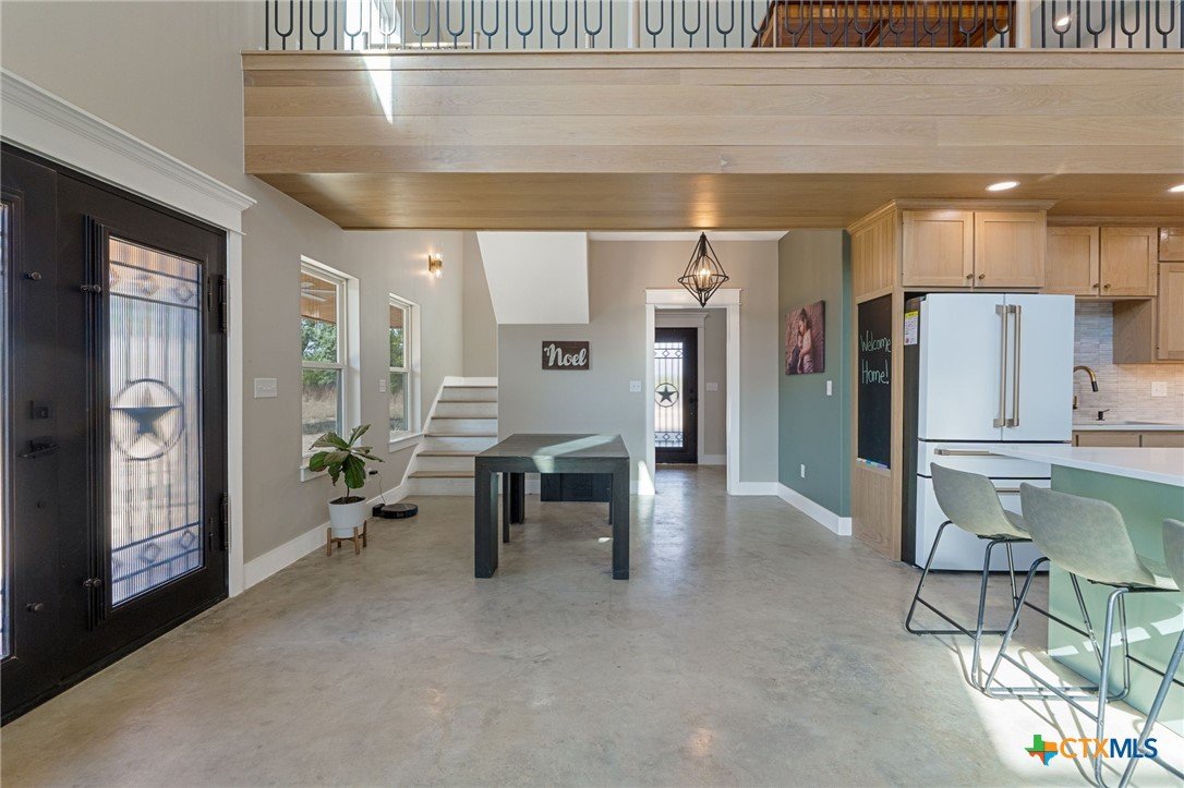 Set on 4.49 beautiful unrestricted acres, this unique property offers space, versatility, and modern style in a highly sought-after school district. The thoughtfully designed barndominium features a mix of polished concrete floors and luxury vinyl plank, blending durability with contemporary appeal. A massive 2,000-square-foot garage provides ample room for vehicles, storage, a workshop, or business use, while the separate tiny house adds flexibility—perfect for guests, multigenerational living, rental income, or a private office or studio. With wide-open land, stylish interiors, and multiple living and working options, this property is ideal for those seeking a blend of country living and modern convenience. A rare opportunity with endless possibilities.
