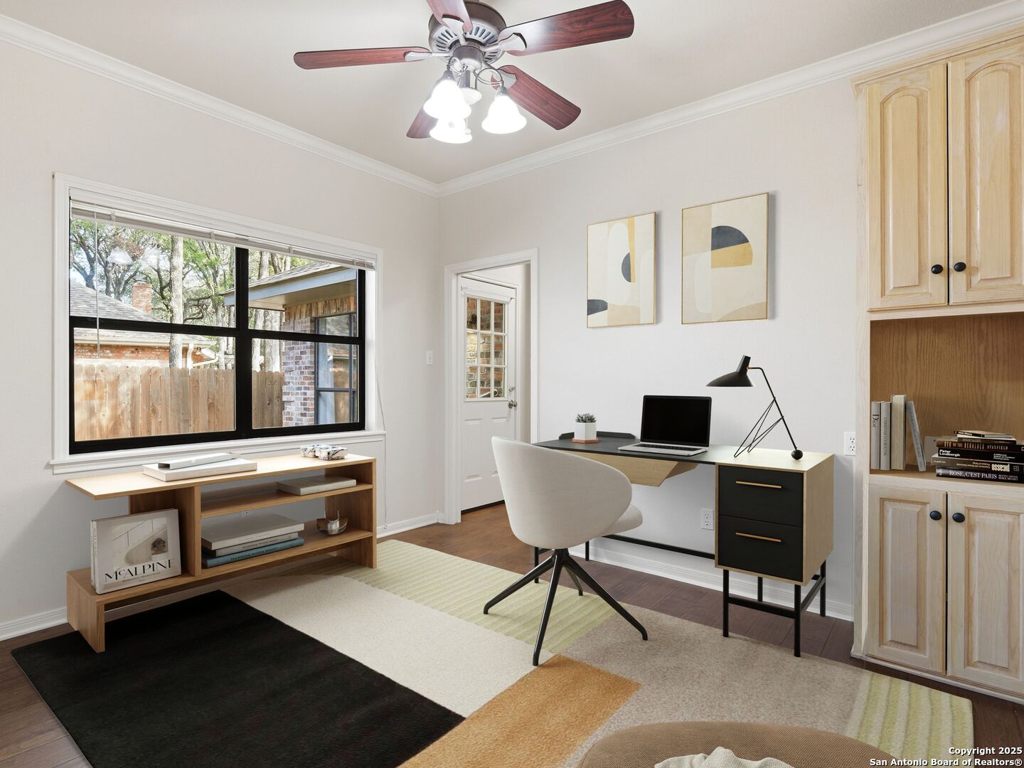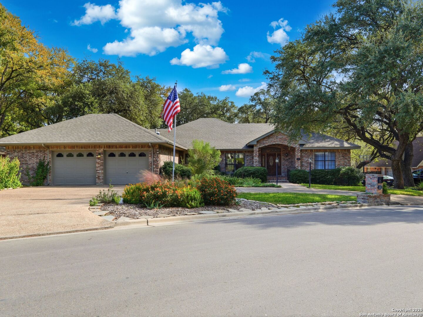This is THE ONE! A timeless ranch-style retreat on .53 oak-studded acres just moments from historic Gruene. This elegant home offers oversized bedrooms, 3 full baths, a dedicated office, spacious open kitchen, and inviting heated and cooled sunroom - certain to become your favorite space. Framing picturesque views of the private backyard that gently meanders down to a trickling creek, this sunroom delivers year-round comfort, natural beautiful and unmatched serenity. Oversized two car garage, circular driveway for added parking, and gorgeous native landscaping all frame this refined residence, set peacefully on a quiet cul-de-sac. Offering unmatched proximity to Gruene's boutique shopping, dining, and iconic LIVE music, this property captures the essence of elevated Hill Country Living!
