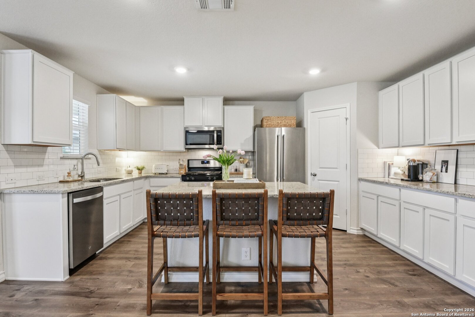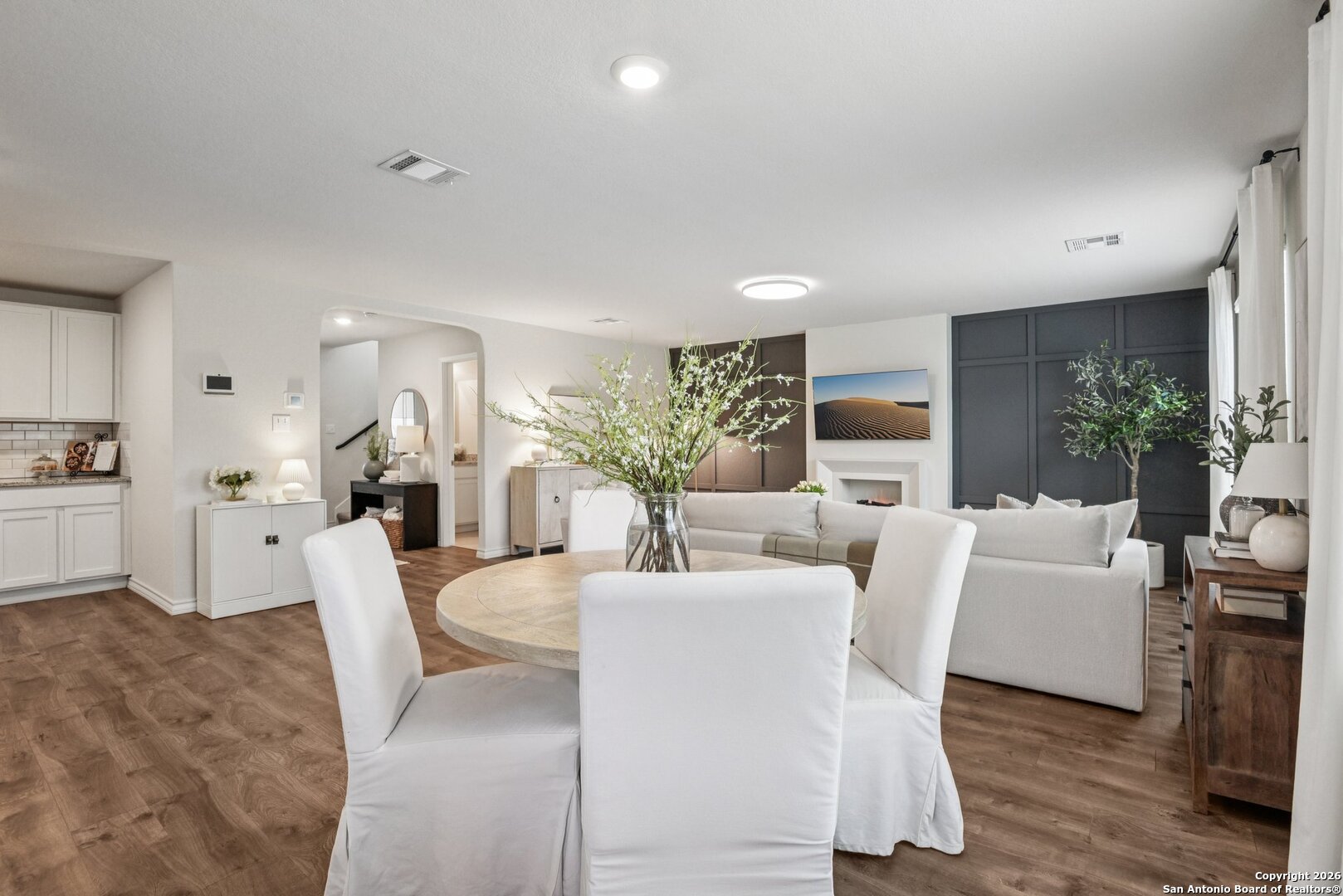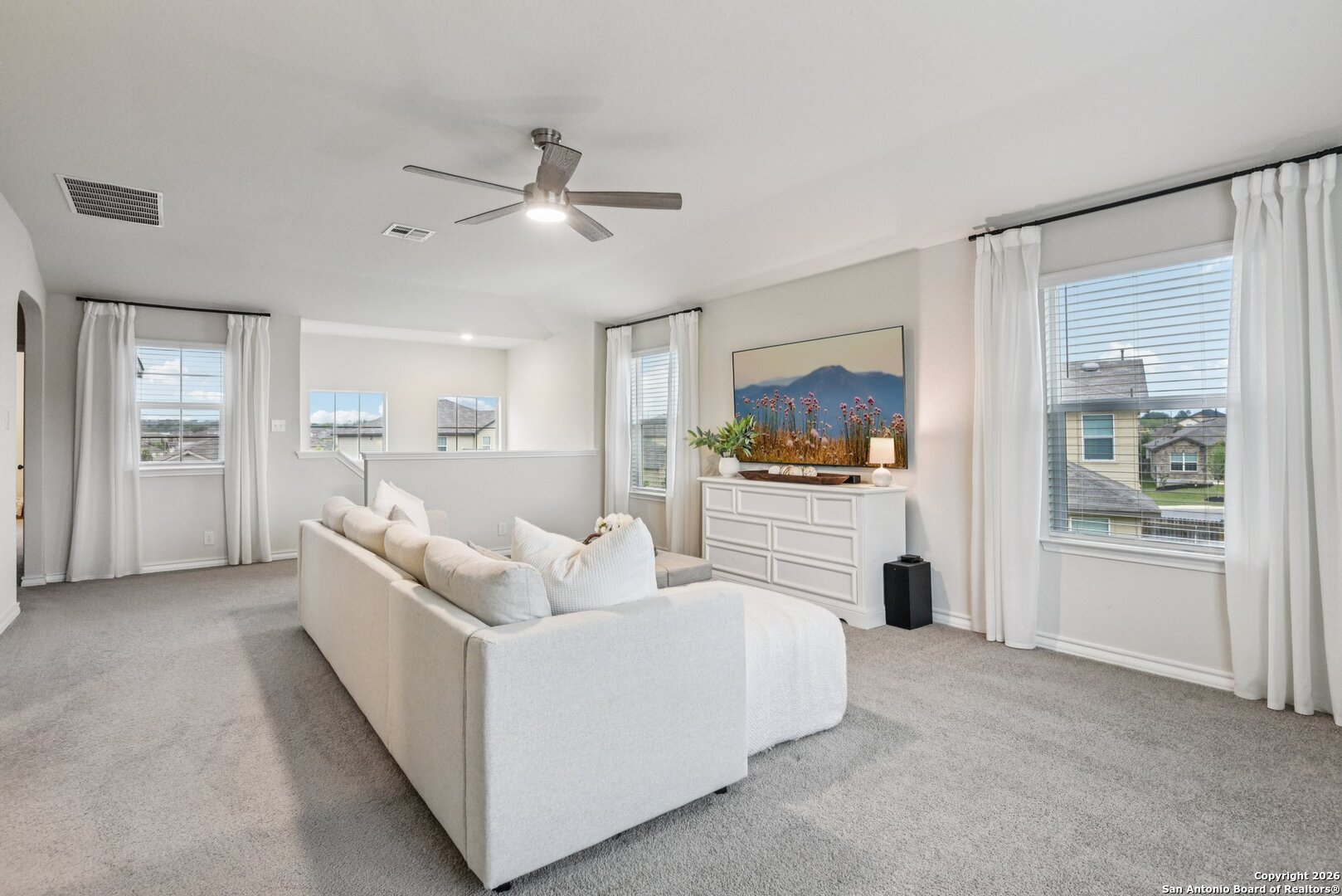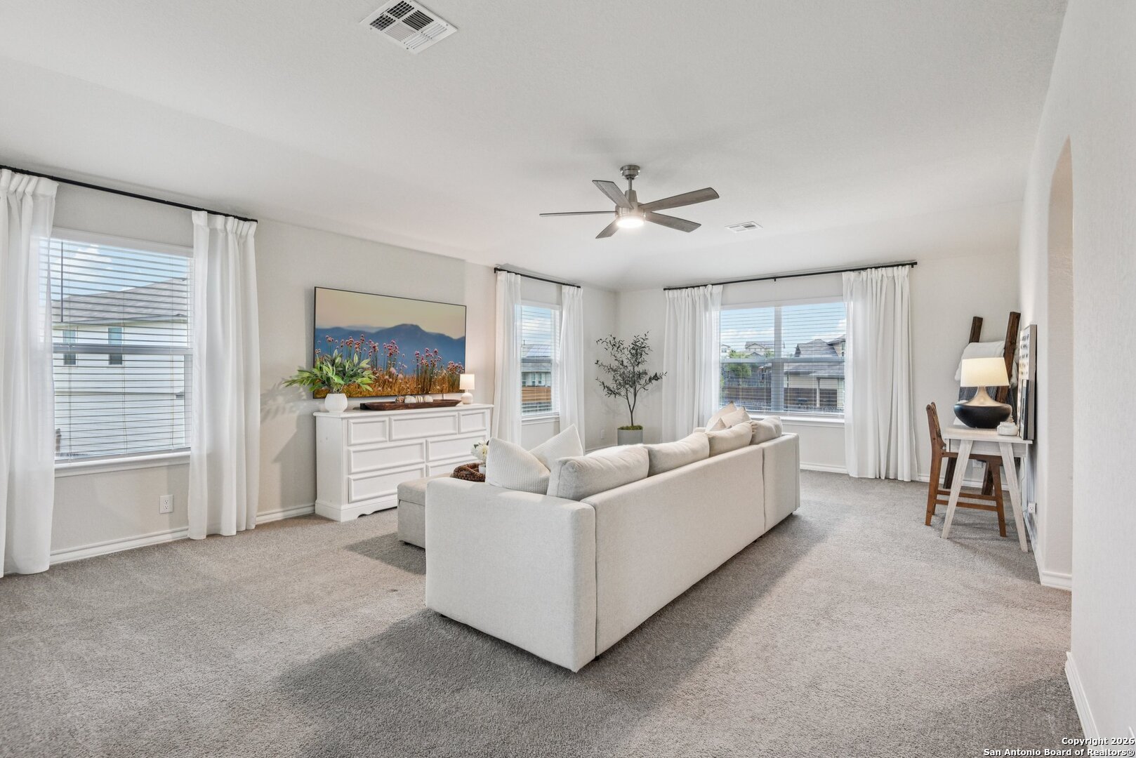 **MULTIPLE OFFERS RECEIVED-PLEASE SUBMIT BEST AND FINAL BY FRIDAY JAN. 23RD AT 6PM**Better than new and truly move-in ready, this beautifully maintained home is packed with upgrades, generous living space, and access to resort-style community amenities. Enjoy approximately 2,279 sq ft of living space with 3 bedrooms, 2.5 bathrooms, and an open-concept design that is ideal for both everyday living and entertaining. Wood-look flooring and cohesive, stylish finishes run throughout, creating a warm and modern feel from the moment you walk in. The open kitchen features quartz countertops, crisp white cabinetry, stainless steel appliances, and a large island that anchors the main living space. The kitchen flows seamlessly into the dining area and out to the expansive backyard patio, creating an effortless indoor-outdoor entertaining layout. An electric fireplace with custom accent wall, ceiling fans, and window treatments add comfort and character to the main level. The spacious primary suite offers a spa-style bath with dual vanities, soaking tub, separate shower, and walk-in closet. Two additional bedrooms, a secondary living area, and a conveniently located laundry room complete the upper level, providing flexibility for a game room, media room, or home office. Step outside to an impressive 34' x 14' backyard patio, offering abundant space for seating, dining, and gatherings. The extended patio makes this backyard an ideal setting for hosting, relaxing, or creating your own outdoor oasis. This home is truly turnkey with a KitchenAid refrigerator plus Samsung washer and dryer included. Located in a resort-style, master-planned community, residents enjoy a pool, splash pad, clubhouse, basketball court, park, and year-round neighborhood events, adding both lifestyle and long-term appeal.