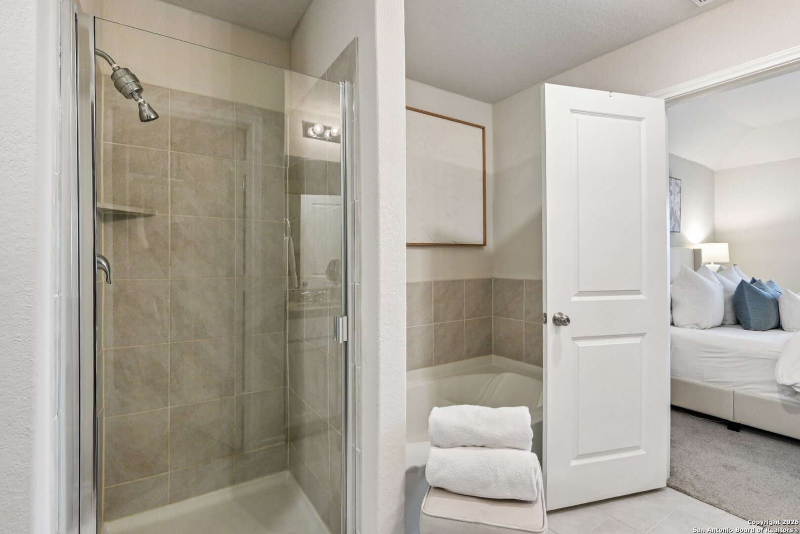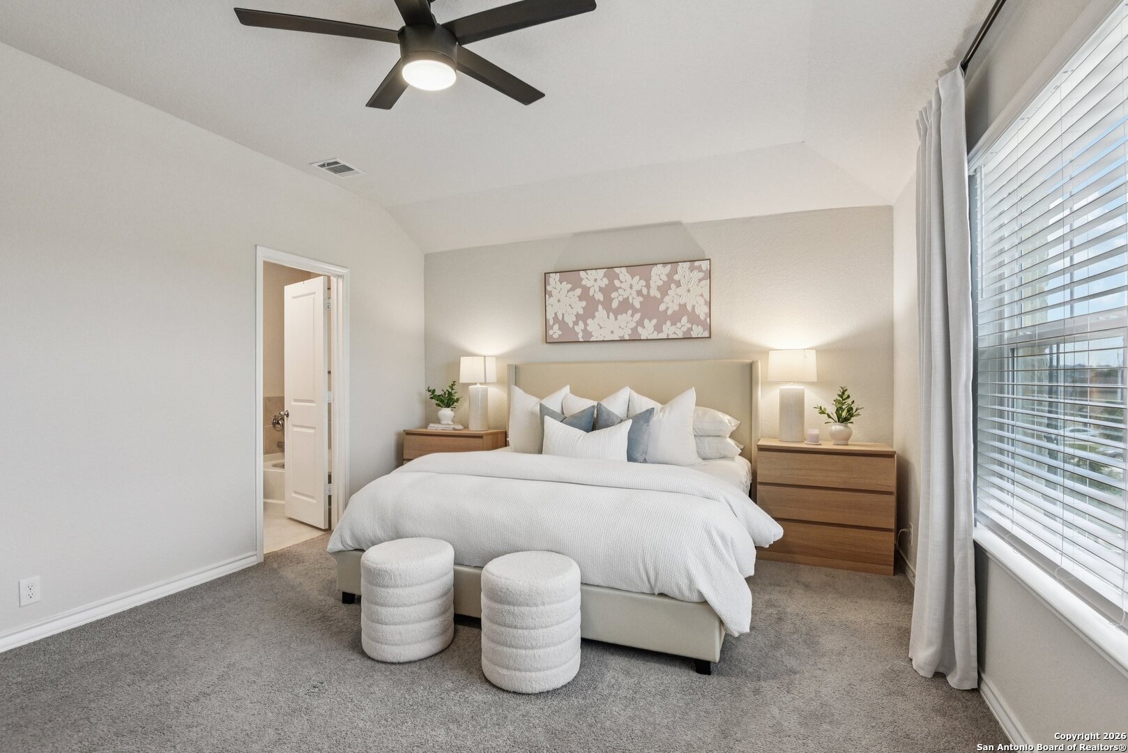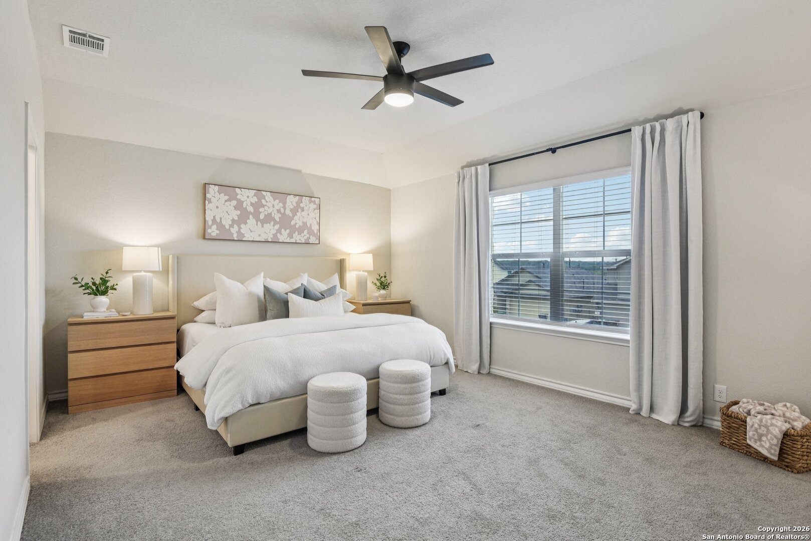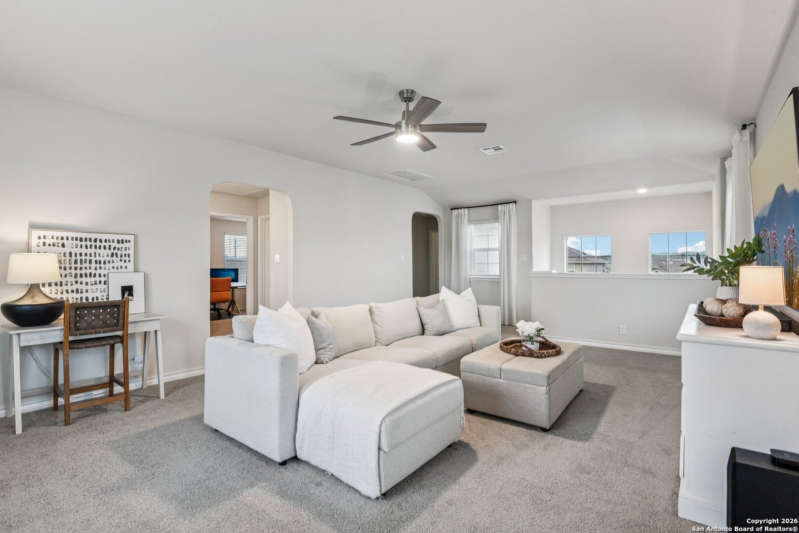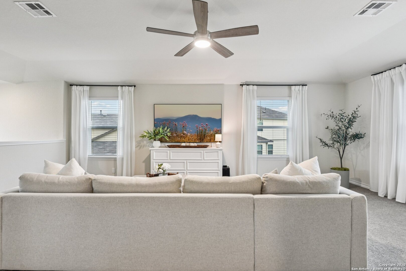 **MULTIPLE OFFERS RECEIVED-PLEASE SUBMIT BEST AND FINAL BY FRIDAY JAN. 23RD AT 6PM**Better than new and truly move-in ready, this beautifully maintained home is packed with upgrades, generous living space, and access to resort-style community amenities. Enjoy approximately 2,279 sq ft of living space with 3 bedrooms, 2.5 bathrooms, and an open-concept design that is ideal for both everyday living and entertaining. Wood-look flooring and cohesive, stylish finishes run throughout, creating a warm and modern feel from the moment you walk in. The open kitchen features quartz countertops, crisp white cabinetry, stainless steel appliances, and a large island that anchors the main living space. The kitchen flows seamlessly into the dining area and out to the expansive backyard patio, creating an effortless indoor-outdoor entertaining layout. An electric fireplace with custom accent wall, ceiling fans, and window treatments add comfort and character to the main level. The spacious primary suite offers a spa-style bath with dual vanities, soaking tub, separate shower, and walk-in closet. Two additional bedrooms, a secondary living area, and a conveniently located laundry room complete the upper level, providing flexibility for a game room, media room, or home office. Step outside to an impressive 34' x 14' backyard patio, offering abundant space for seating, dining, and gatherings. The extended patio makes this backyard an ideal setting for hosting, relaxing, or creating your own outdoor oasis. This home is truly turnkey with a KitchenAid refrigerator plus Samsung washer and dryer included. Located in a resort-style, master-planned community, residents enjoy a pool, splash pad, clubhouse, basketball court, park, and year-round neighborhood events, adding both lifestyle and long-term appeal.