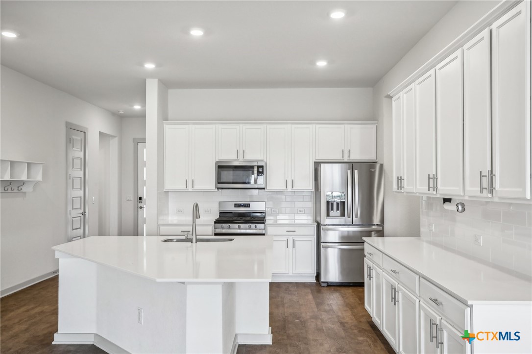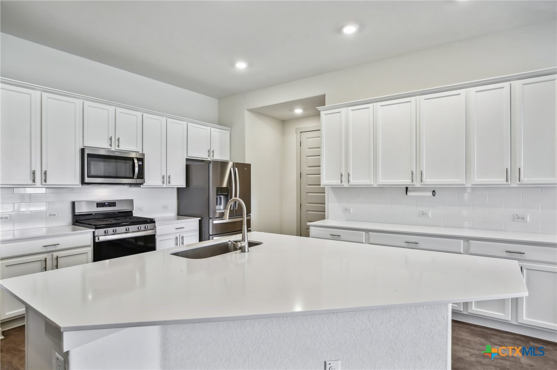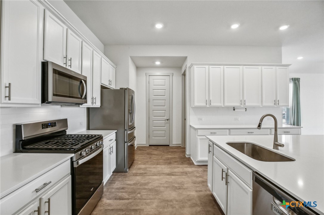AS-IS! Well maintained D.R. Horton home on a PREMIUM LOT with fantastic views and no rear neighbors, in the highly acclaimed Liberty Hill ISD! High ceilings throughout and 8' doors. Meticulously maintained 4-bedroom home offers a perfect blend of comfort, style, and convenience. Located in the peaceful community of Lively Ranch, this lovely home provides an ideal retreat for those seeking both tranquility and modern living. Open-concept floorplan with amazing views create an inviting space for relaxation and entertainment. The gourmet kitchen features sleek quartz countertops, stainless steel appliances, ample cabinet space & large breakfast bar and pantry. Upgraded primary suite, complete with a big walk-in closet and luxurious en-suite bathroom featuring dual sinks and walk-in shower. Garage has been finished out with a spotless epoxy floor! Step outside to enjoy a covered patio and expansive backyard with no rear neighbors. Whether you're enjoying a morning cup of coffee or hosting a barbecue with friends, this backyard is sure to become your favorite spot to unwind and relax. Home includes a tech package with Doorbell, Front Deadbolt Lock, Home Hub, Light Switch & Thermostat. Washer, Dryer and Refrigerator convey. Enjoy all the benefits of a master-planned community with access to the pool, fitness center & walking paths and playground. Conveniently located between Georgetown and Liberty Hill with easy access to top-rated schools, shopping, dining, parks, and recreational amenities. You will love the sense of community, convenience, space and small-town charm this vibrant area has to offer. Lively Ranch is prized for wide streets, community happenings, beautiful amenity center, expansive views and well-kept common areas. You will feel the difference as you drive through this unique neighborhood.
