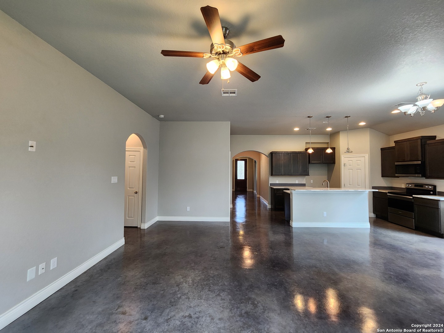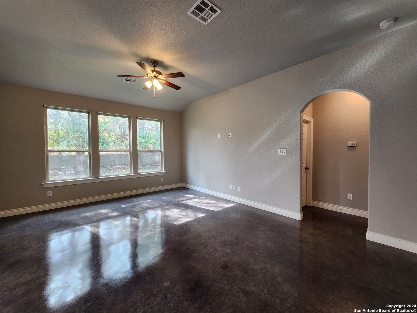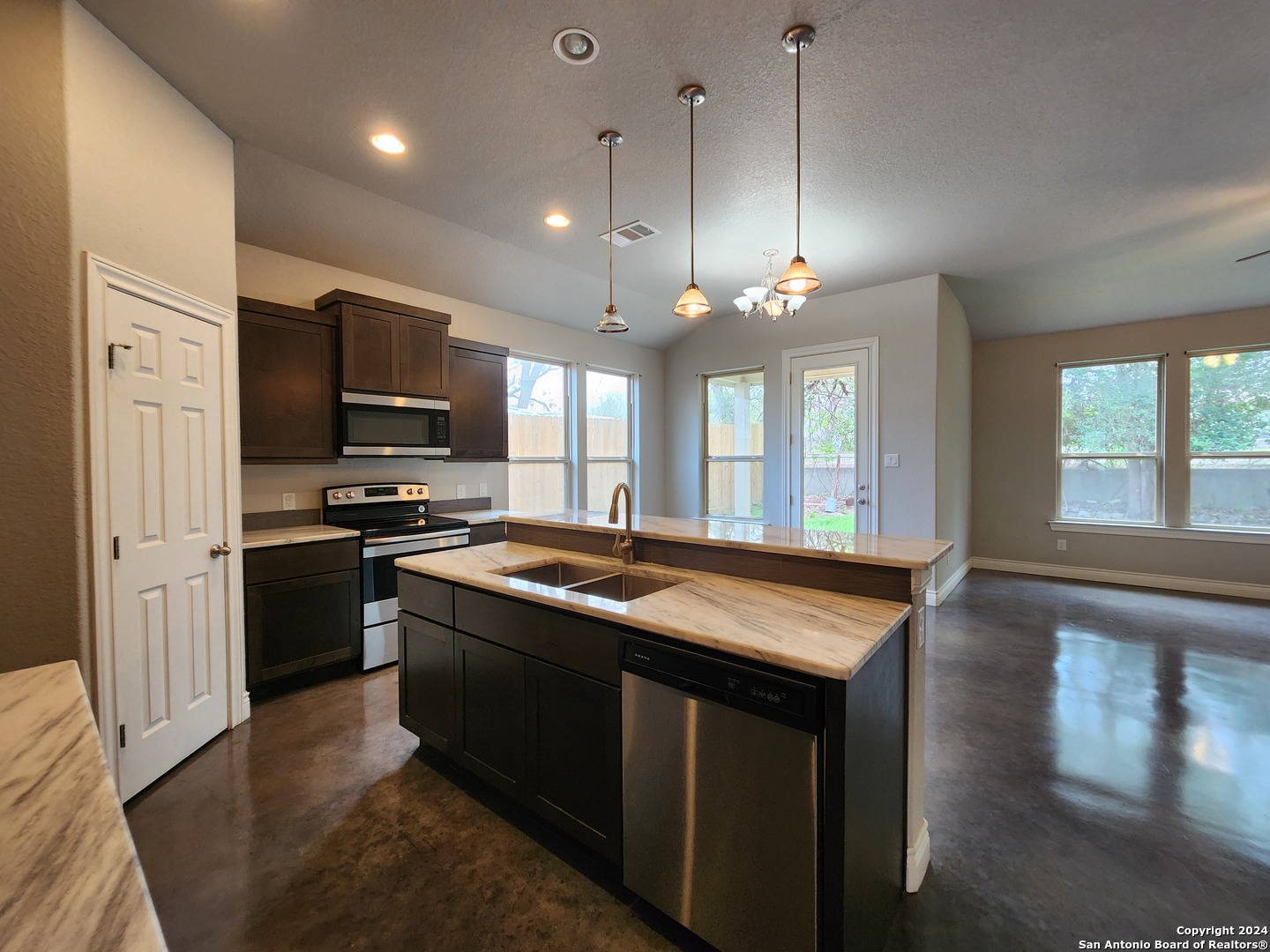 Amazing Location! .6 Miles to Torrey Park/1.6 Miles to Downtown New Braunfels / 2.2 Miles to Gruene. Flooring is stained concrete / no carpet. High ceilings & an open floorplan. Kitchen Includes: built in microwave, stove/oven range electric, dishwasher, quartz countertops, island with breakfast bar, pantry, & recessed lighting. Kitchen opens up to living room & dining nook. Other Features Include: primary bath has a walk in shower / garden tub/ double vanities / walk in closet, ceiling fans, hall bath is shower tub combo, garage door opener, laundry room inside, fenced in yard ( not reflected in some marketing pics) & a covered back patio. Pets ok, dogs 50lb max. Cats- Must Provide Proof of Spay/Neuter. Owner is a licensed real estate agent in Texas.