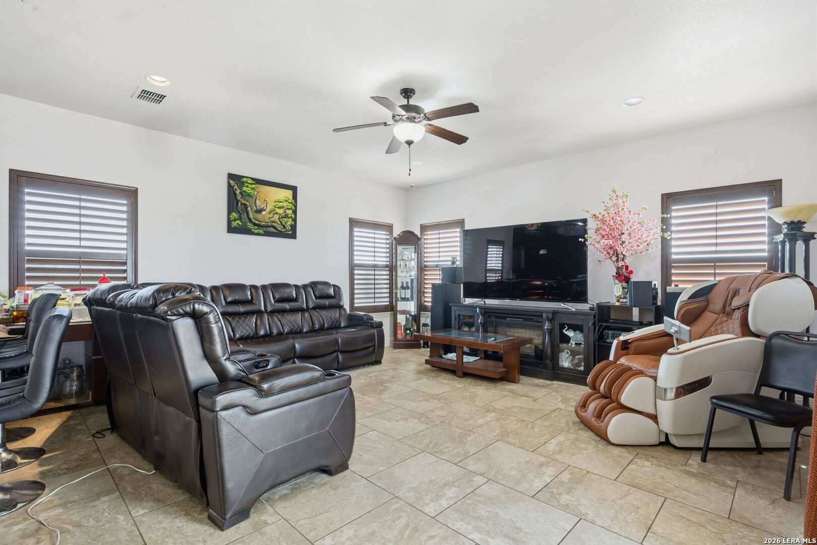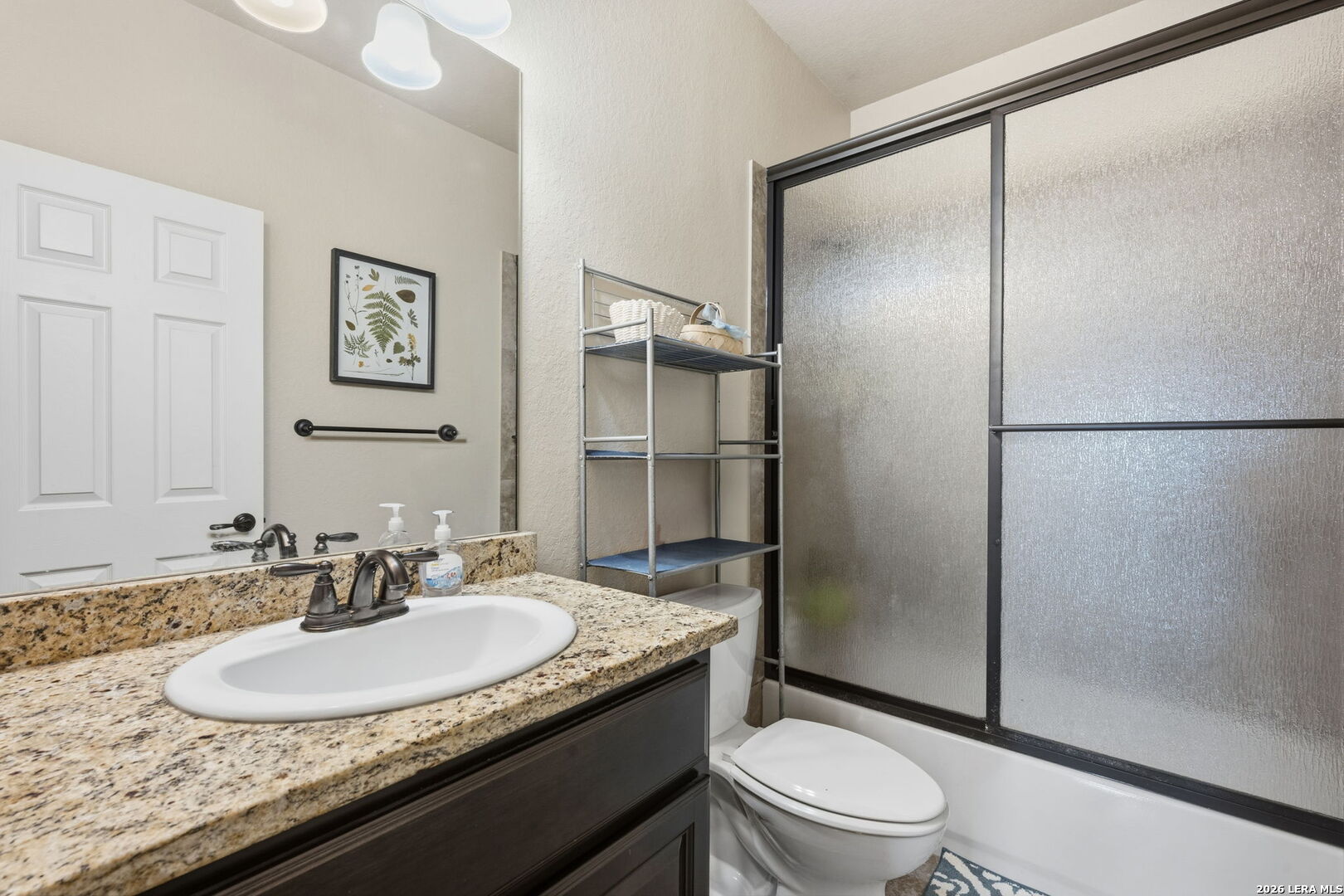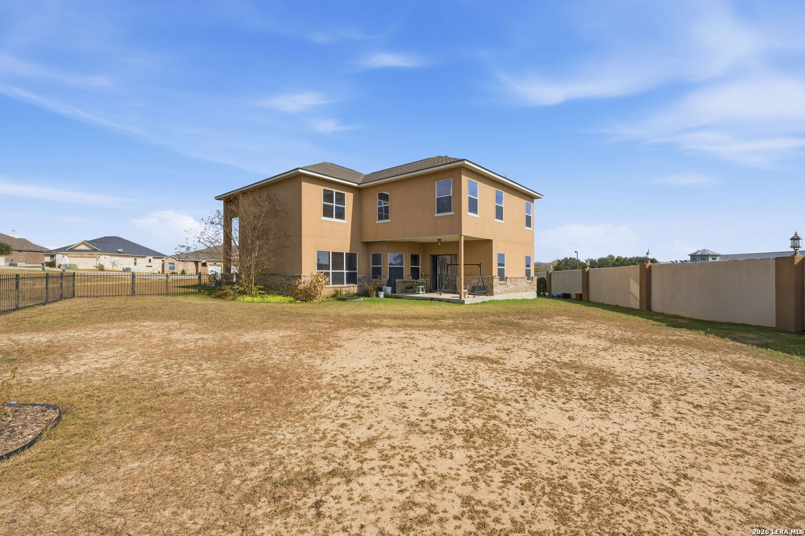 Highly motivated seller-bring offers! Stunning corner-lot home on an oversized lot with custom Craftsman finishes throughout. This 4-bedroom, 5-bath residence features an office/study that can serve as a 5th bedroom, a chef's kitchen with granite countertops, custom cabinetry, recessed and pendant lighting, and elegant shutter blinds. The expansive primary suite offers dual closets and his-and-hers bathrooms for ultimate privacy. Enjoy golf course views at the end of the 9th hole, just steps from the clubhouse and Lew's Patio & Grill-while still maintaining seclusion with a 7-ft custom masonry privacy wall. Two A/C units, easy San Antonio commute, and truly move-in ready luxury. ***Willing to help with some closing costs. ***