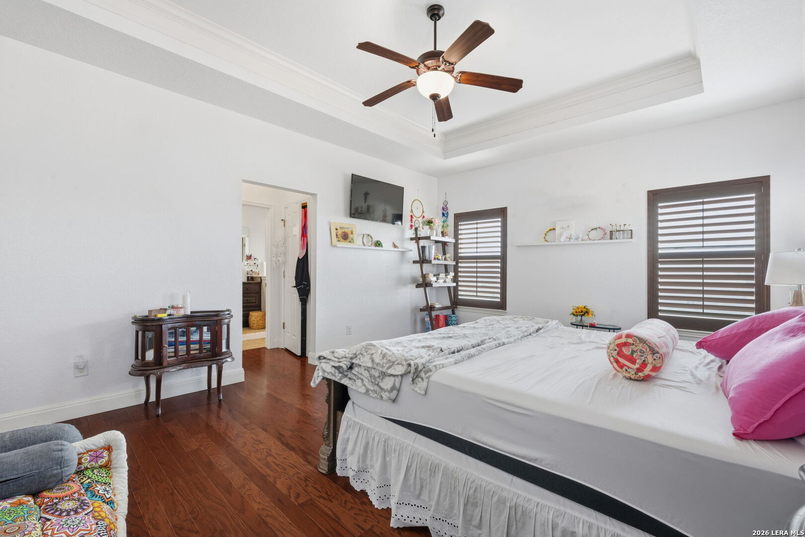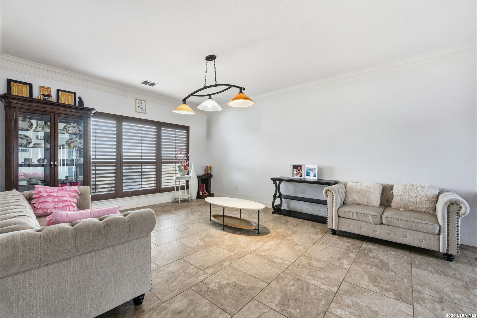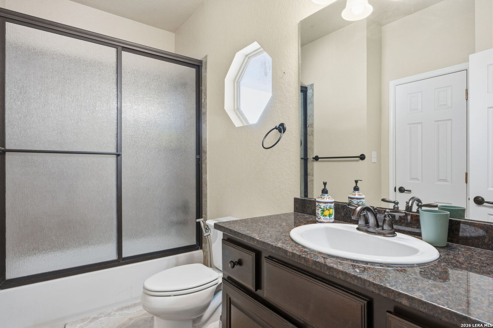 Highly motivated seller-bring offers! Stunning corner-lot home on an oversized lot with custom Craftsman finishes throughout. This 4-bedroom, 5-bath residence features an office/study that can serve as a 5th bedroom, a chef's kitchen with granite countertops, custom cabinetry, recessed and pendant lighting, and elegant shutter blinds. The expansive primary suite offers dual closets and his-and-hers bathrooms for ultimate privacy. Enjoy golf course views at the end of the 9th hole, just steps from the clubhouse and Lew's Patio & Grill-while still maintaining seclusion with a 7-ft custom masonry privacy wall. Two A/C units, easy San Antonio commute, and truly move-in ready luxury. ***Willing to help with some closing costs. ***