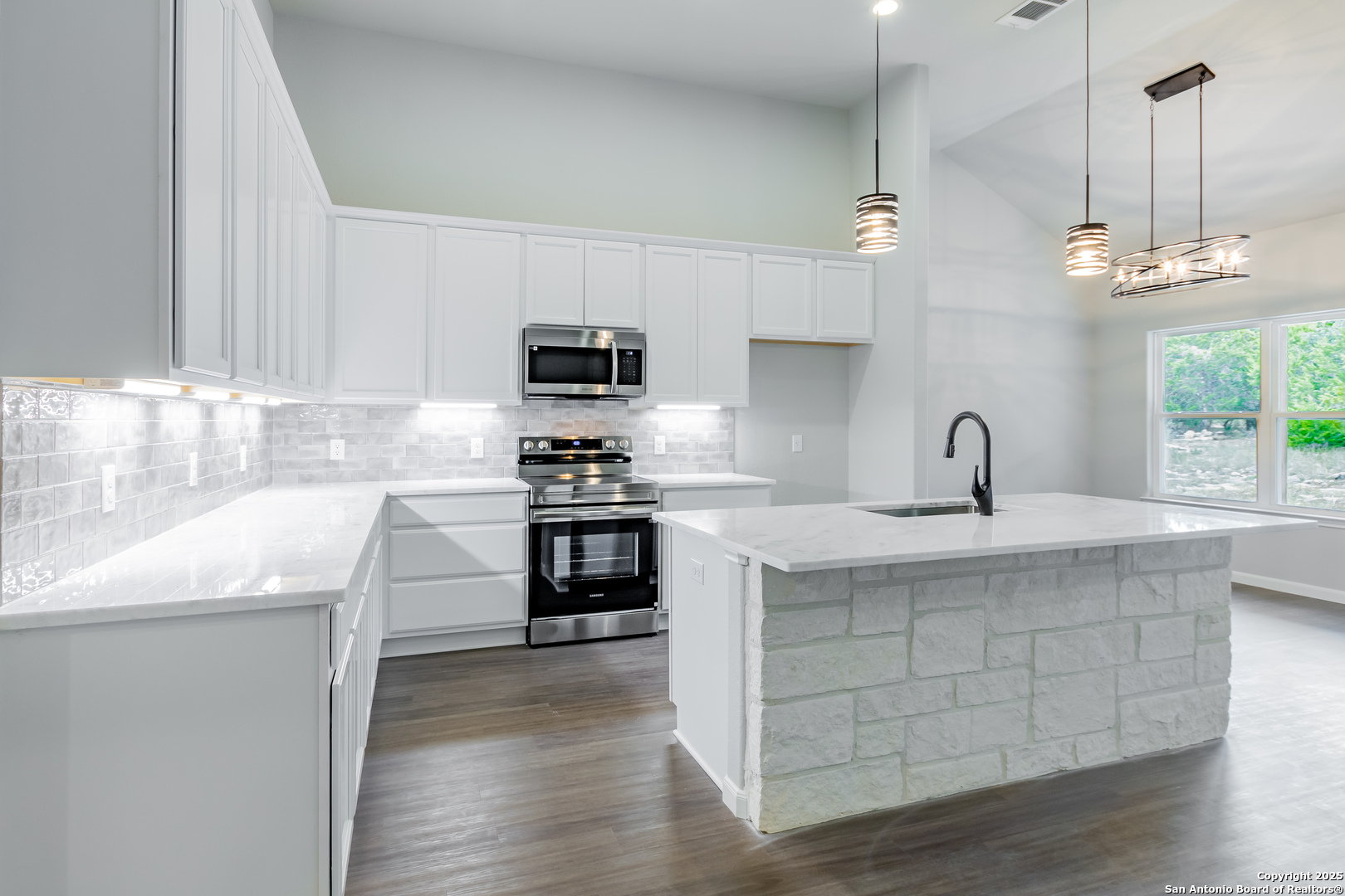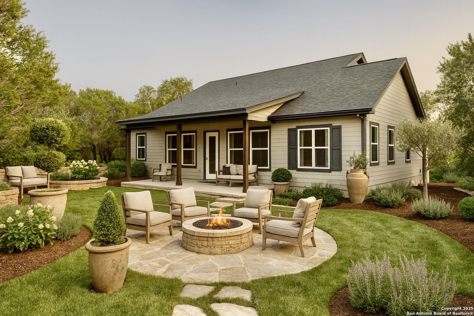 Discover this beautiful new-build Hill Country retreat on a generous 0.5-acre homesite in desirable Fischer, Texas. Built by the highly reputable Southern Charm Builders, this single-story home offers 1,859 sq. ft. of quality craftsmanship and thoughtful design. With 4 bedrooms and 2 baths-including a flexible fourth bedroom that can serve as a private study-this home blends comfort, functionality, and style. Step inside to an inviting open-concept floor plan with hard surface flooring throughout, creating a seamless flow for everyday living. The chef-inspired kitchen features abundant cabinetry, extensive hard-surface countertops, and a spacious walk-in pantry-ideal for entertaining or perfecting your favorite recipes. Enjoy Hill Country living at its finest with an L-shaped covered front porch, perfect for seasonal decor or relaxing with your morning coffee. The home also boasts a large covered back patio overlooking a blank-canvas backyard-a clean slate ready for your personalized landscape design, garden, or outdoor oasis. Perfectly positioned between Austin and San Antonio, this property offers convenient access to both airports and sits near some of the most sought-after towns in Texas, including Wimberley, New Braunfels, Gruene, San Marcos, and Dripping Springs. With no mandatory HOA, you'll enjoy both freedom and flexibility in how you use your space. This exceptional new construction by Southern Charm Builders combines modern comfort, Hill Country charm, and a prime location-ready to welcome its first owner.