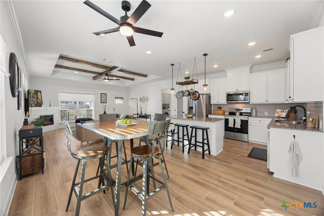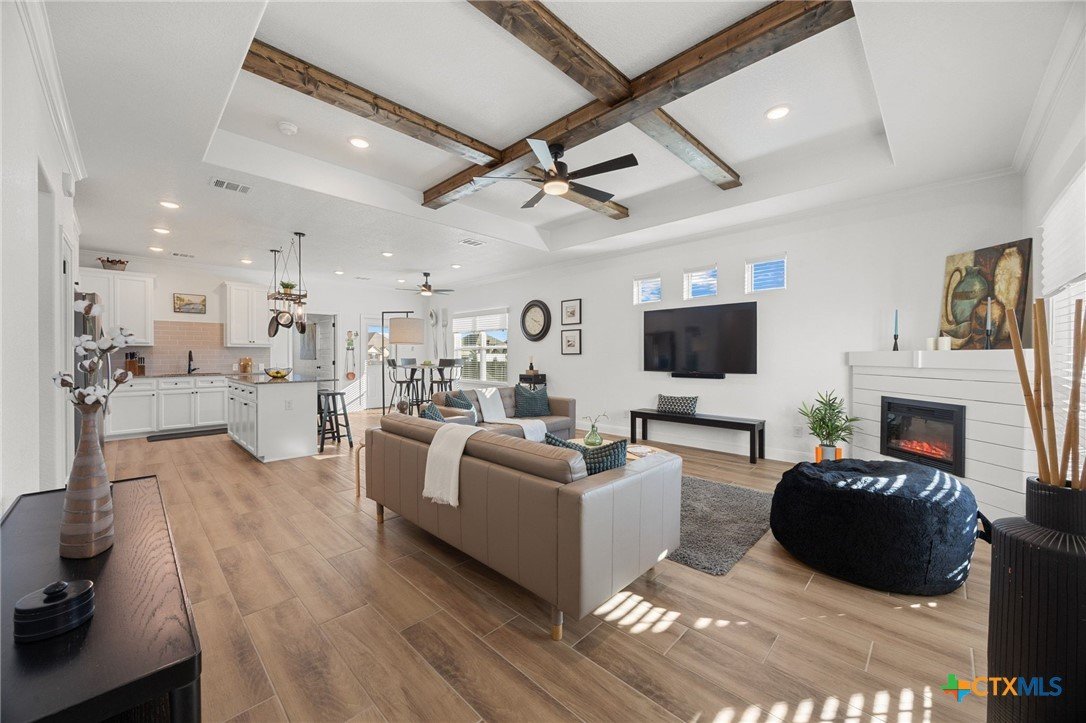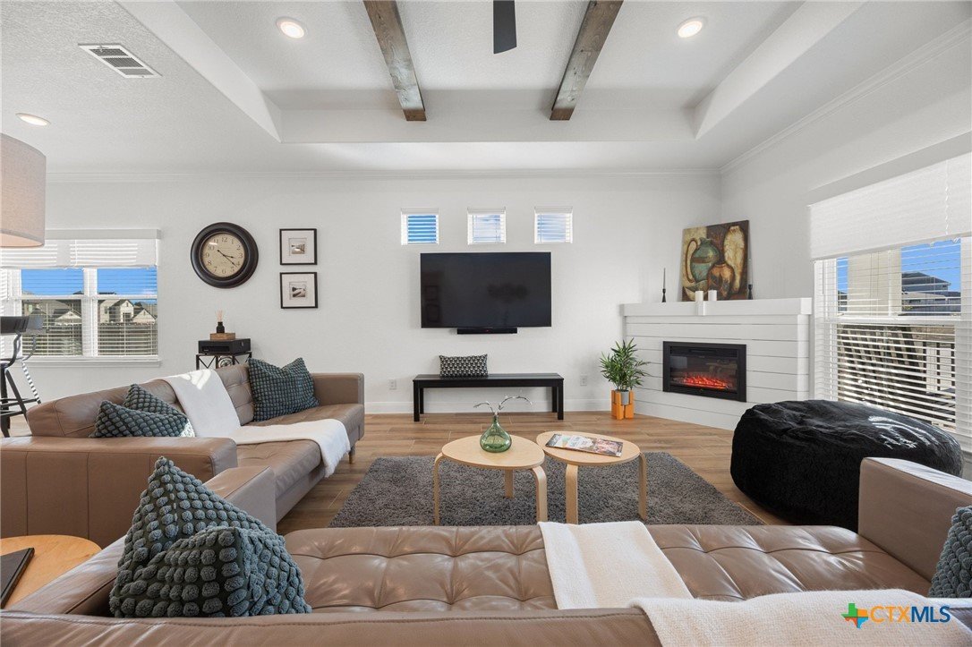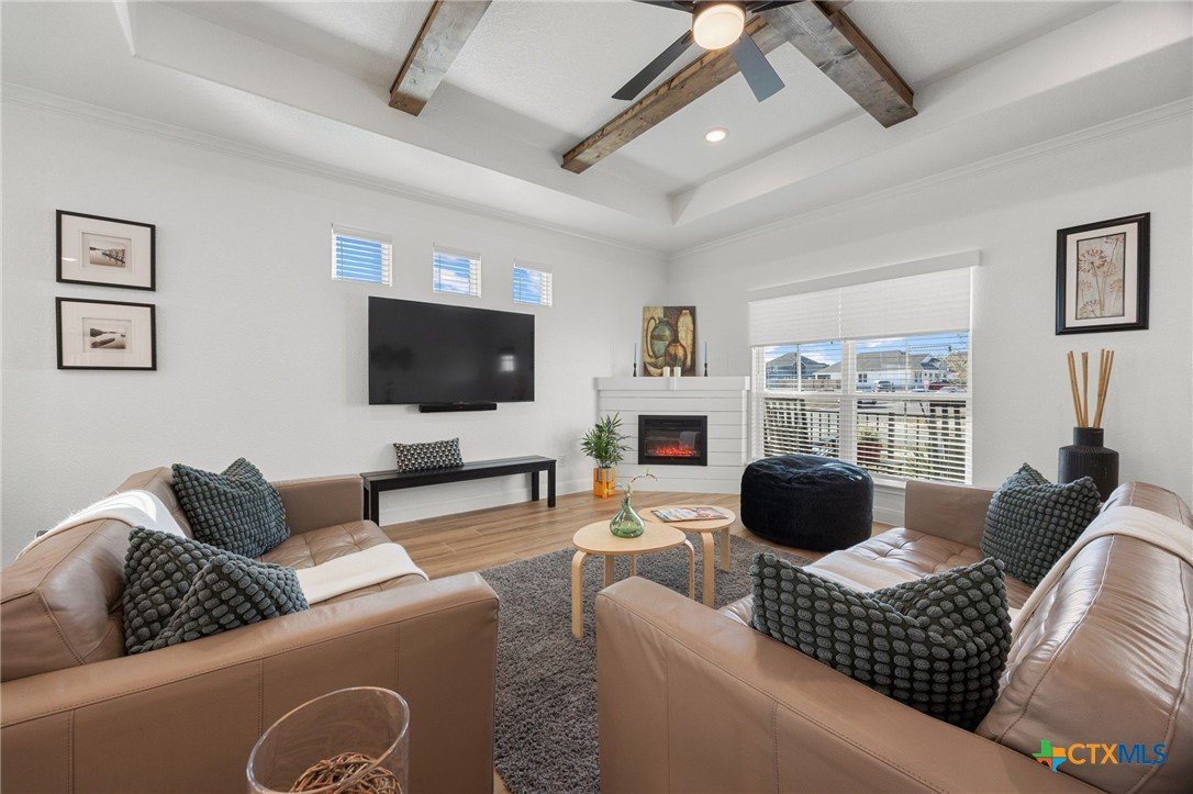Welcome to this impeccably cared-for, one-owner, one-story home nestled on a tree-filled corner lot. Featuring 3 bedrooms and 2 bathrooms, this charming property boasts a cozy custom fireplace and both front and side porches that create the perfect setting for morning coffee or evening gatherings. A rare combination of comfort, character, and exceptional upkeep. Refrigerator, washer & dryer included. Fully fenced backyard with in-ground sprinkler system. Extras that make this home special: Corner lot, Spray Foam insulation, Oversized shower (3'11 x 9), Floor outlet in Living room, Ceiling fans with remotes in all bedrooms, living room and dining. 50 amp generator plug, custom vanity mirrors.