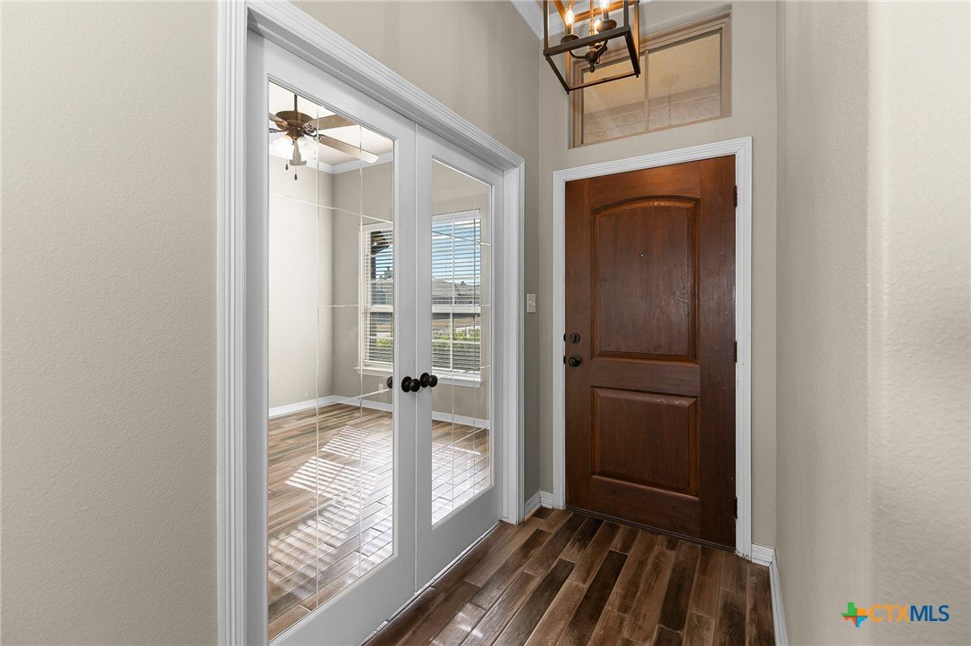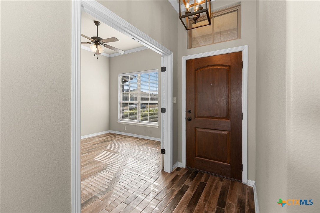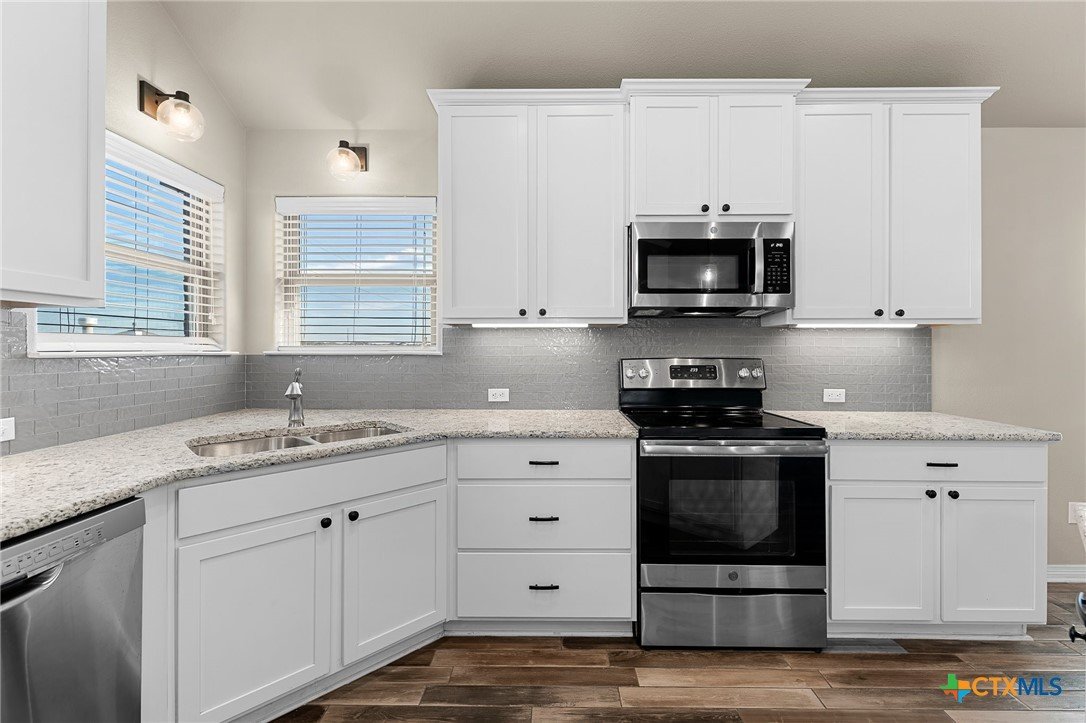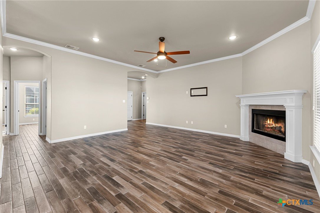 Welcome to this beautifully maintained 4-bedroom, 2-bath home located at 1847 Broken Show Trail in the desirable Carriage House Trail Subdivision of Temple, TX. Built in 2018 and offering 2,263 square feet, this home sits on a corner lot with peaceful greenspace behind the backyard’s wood privacy fence, providing extra privacy and a scenic backdrop. Inside, you’ll find a bright, open floor plan designed for both everyday living and entertaining. The spacious living area features a corner fireplace that anchors the room and creates a warm, inviting atmosphere. The kitchen flows seamlessly into the living and dining areas, making gatherings effortless. The owner’s suite is a true retreat, highlighted by a stunning bathroom with a separate soaking tub and walk-in shower, dual vanities and separate walk-in closets—offering both luxury and functionality. Step outside and enjoy the home’s standout feature: Trimlight programmable exterior lighting, perfect for holidays, game days, or elegant year-round accent lighting at the touch of a button. With its modern construction, thoughtful upgrades, open layout, and prime corner-lot location backing to greenspace, this home combines comfort, style, and convenience in one exceptional package.