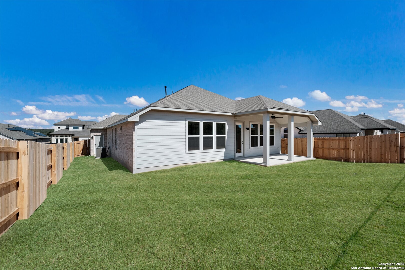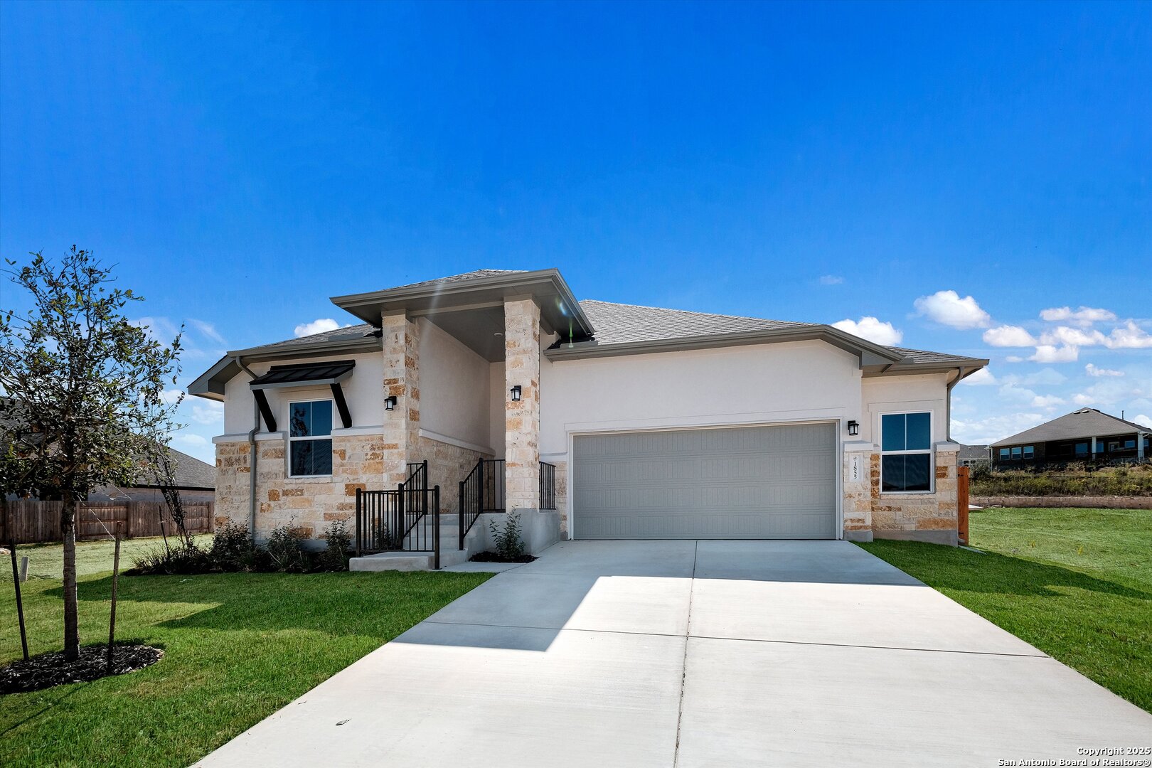** MOVE-IN READY! ** LOW RATE AVAILABLE ** Stunning single-story Hamilton Plan by Scott Felder Homes, located in highly sought-after Meyer Ranch. This 4 bed, 3 bath, 2,655 sq. ft. home features an open-concept layout with soaring ceilings, abundant natural light, and elegant design throughout. Gourmet kitchen includes built-in stainless steel appliances, quartz countertops, custom cabinetry, and a large island-perfect for entertaining. Spacious family room flows seamlessly to the extended covered patio, ideal for outdoor living. The private primary suite boasts a spa-like bath with oversized walk-in shower, dual vanities, and large walk-in closet. Additional highlights include a dedicated study, upgraded flooring, designer lighting, and a thoughtfully designed layout for comfort and functionality. Situated on a prime homesite in Meyer Ranch with access to resort-style amenities, trails, and just minutes from New Braunfels.