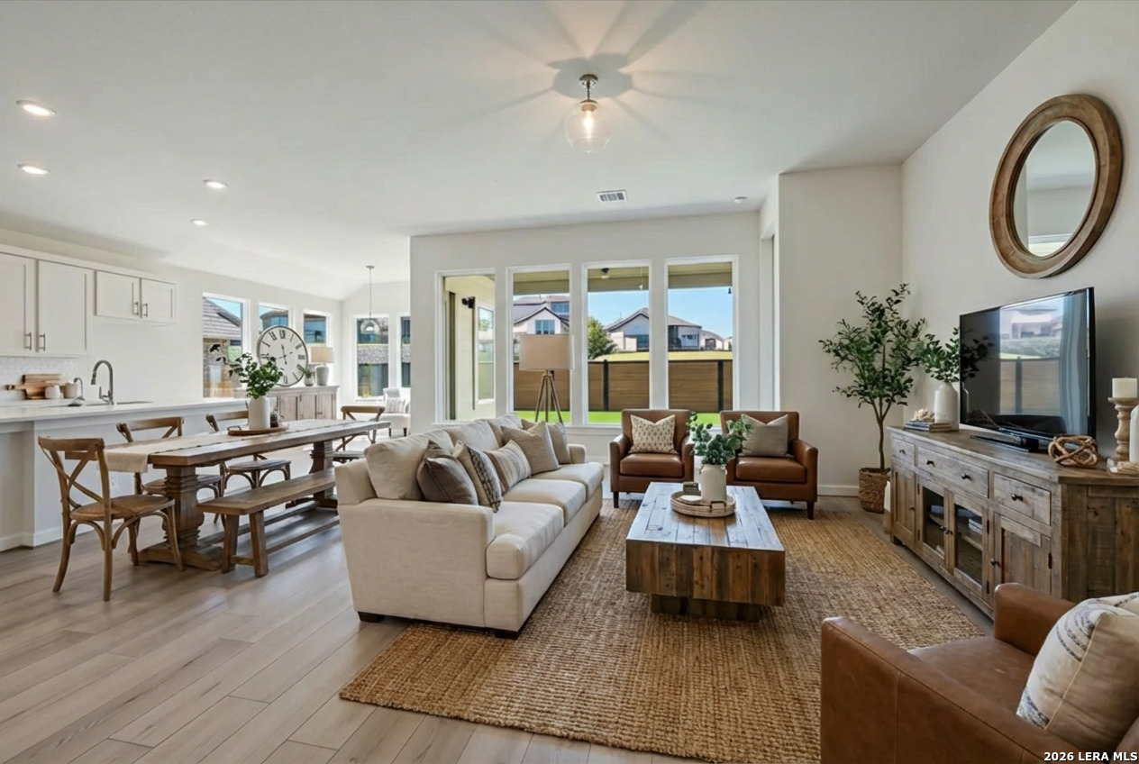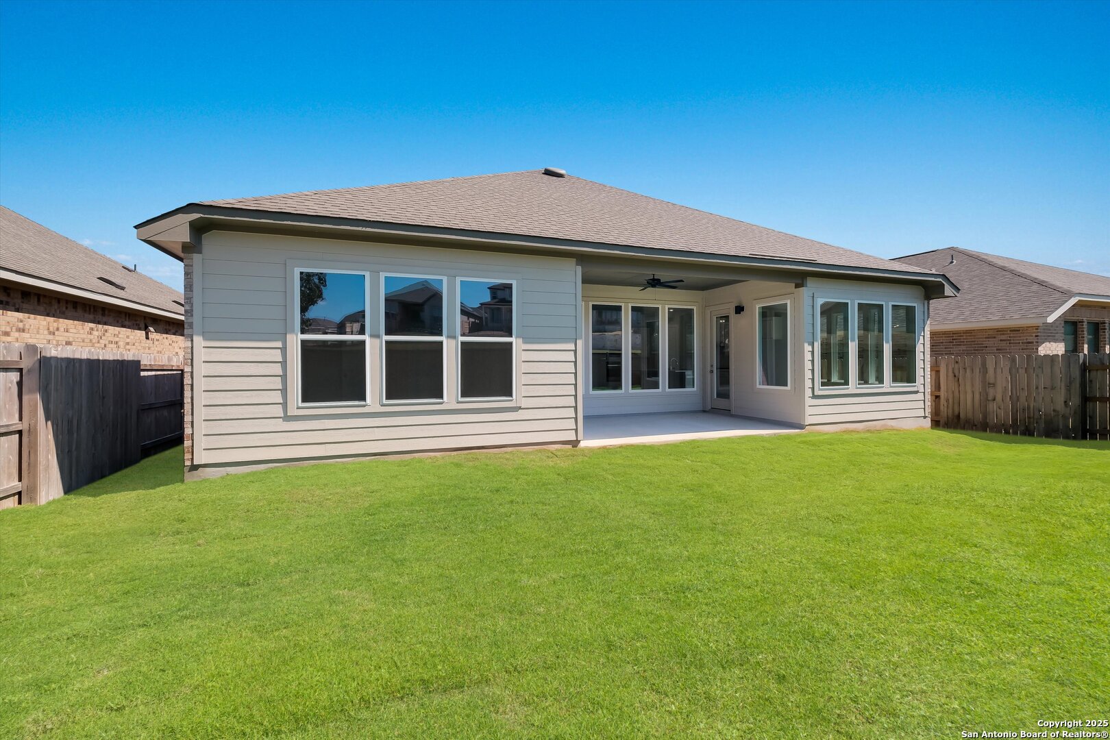 ** MOVE-IN READY! ** LOW RATE AVAILABLE ** This beautifully crafted single-story Elgin plan offers 4 bedrooms, 3 bathrooms, a study, and 2,406 sq. ft. of thoughtfully designed living space on a desirable homesite in Meyer Ranch. With a blend of Hill Country charm and modern luxury, this home delivers comfort, style, and functionality in one seamless layout. The open-concept living area features a gourmet kitchen with built-in stainless steel appliances, an oversized island, upgraded cabinetry, and elegant quartz countertops. The kitchen flows naturally into the spacious dining and family rooms, perfect for hosting guests or cozy nights in. The private primary suite includes a spa-like bath with a walk-in shower, dual vanities, and a generous walk-in closet. Three secondary bedrooms and two additional full baths offer flexibility for guests, children, or a multi-generational living setup. The dedicated study makes working from home both private and productive. High ceilings, upgraded finishes, and abundant natural light elevate the entire space. Step outside to the covered patio, ideal for enjoying Texas sunsets and backyard gatherings. Located in Meyer Ranch, one of New Braunfels' most vibrant master-planned communities, residents enjoy resort-style amenities, scenic trails, dog parks, and community events-just a short drive from shopping, dining, and outdoor recreation.