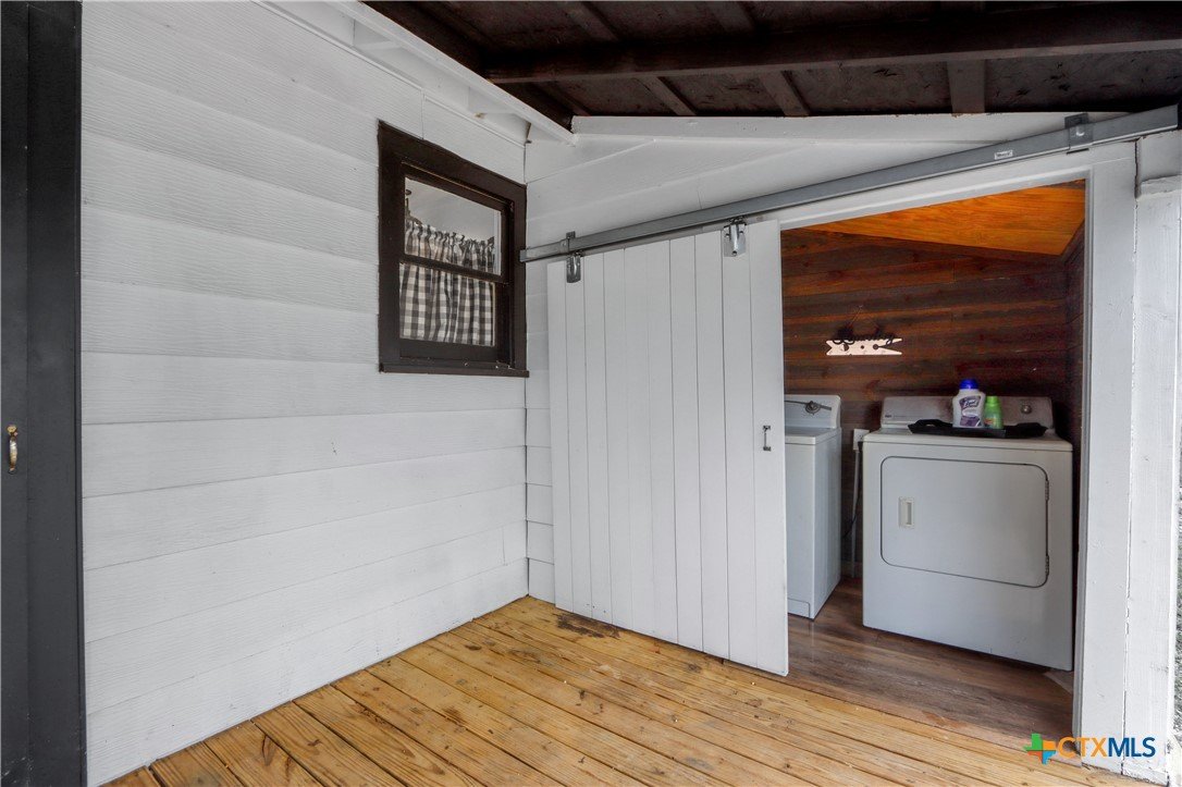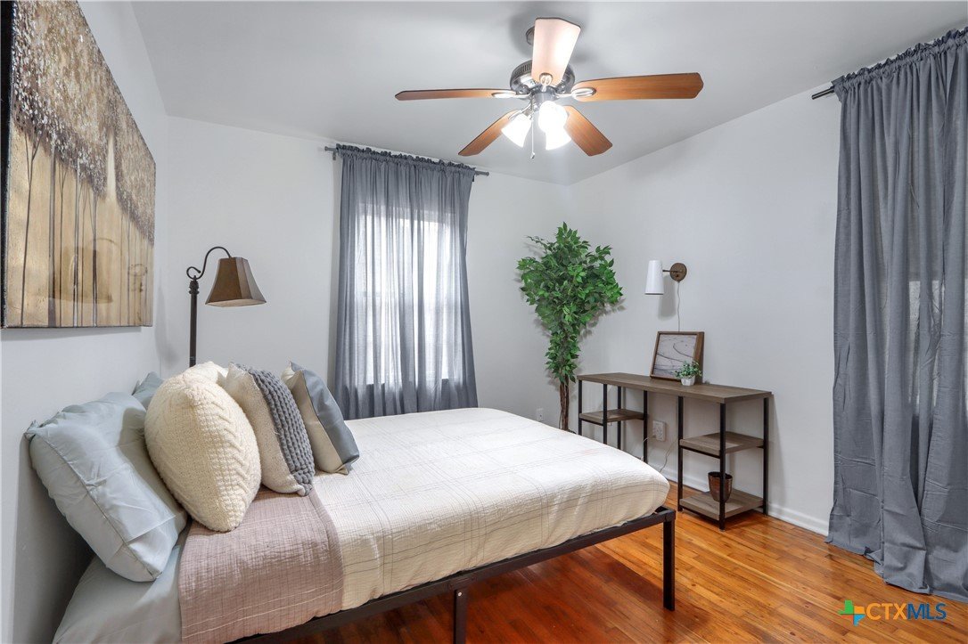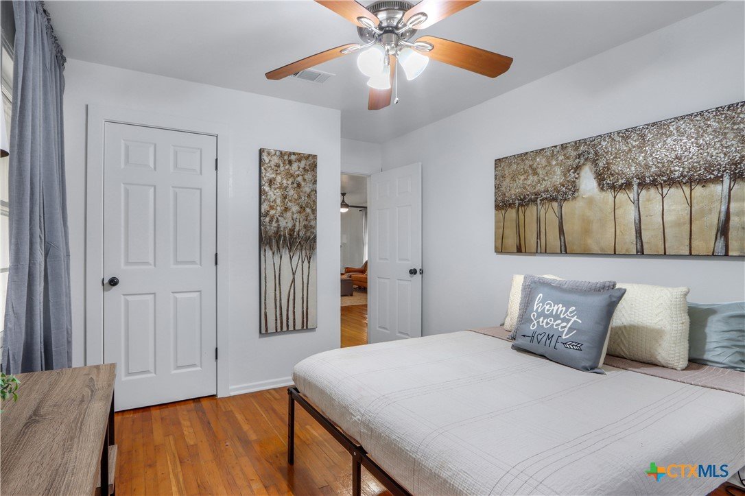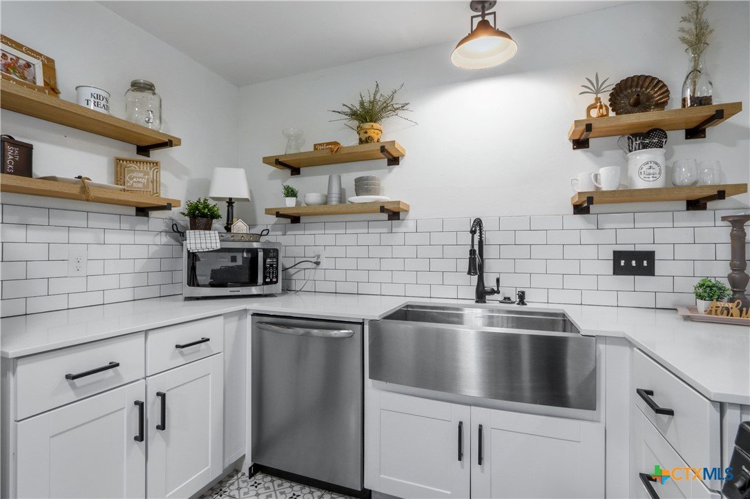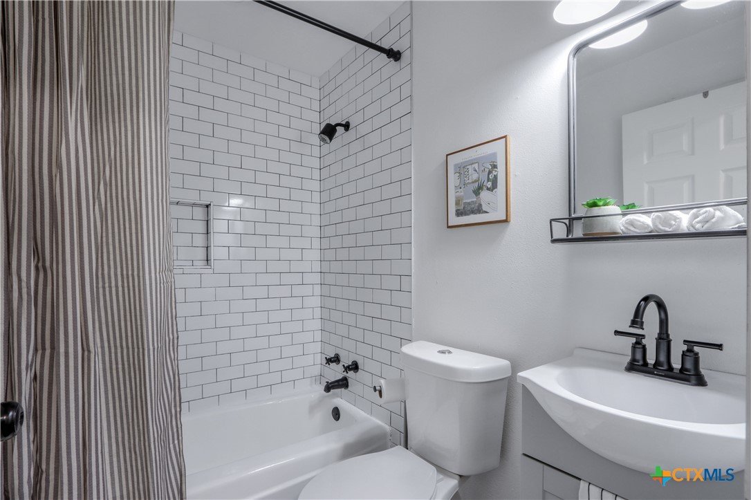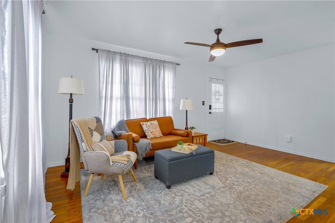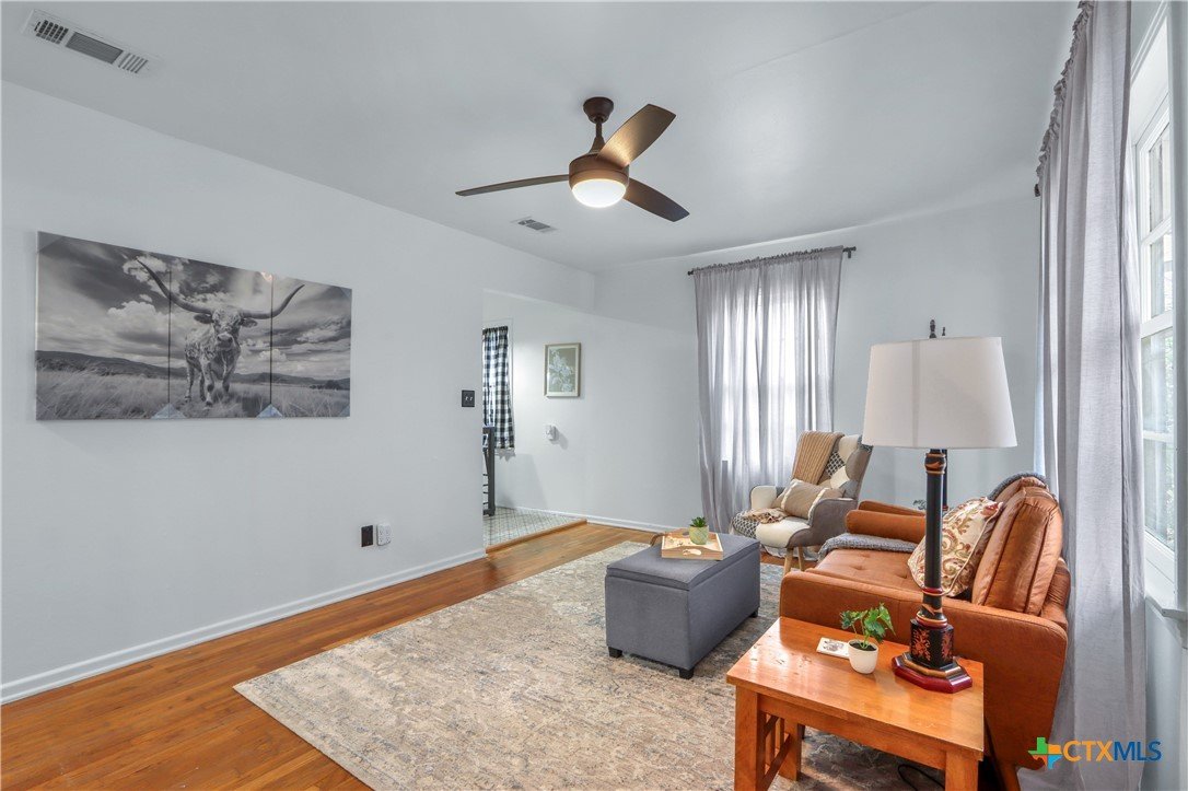 Charming, fully renovated home located in a vibrant neighborhood, just minutes from the heart of historic downtown New Braunfels. This 2 bedroom, 1 bathroom home built in 1965 has been beautifully renovated to blend vintage character with modern comforts. The interior features original wood flooring, updated fixtures, and a tastefully designed kitchen with quartz countertops, open shelving and a gas range. Centrally located with NO HOA, charming curb appeal, and modern updates throughout, this property offers the perfect blend of character and comfort. All furnishings are negotiable making this home truly move in ready! Don't miss your chance to own this move-in ready gem. Schedule a showing today!