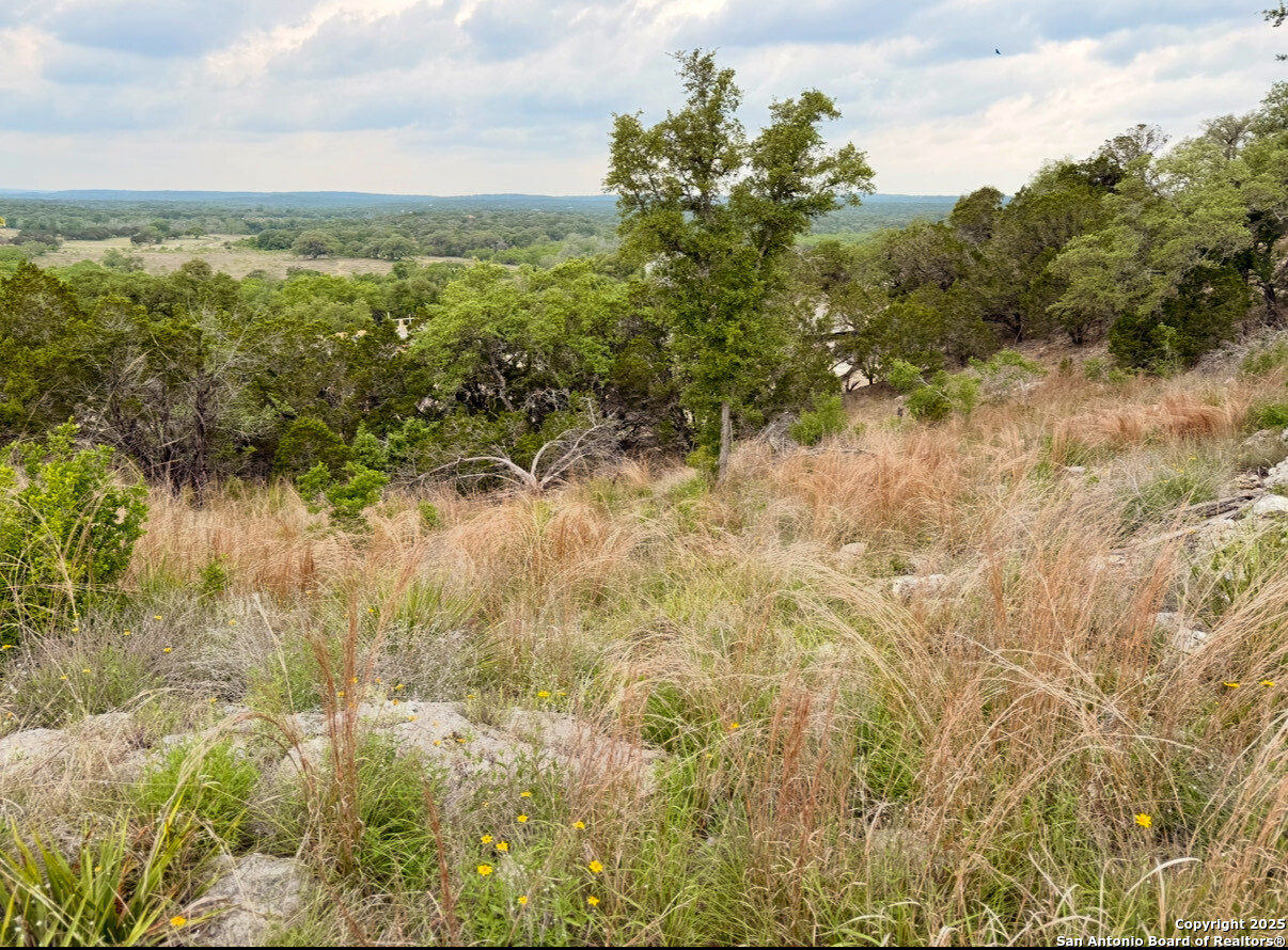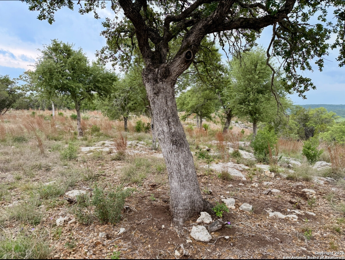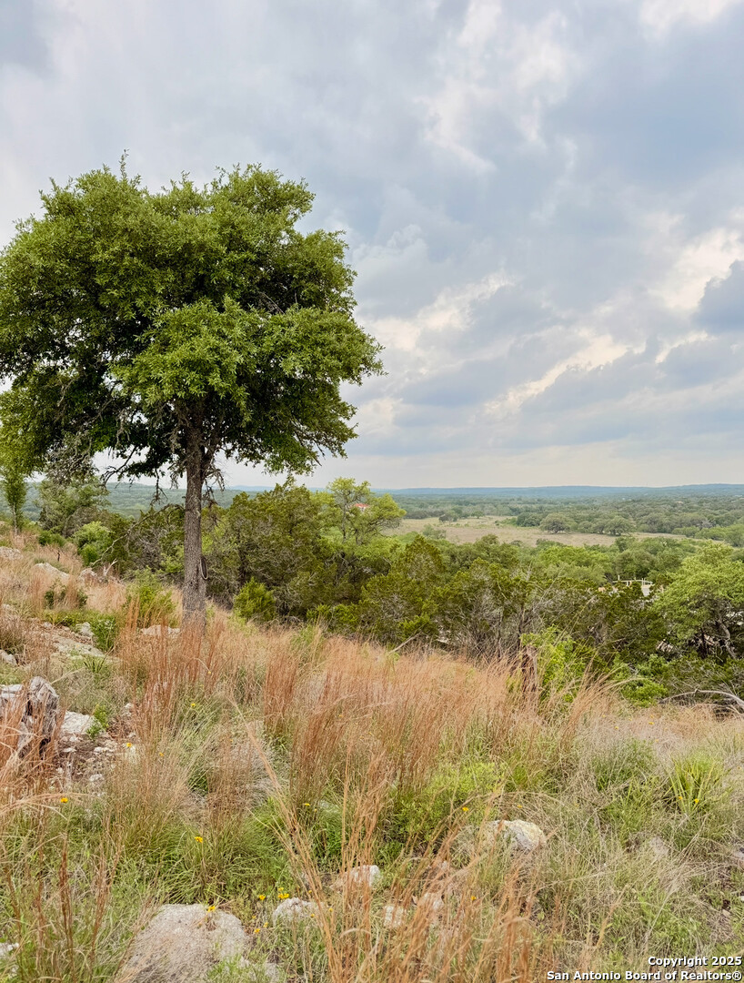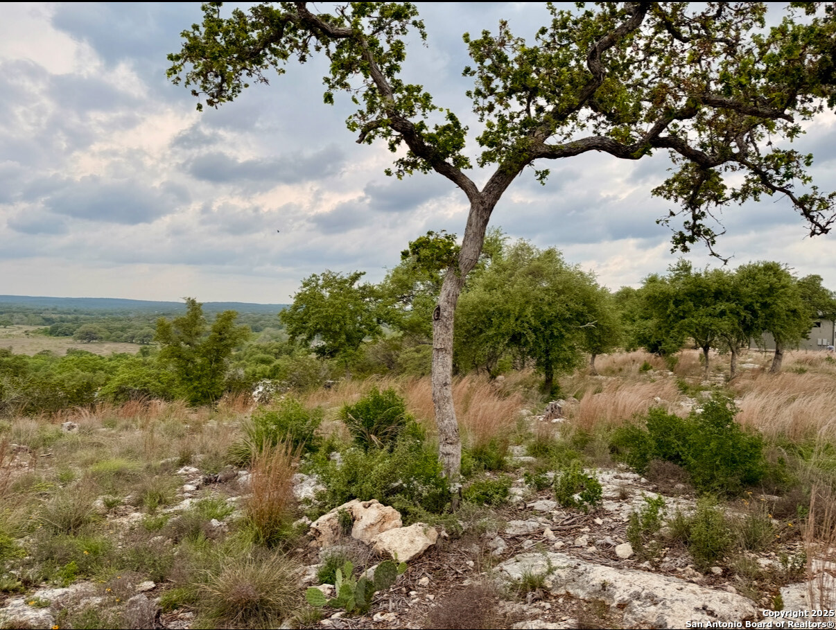 Paradise on the Guadalupe (private gated community) 1.18 acre lot. Beautiful hill country vistas with views for miles. It is elevated with a drop off at the back of the lot, which gives you the amazing view. It's a perfect building site, extremely WIDE, and the majority is flat and buildable. Many of the other similar size lots are narrow, less buildable, or don't quite have the view (which can never be obstructed). Beautiful oaks permeate this wide beauty with plenty of room for a detached garage or a casita. Highly coveted Paradise Unit 2 - the neighborhood has 2 private parks and nearly 100 acres for your buggy along with trails in a wildlife preserve. Low taxes. Smithson Valley schools. Underground utilities in place. Build your custom home in the beautiful hill country at Paradise on the Guadalupe!