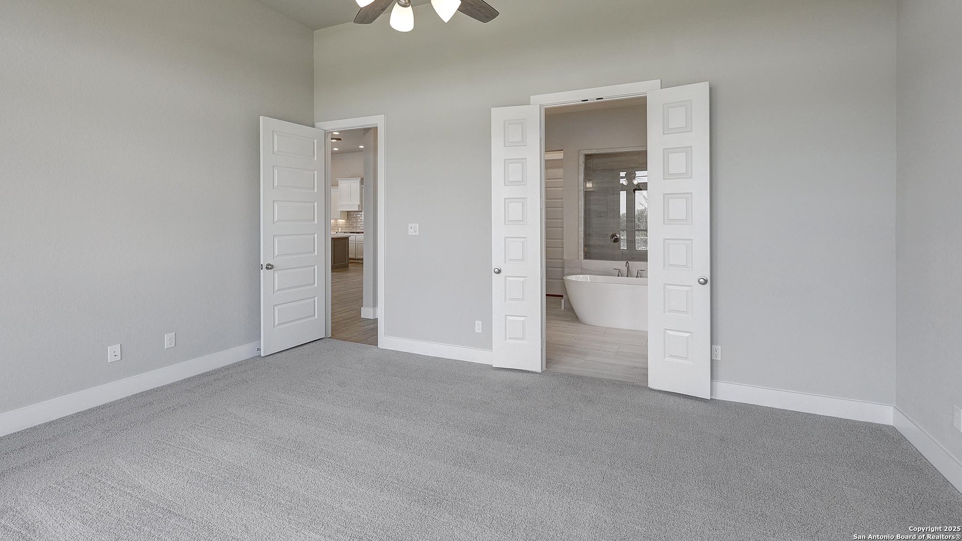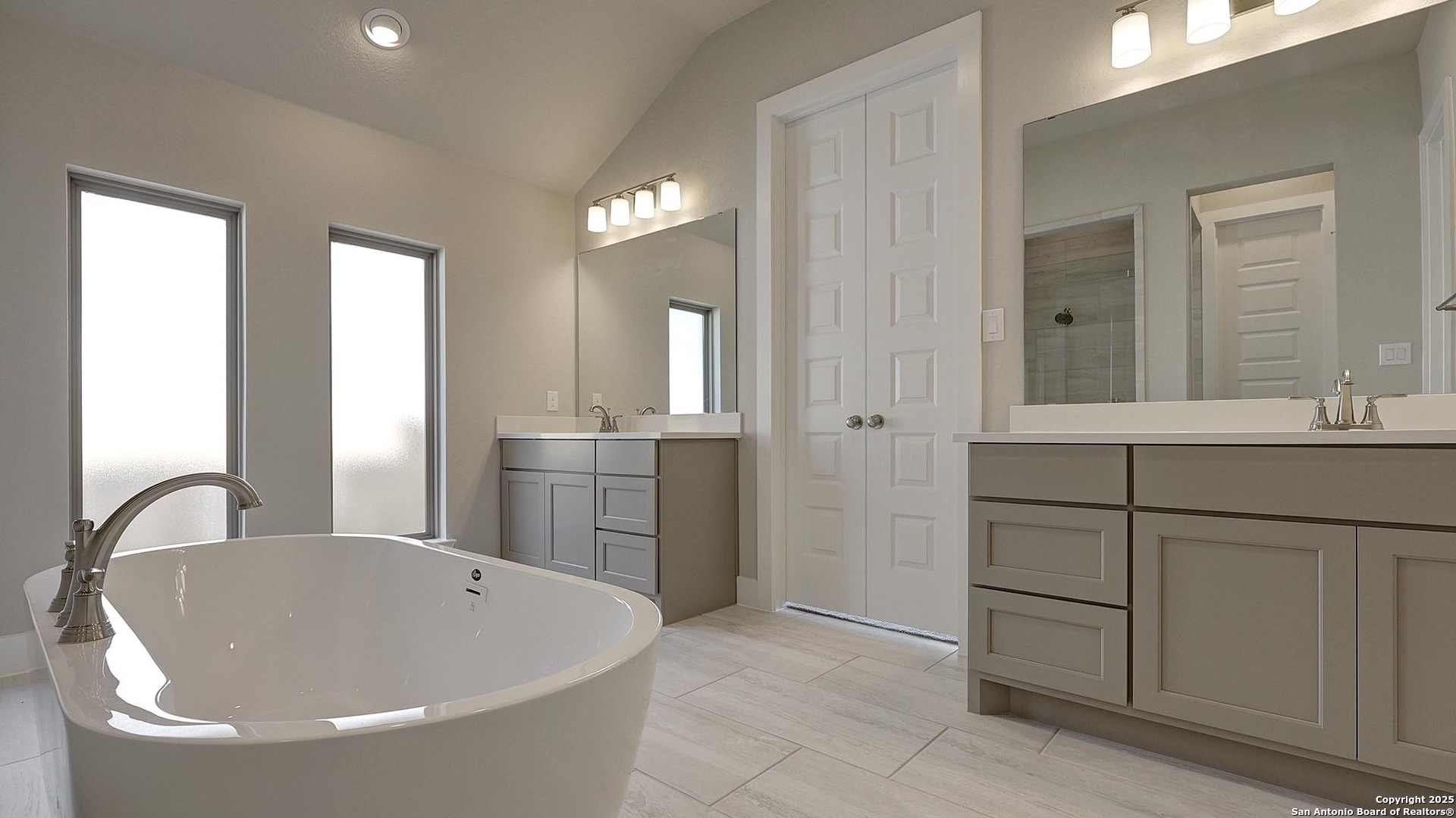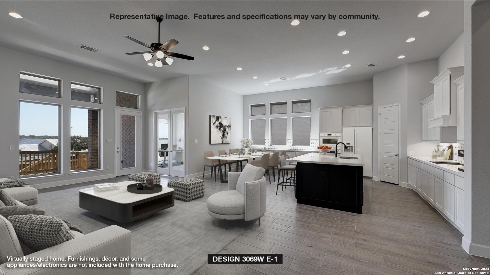 Home office with French doors frame entry. Open family room with a wood mantel fireplace and wall of windows extends to kitchen and dining area. Island kitchen with built-in seating space, 5-burner gas cooktop and a walk-in pantry. Game room with French doors just off the family room. Private primary suite with wall of windows. Primary bathroom features a French door entry, dual vanities, freestanding tub, separate glass enclosed shower and two walk-in closets. Guest suite with full bathroom and walk-in closet. Additional bedrooms with walk-in closets a half bathroom and Hollywood bathroom completes this design. Extended covered backyard patio and 5-zone sprinkler system. Utility room and mud room off the three-car garage.