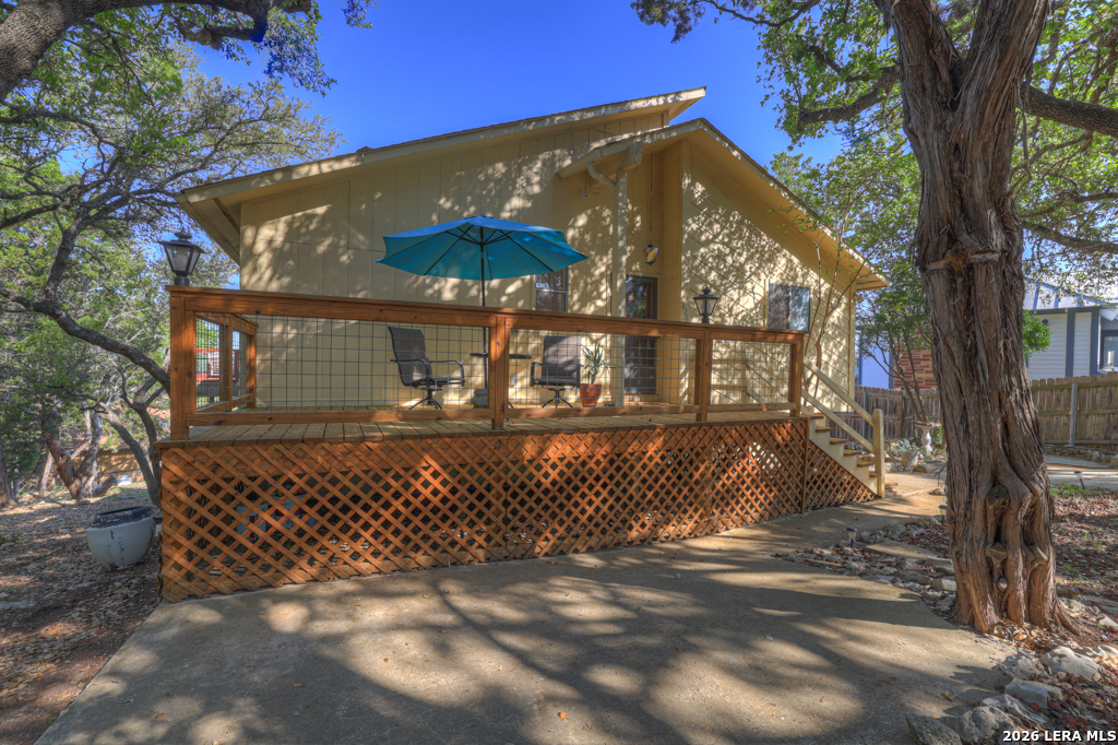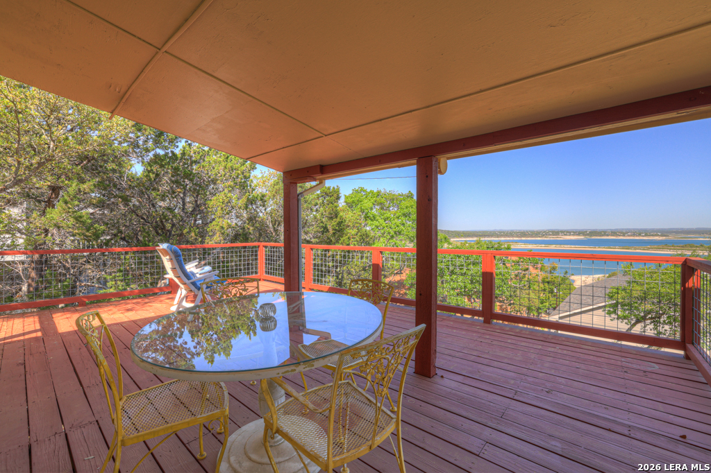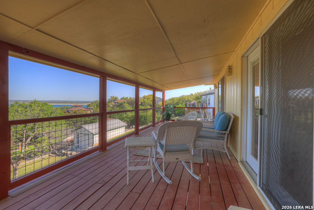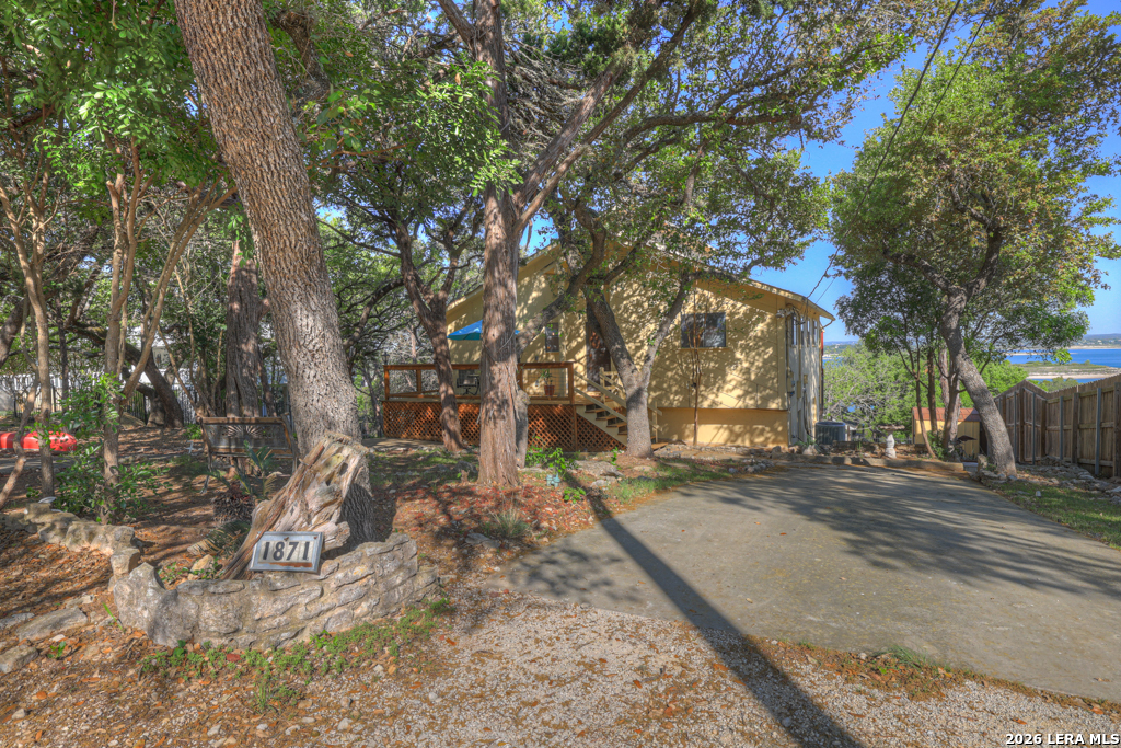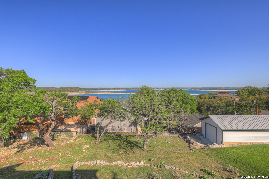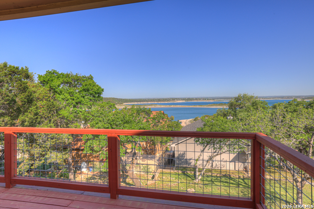 Welcome to your Canyon Lake retreat! Truly two homes in one with breathtaking lake views. Nestled on a .35-acre lot shaded by mature oak trees, this beautifully maintained property offers flexibility, privacy, and exceptional investment potential. The main level lives as the primary residence, featuring 2 bedrooms, 1.5 bathrooms, and an open-concept design that maximizes natural light and captures stunning lake views through soaring ceilings and expansive windows. Laminate flooring and a wood-burning fireplace with blower fan create warmth and charm, while double doors lead to a spacious patio deck, the perfect place to relax and soak in the views. A dedicated laundry room sits conveniently off the kitchen. Connected by an interior spiral staircase, yet also accessible through its own private exterior entrance, the lower level functions as a fully self-contained second home. Complete with 2 bedrooms, 1 full bath, a full kitchen, dining area, living room, and its own laundry room, this space is ideal for multi-generational living, hosting guests, or generating income as a short-term rental. Outside, enjoy two separate driveways, including boat-friendly parking, front and back porches to capture lake views throughout the day, a storage shed, and a grassy yard perfect for relaxing or entertaining. With HOA amenities including tennis courts and a clubhouse, minimal restrictions, and short-term rentals allowed, this property offers both lifestyle and income potential, just minutes from the boat ramp, shopping, and dining. A rare opportunity to own a versatile lake-view property in one of Canyon Lake's most desirable areas.