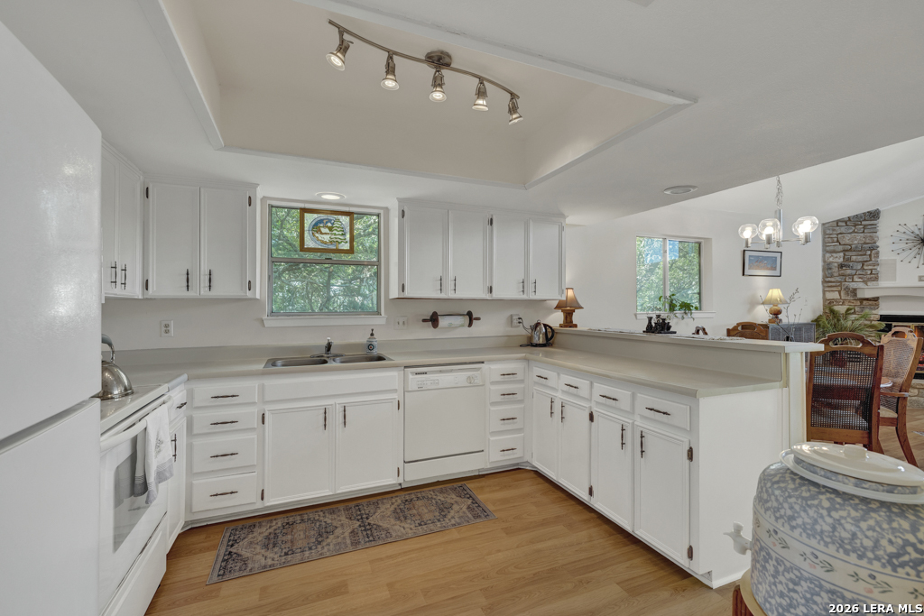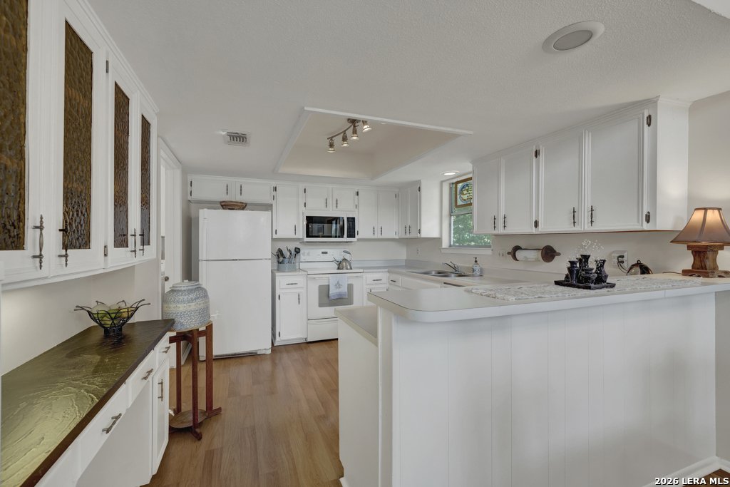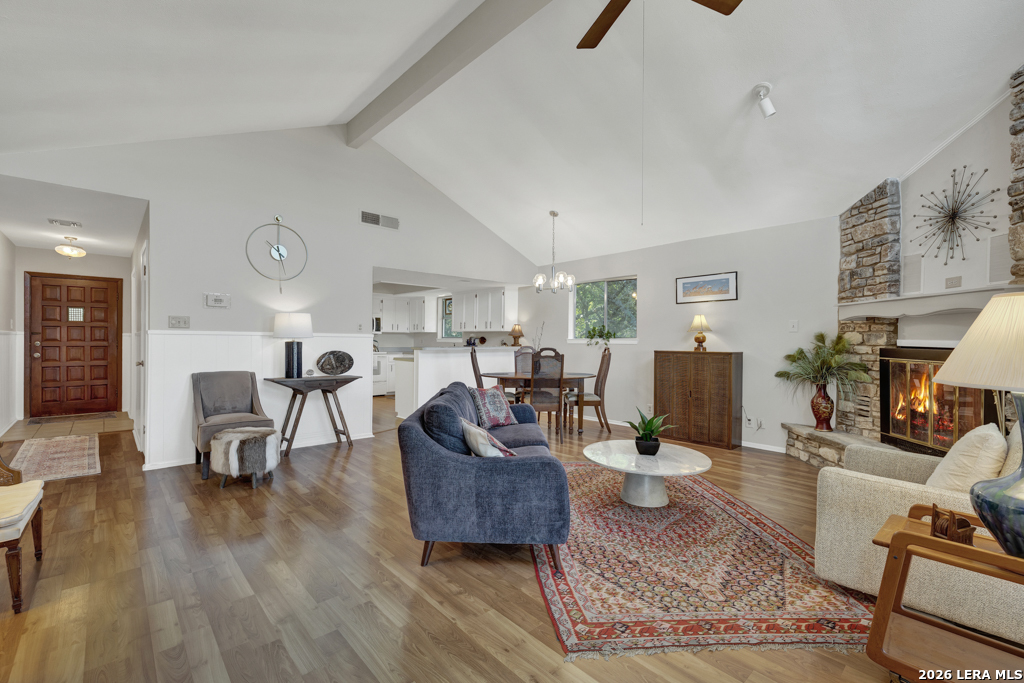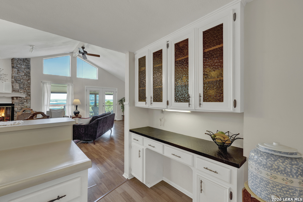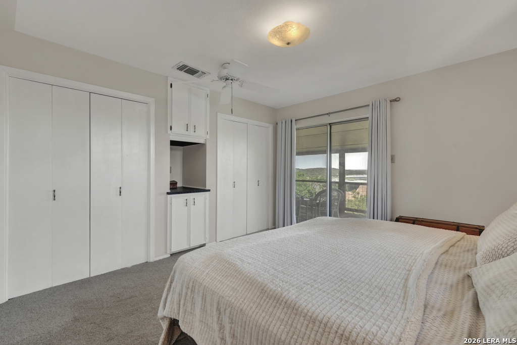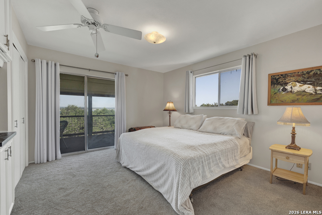 Welcome to your Canyon Lake retreat! Truly two homes in one with breathtaking lake views. Nestled on a .35-acre lot shaded by mature oak trees, this beautifully maintained property offers flexibility, privacy, and exceptional investment potential. The main level lives as the primary residence, featuring 2 bedrooms, 1.5 bathrooms, and an open-concept design that maximizes natural light and captures stunning lake views through soaring ceilings and expansive windows. Laminate flooring and a wood-burning fireplace with blower fan create warmth and charm, while double doors lead to a spacious patio deck, the perfect place to relax and soak in the views. A dedicated laundry room sits conveniently off the kitchen. Connected by an interior spiral staircase, yet also accessible through its own private exterior entrance, the lower level functions as a fully self-contained second home. Complete with 2 bedrooms, 1 full bath, a full kitchen, dining area, living room, and its own laundry room, this space is ideal for multi-generational living, hosting guests, or generating income as a short-term rental. Outside, enjoy two separate driveways, including boat-friendly parking, front and back porches to capture lake views throughout the day, a storage shed, and a grassy yard perfect for relaxing or entertaining. With HOA amenities including tennis courts and a clubhouse, minimal restrictions, and short-term rentals allowed, this property offers both lifestyle and income potential, just minutes from the boat ramp, shopping, and dining. A rare opportunity to own a versatile lake-view property in one of Canyon Lake's most desirable areas.