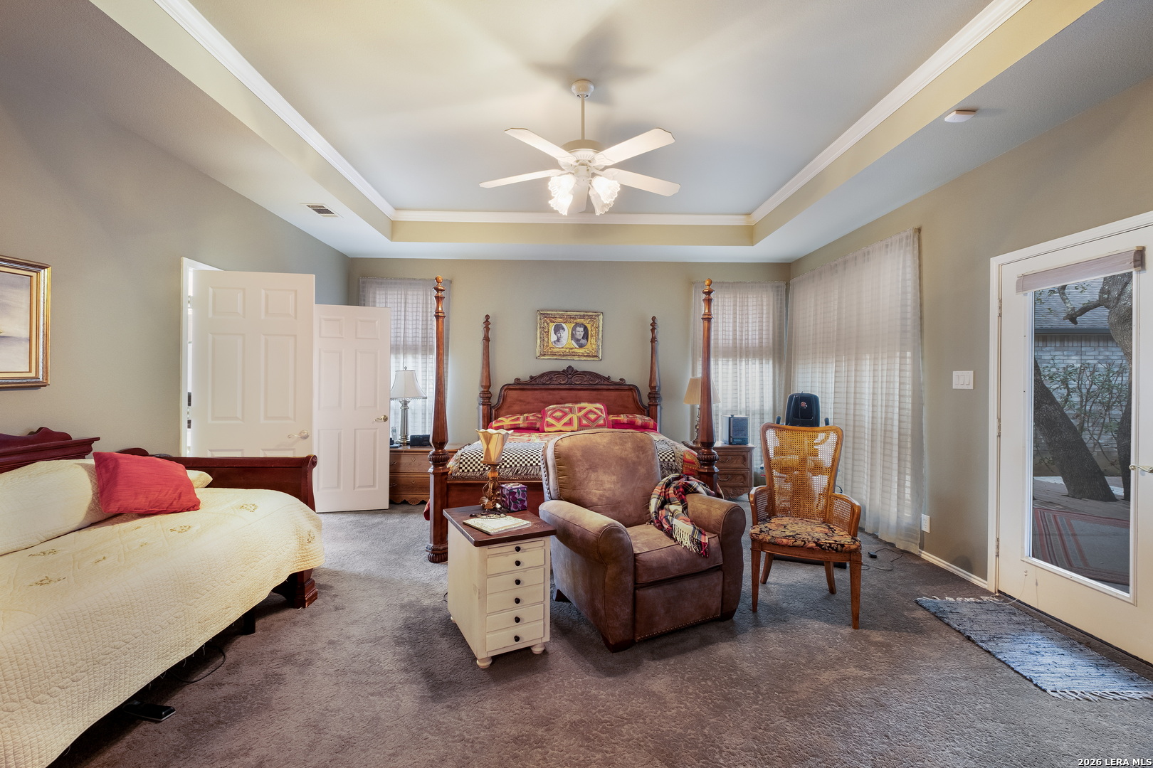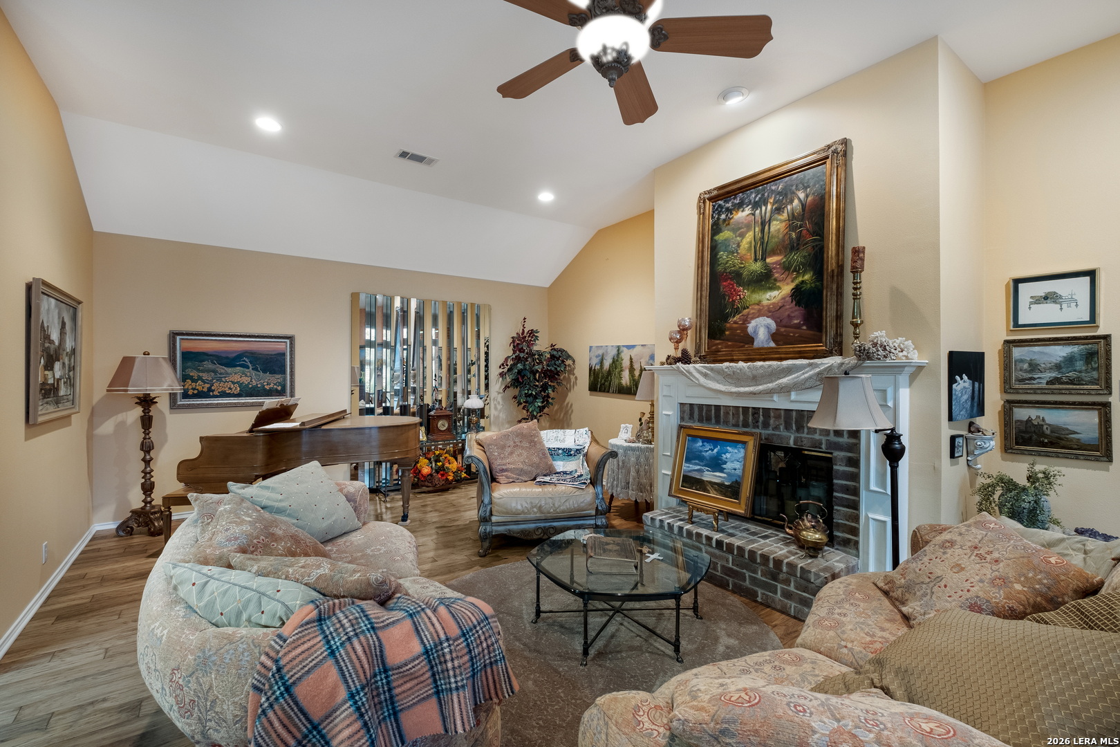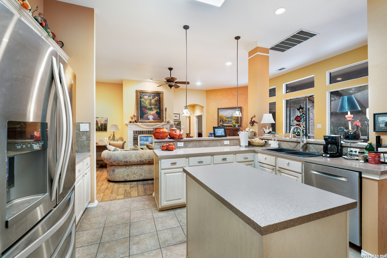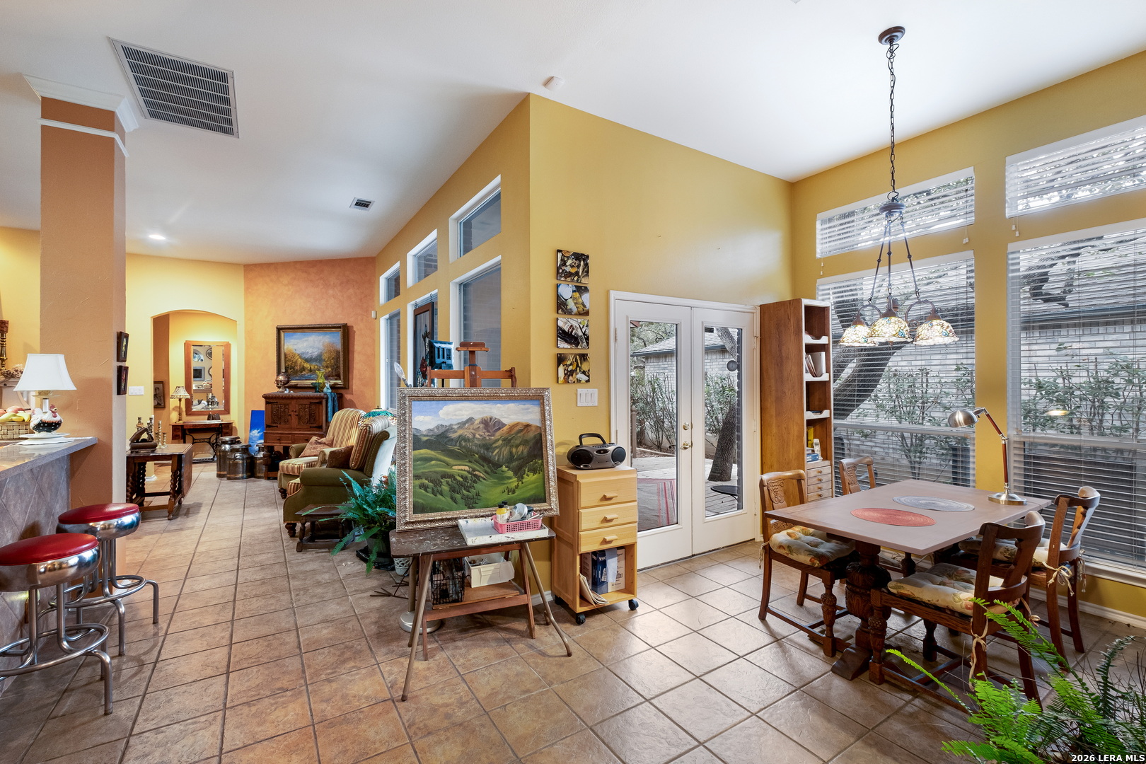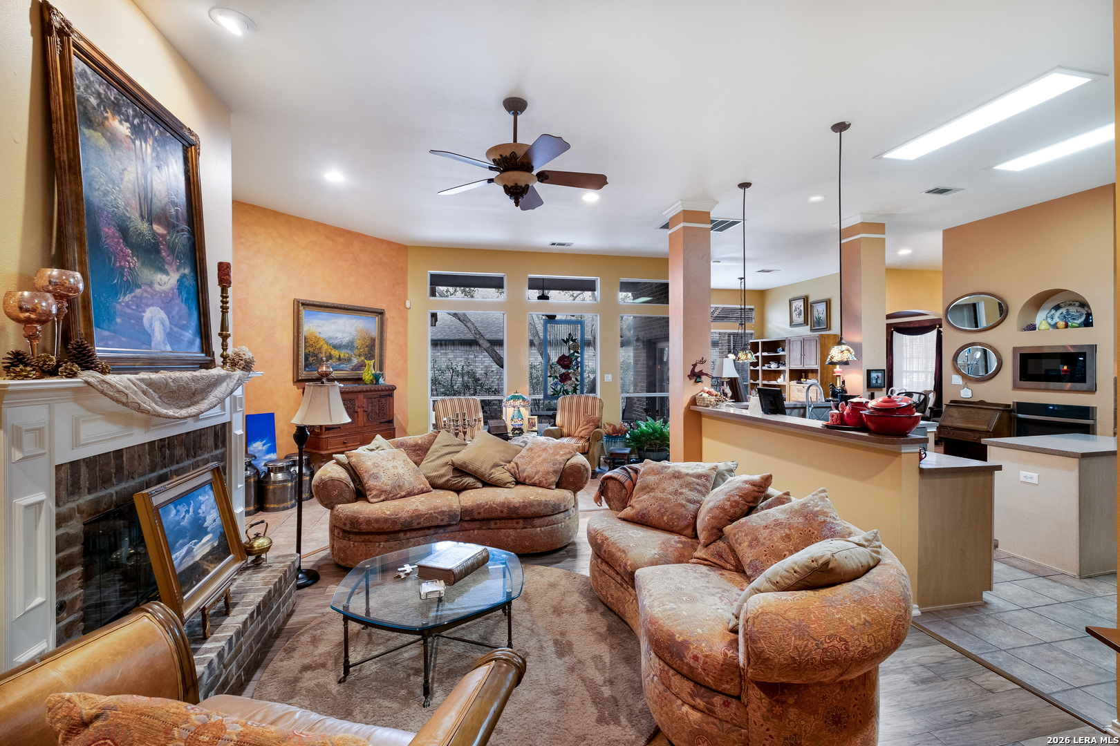 This stunning, spacious residence offers a rare and highly desirable dual primary suite layout with 2 primary bedrooms and 2.5 baths, thoughtfully designed for privacy, flexibility, and upscale living. From the moment you enter, you're welcomed by an elegant foyer showcasing a custom hand-painted art feature wall, creating a striking first impression that sets the tone for the entire home. The open-concept floor plan is ideal for both entertaining and everyday living, with expansive living areas, high ceilings, and seamless flow between spaces. The gourmet kitchen offers generous cabinet and counter space, quality finishes, and functionality perfect for hosting or daily use. Both primary suites are spacious and private, each with its own luxurious en-suite bath, offering a rare multi-generational or guest-suite opportunity. The home is immaculate, meticulously maintained, and move-in ready. Enjoy peaceful outdoor living and the comfort of a well-appointed interior in a home that blends elegance, functionality, and uniqueness. This exceptional property is truly one-of-a-kind and must be seen in person to fully appreciate its craftsmanship, design, and atmosphere.